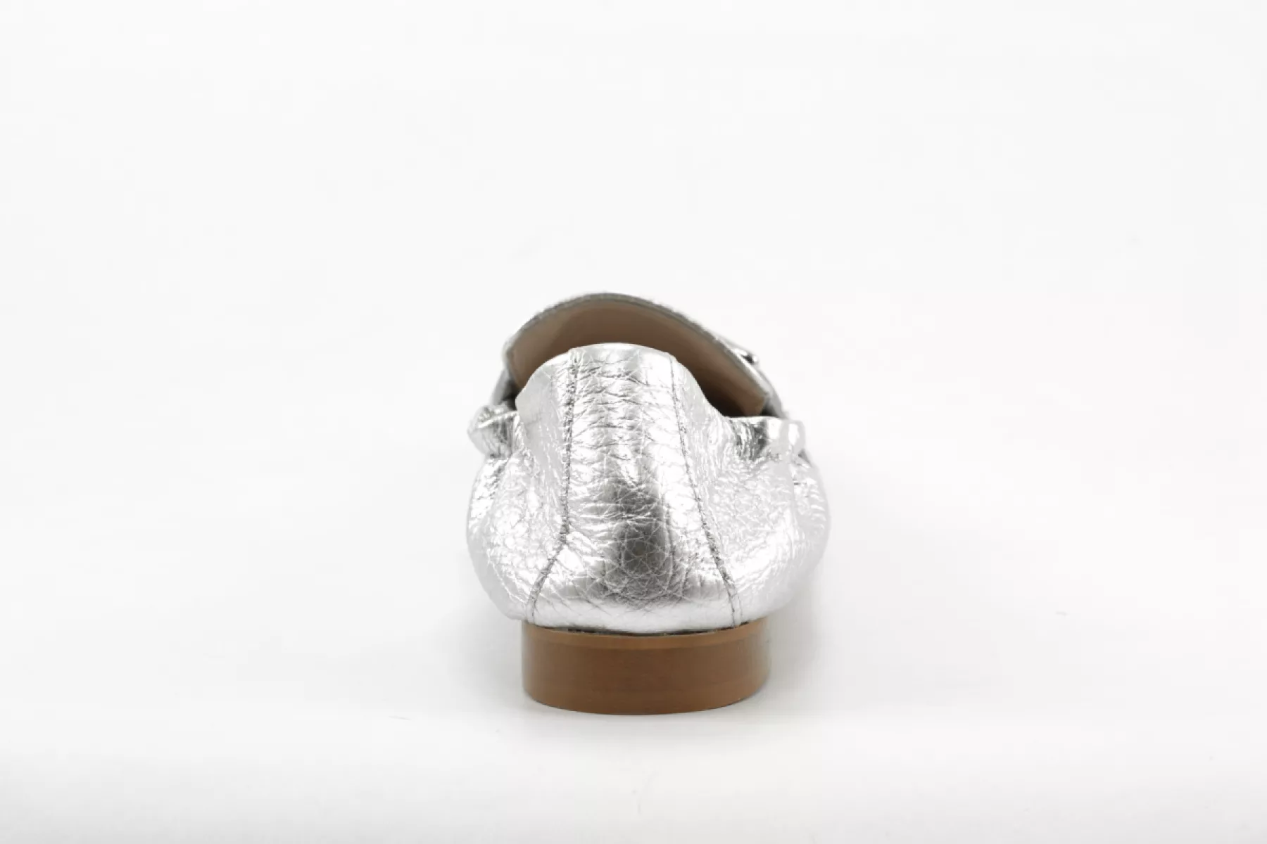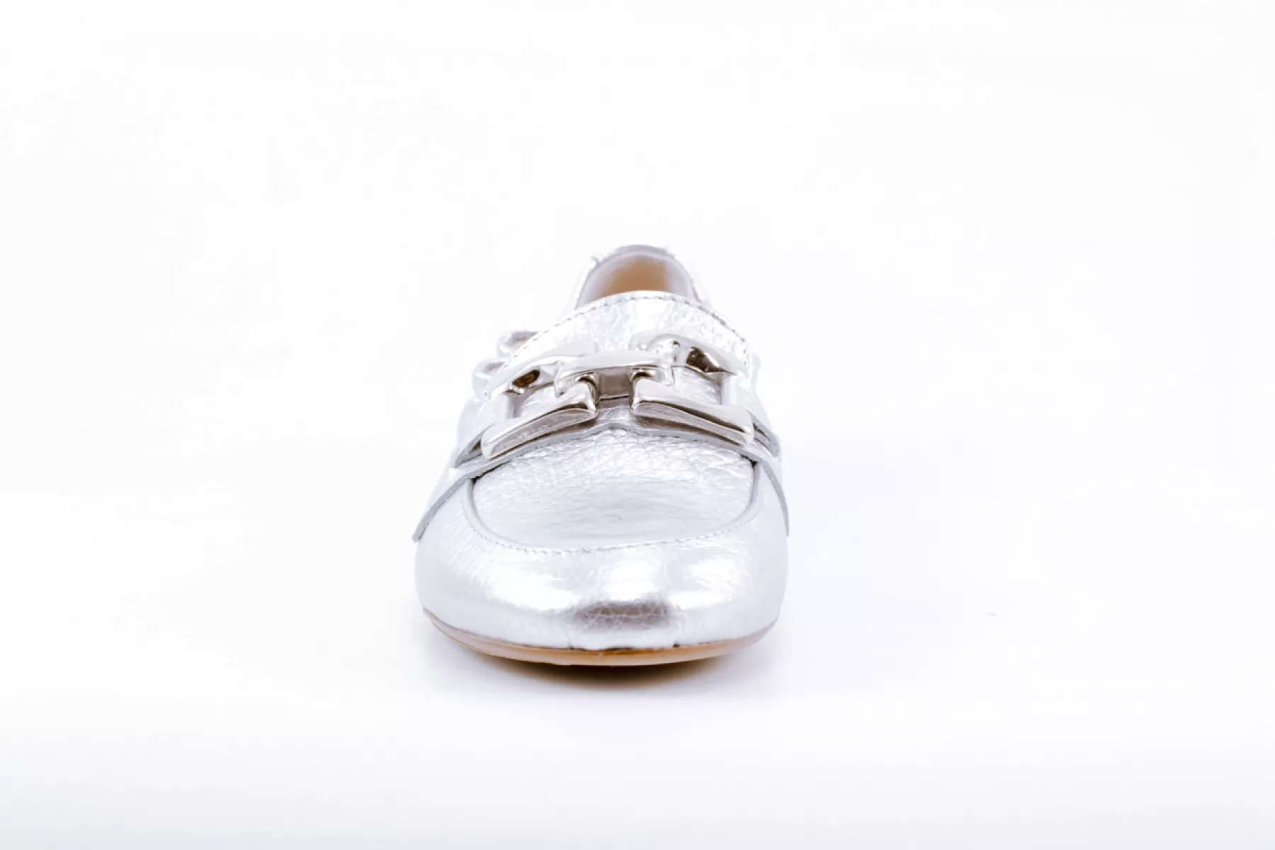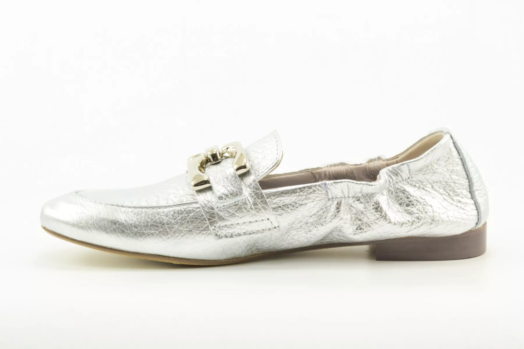 details: dat de mode weer vrouwelijker wordt bewijzen deze mooie instappers van het Italiaanse merk Gianluca Pisati. Deze mooie loafers hebben een zilverkleurig detail op de wreef en een ronde leest.