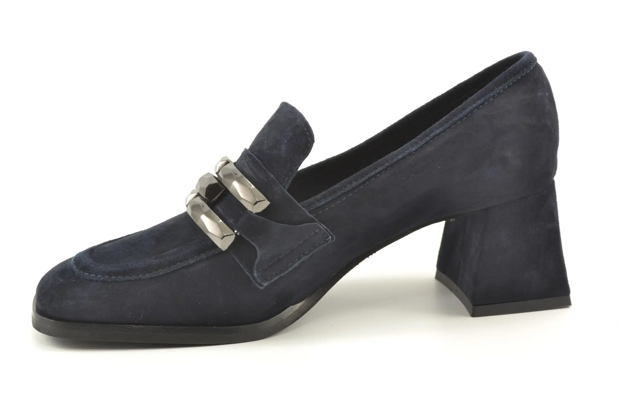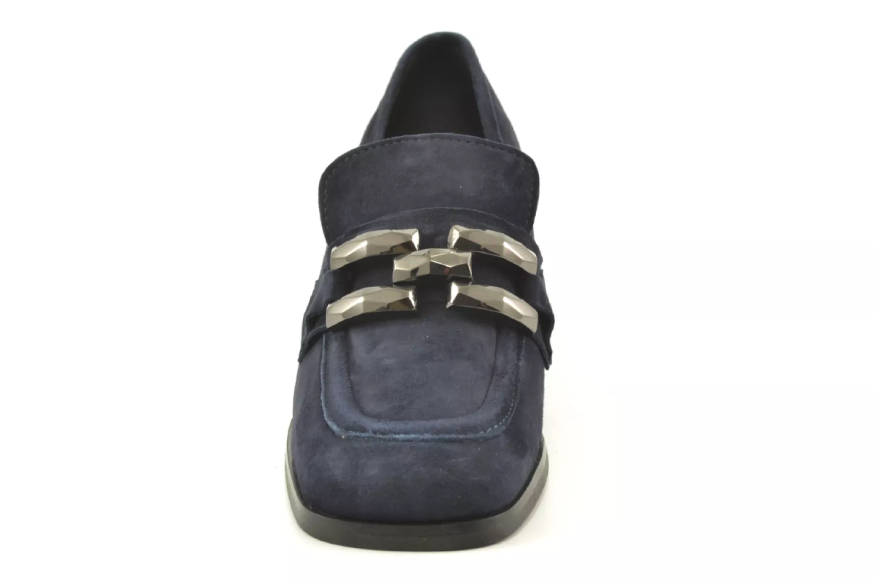 made in Italy since 1987. Bij Gianluca Pisati vindt je een heel mooi evenwicht tussen kwaliteit en prijs. Deze mooie blauw suede pump heeft een stevige blokhak, carré neus en een leuk detail op de voorvoet.