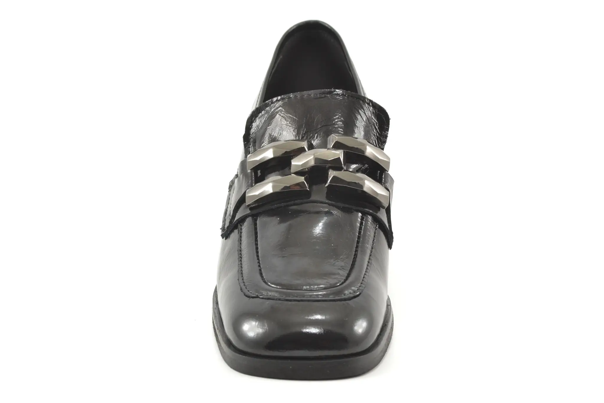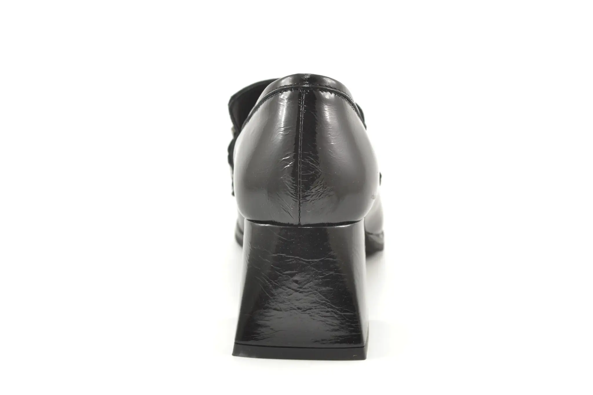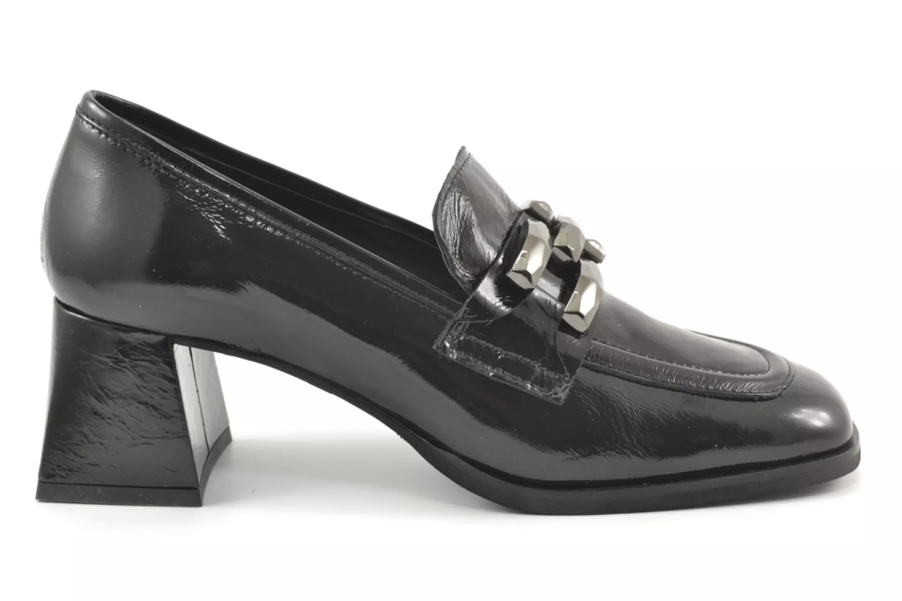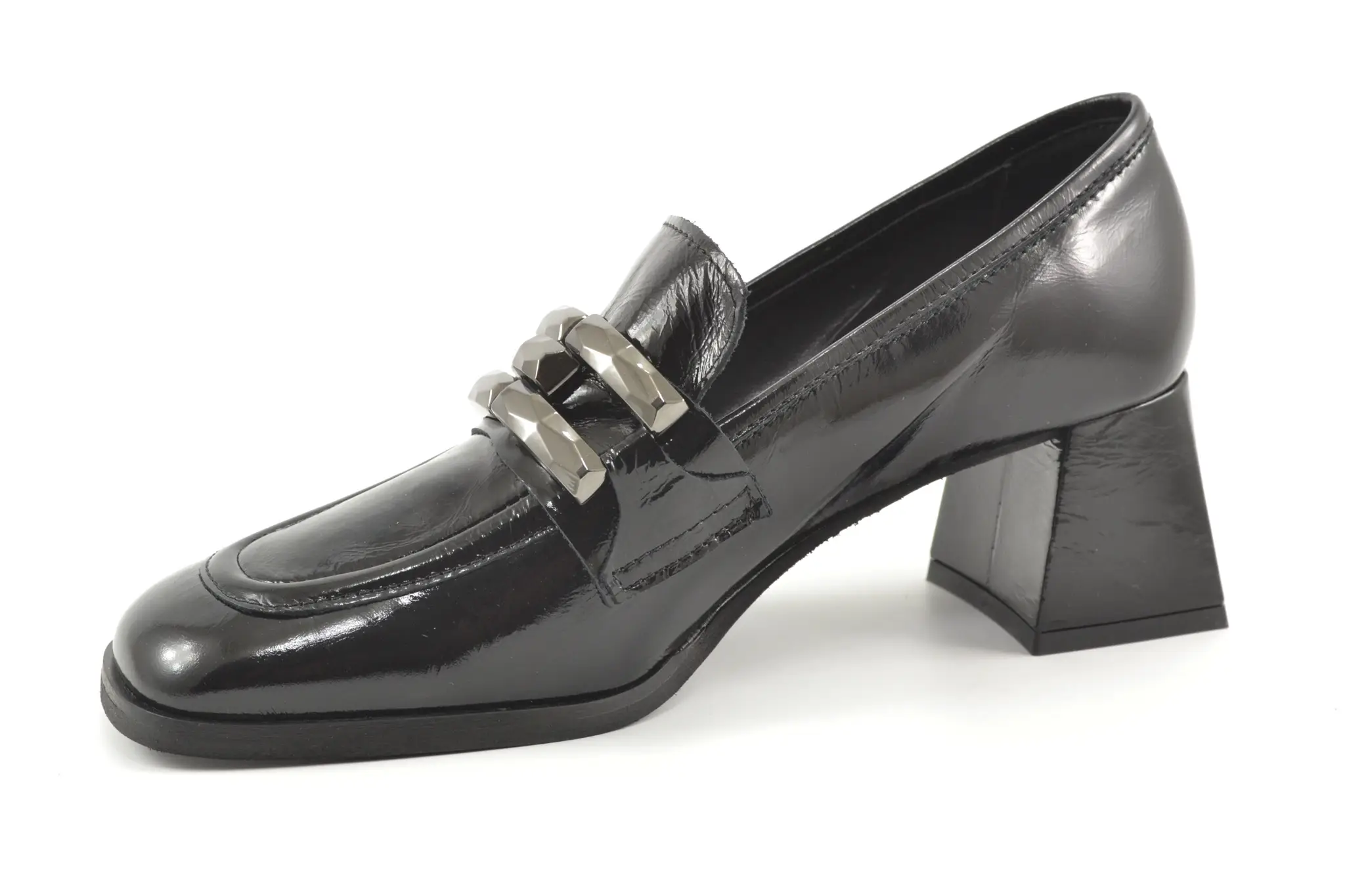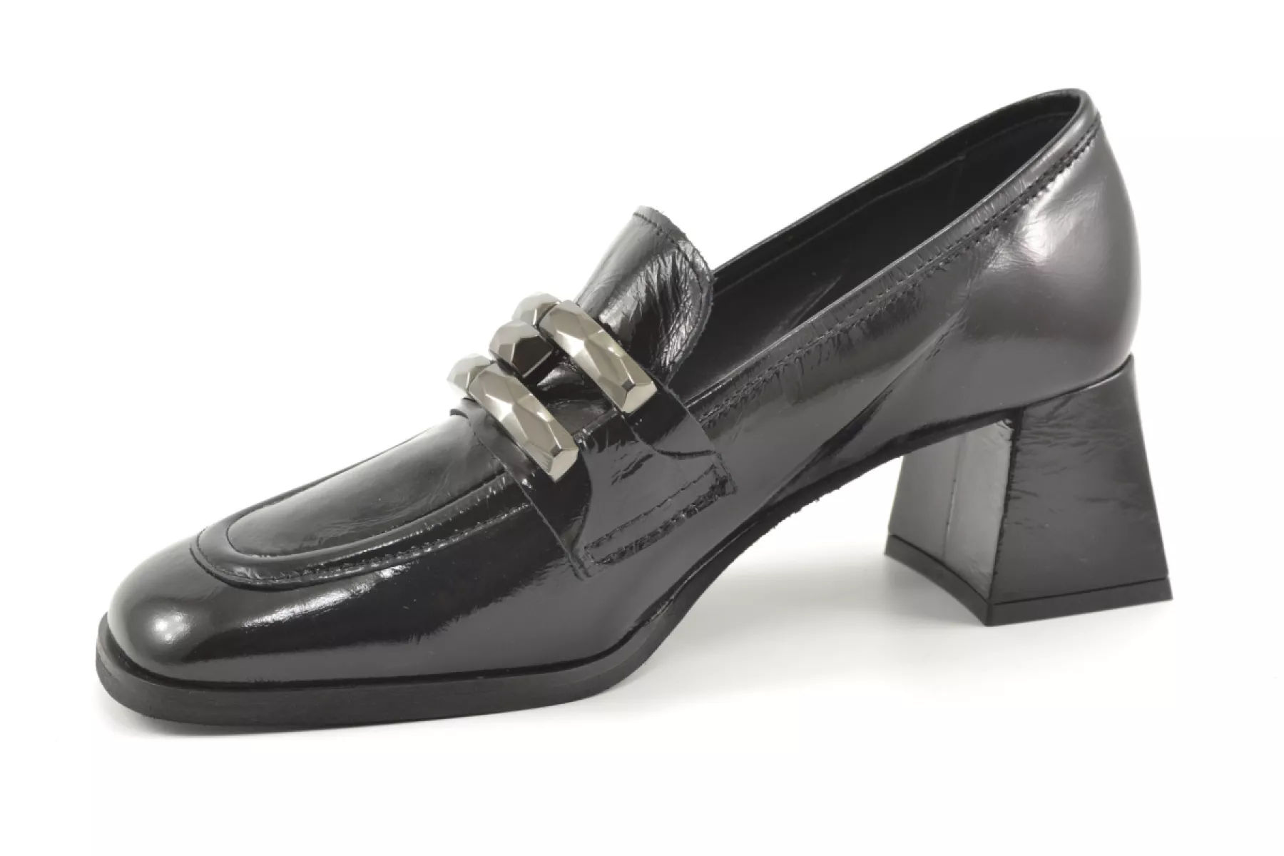 made in Italy since 1987. Bij Gianluca Pisati vindt je een heel mooi evenwicht tussen kwaliteit en prijs. Deze mooie zwarte lak pump heeft een stevige blokhak, carré neus en een detail op de voorvoet.