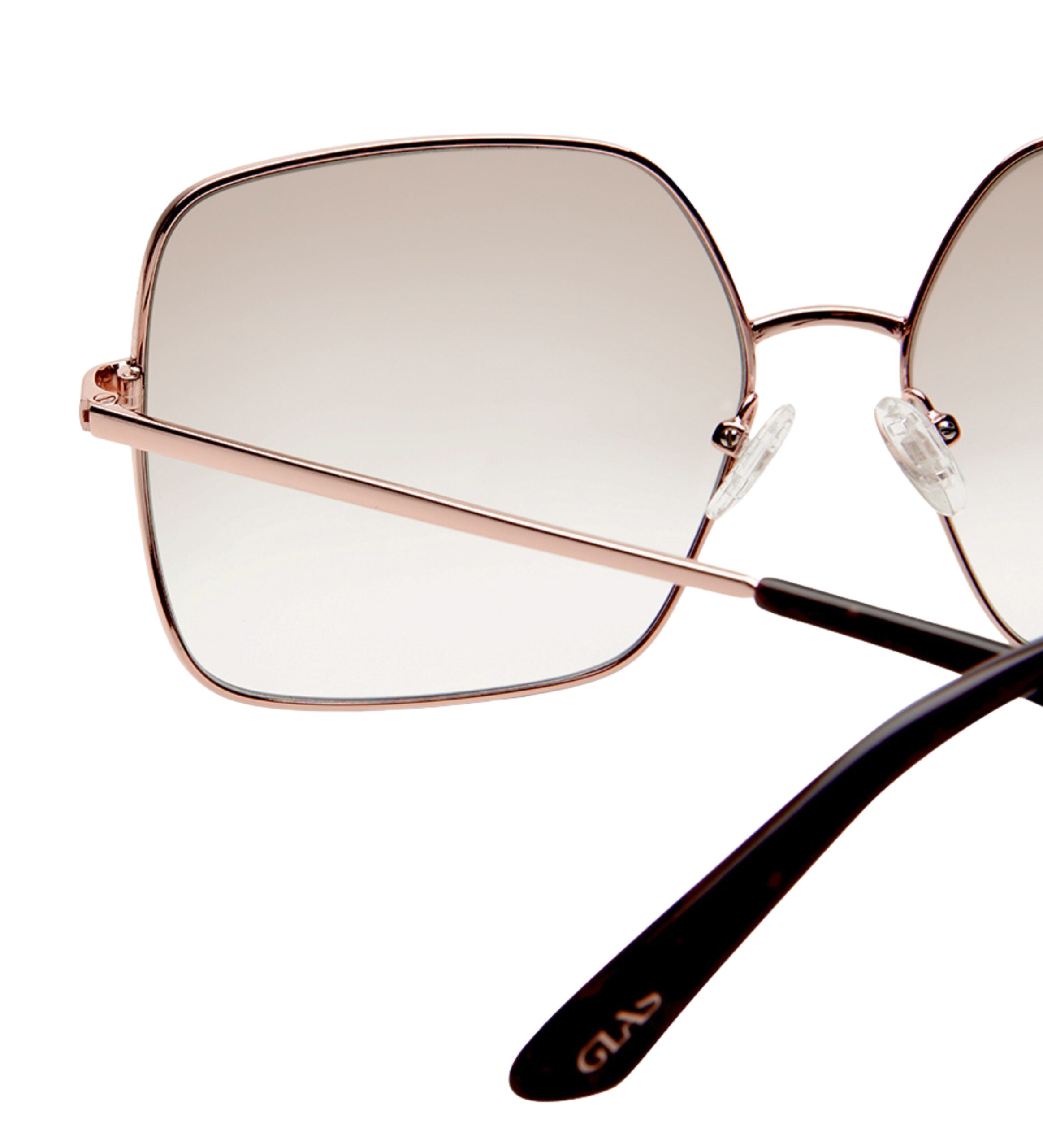 Deze elegante pilotenbril met vierkante glazen combineert een stijlvolle rosegouden kleur met warme gradiëntglazen. Het slanke metalen montuur is licht en comfortabel, perfect voor vrouwen die houden van een moderne en verfijnde uitstraling.