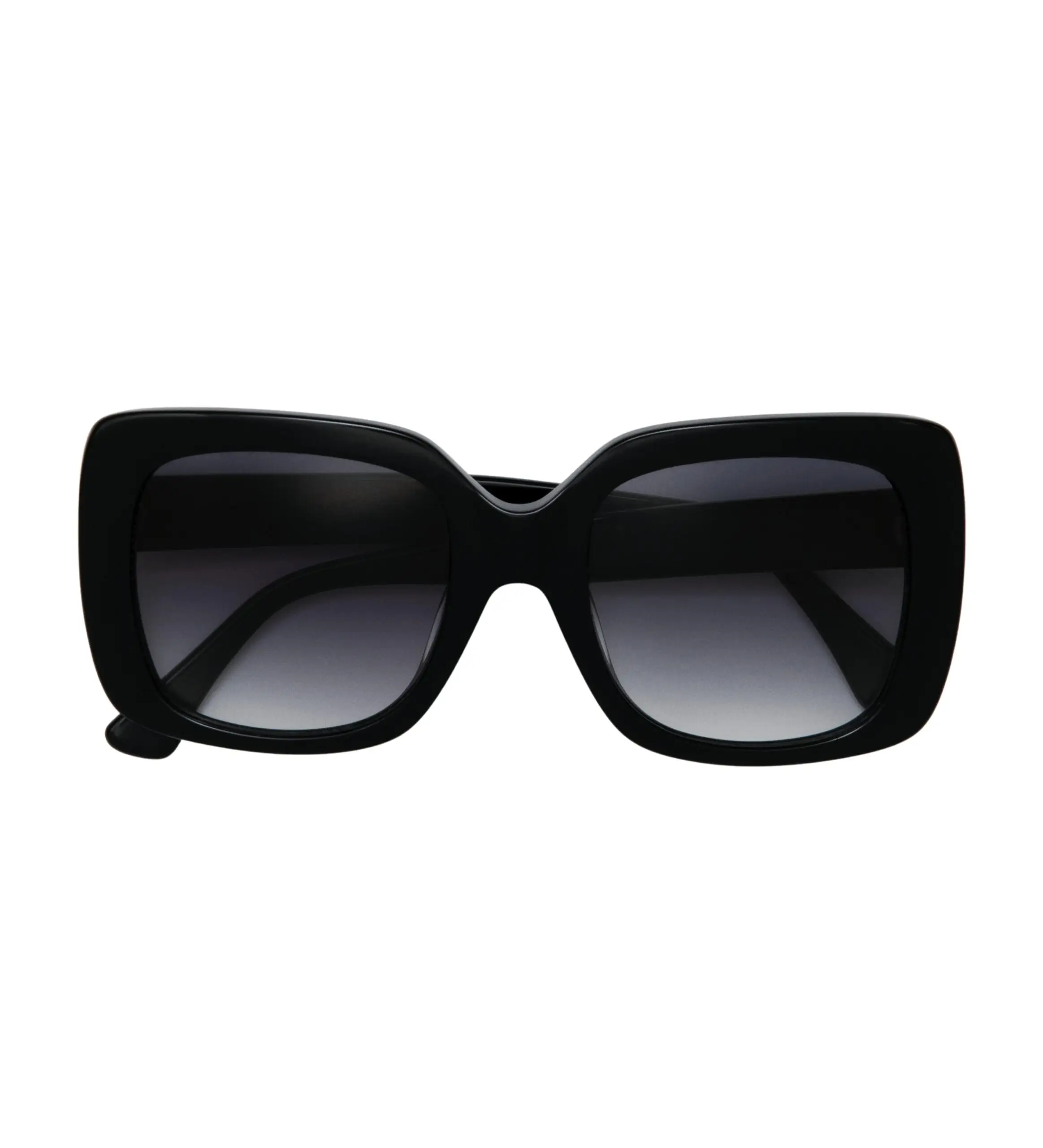 Een stijlvolle, oversized zonnebril met een elegant vierkant montuur in glanzend zwart. Dit statement model is geïnspireerd op ons populaire Mio montuur en past perfect bij vrouwen die houden van een zelfverzekerde uitstraling.