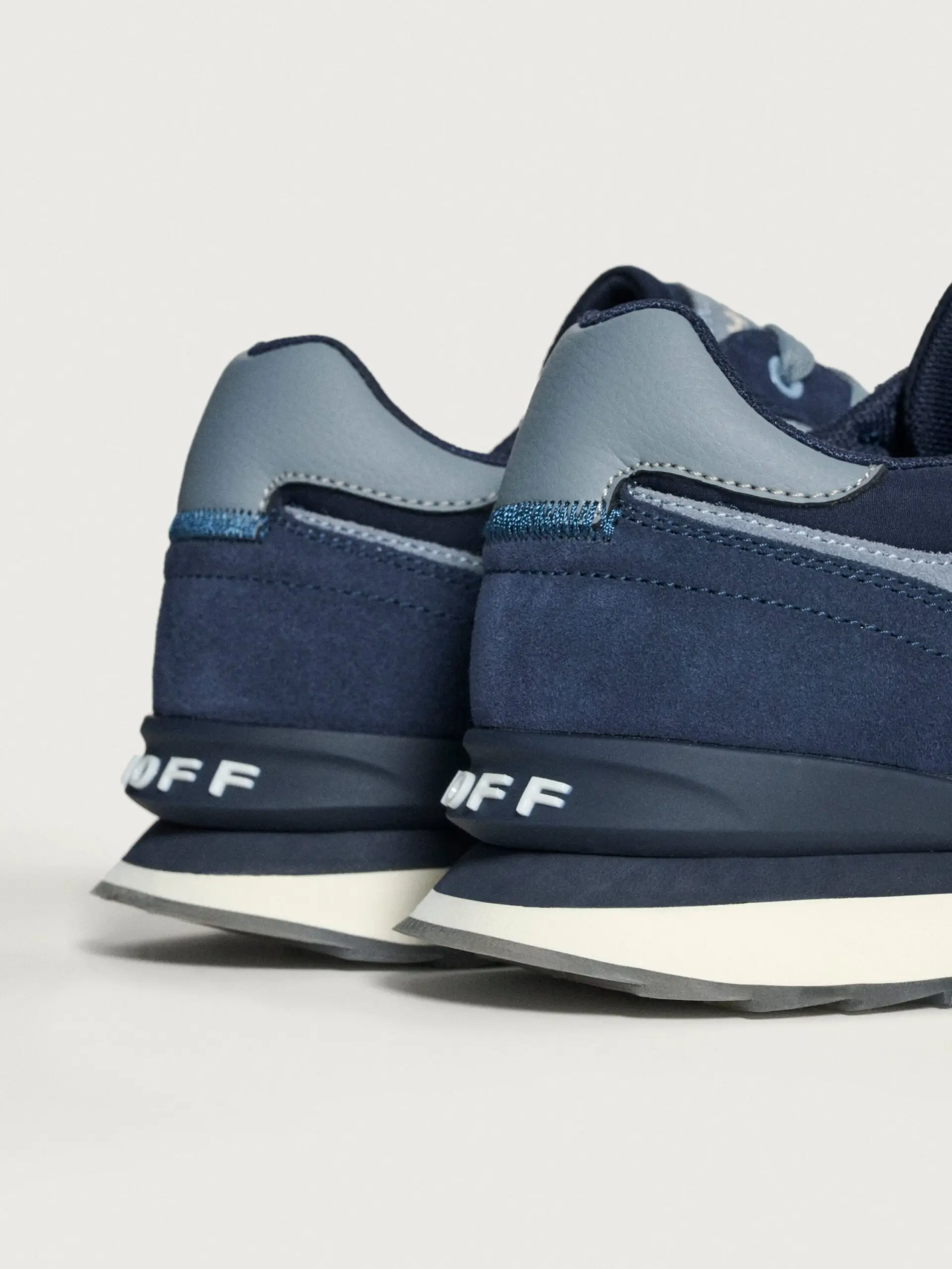 Retro sneaker in een combinatie van kleuren en materialen. Logodetail op de achterkant. Bedrukte zool. Vetersluiting.