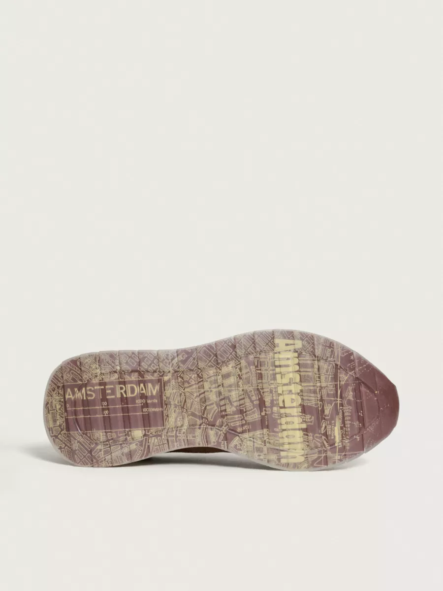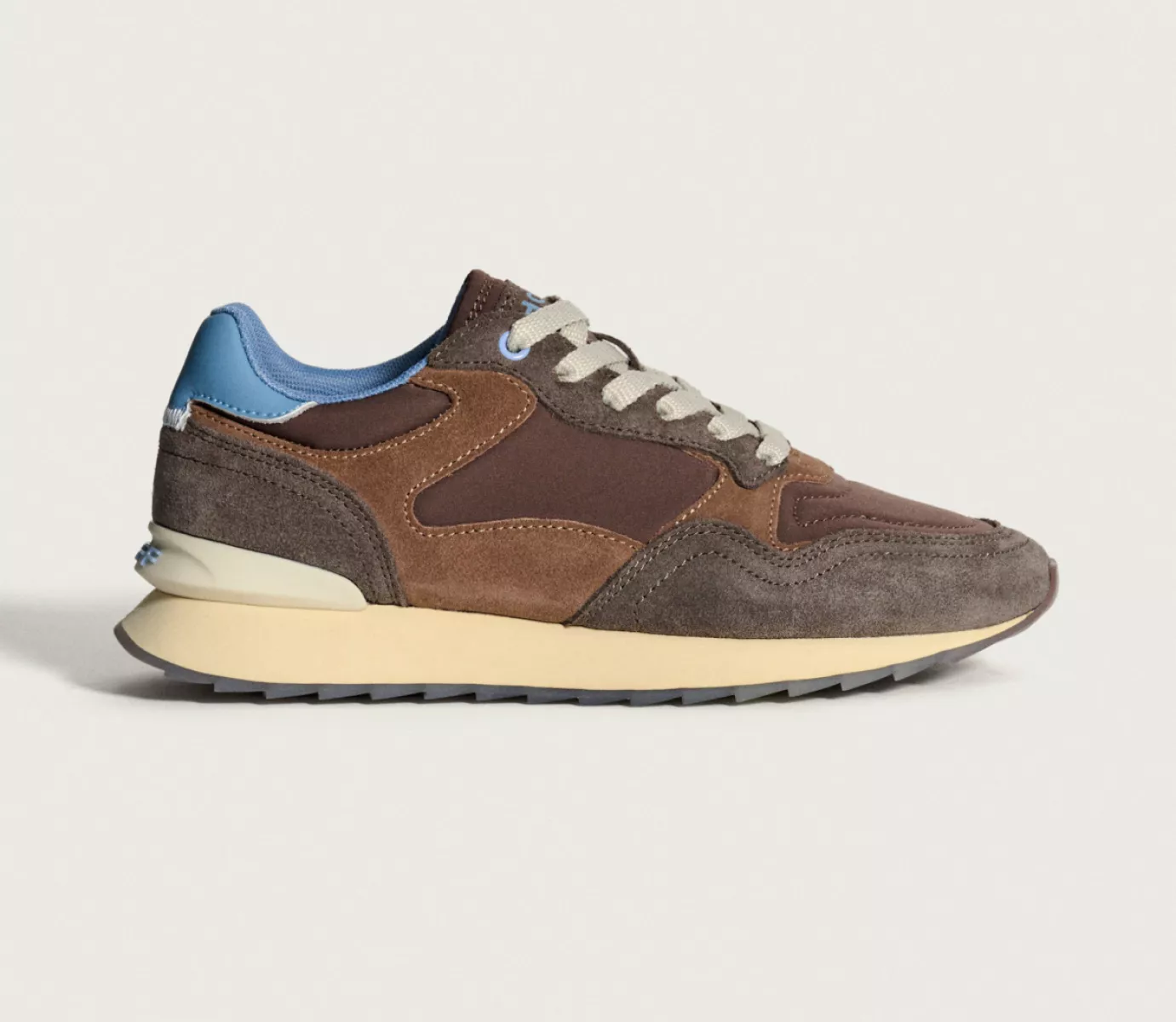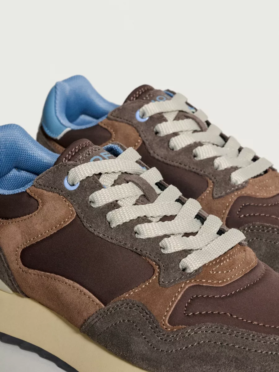 Retro sneaker in een combinatie van kleuren en materialen. Logodetail op de achterkant. Bedrukte zool. Vetersluiting.