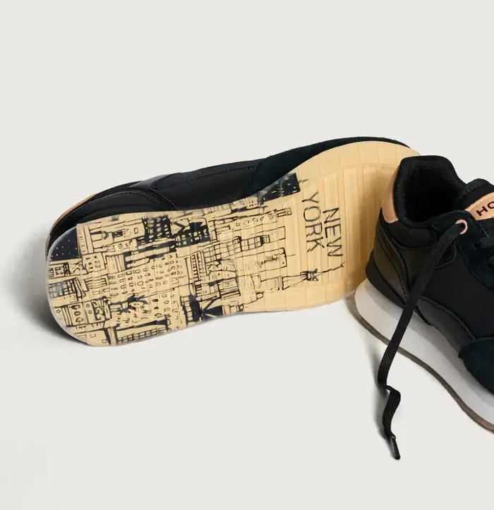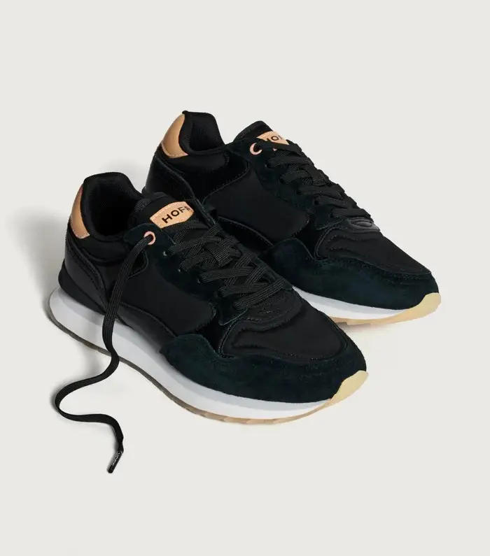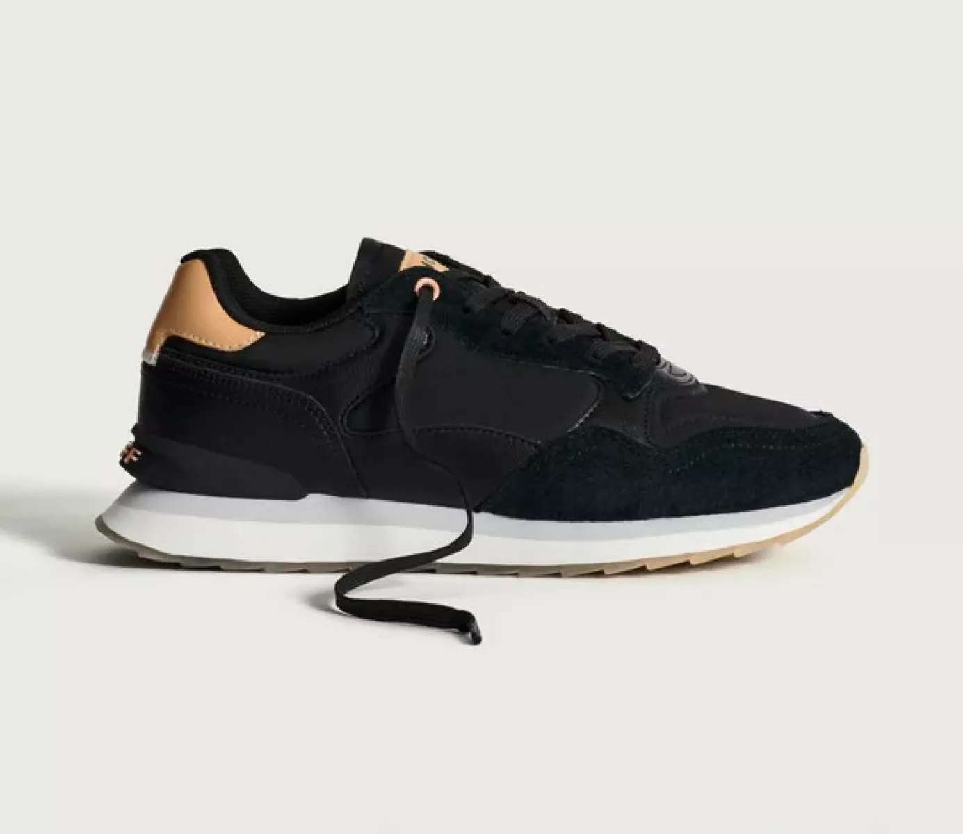 Retro sneaker in een combinatie van kleuren en materialen. Logodetail op de achterkant. Bedrukte zool. Vetersluiting.