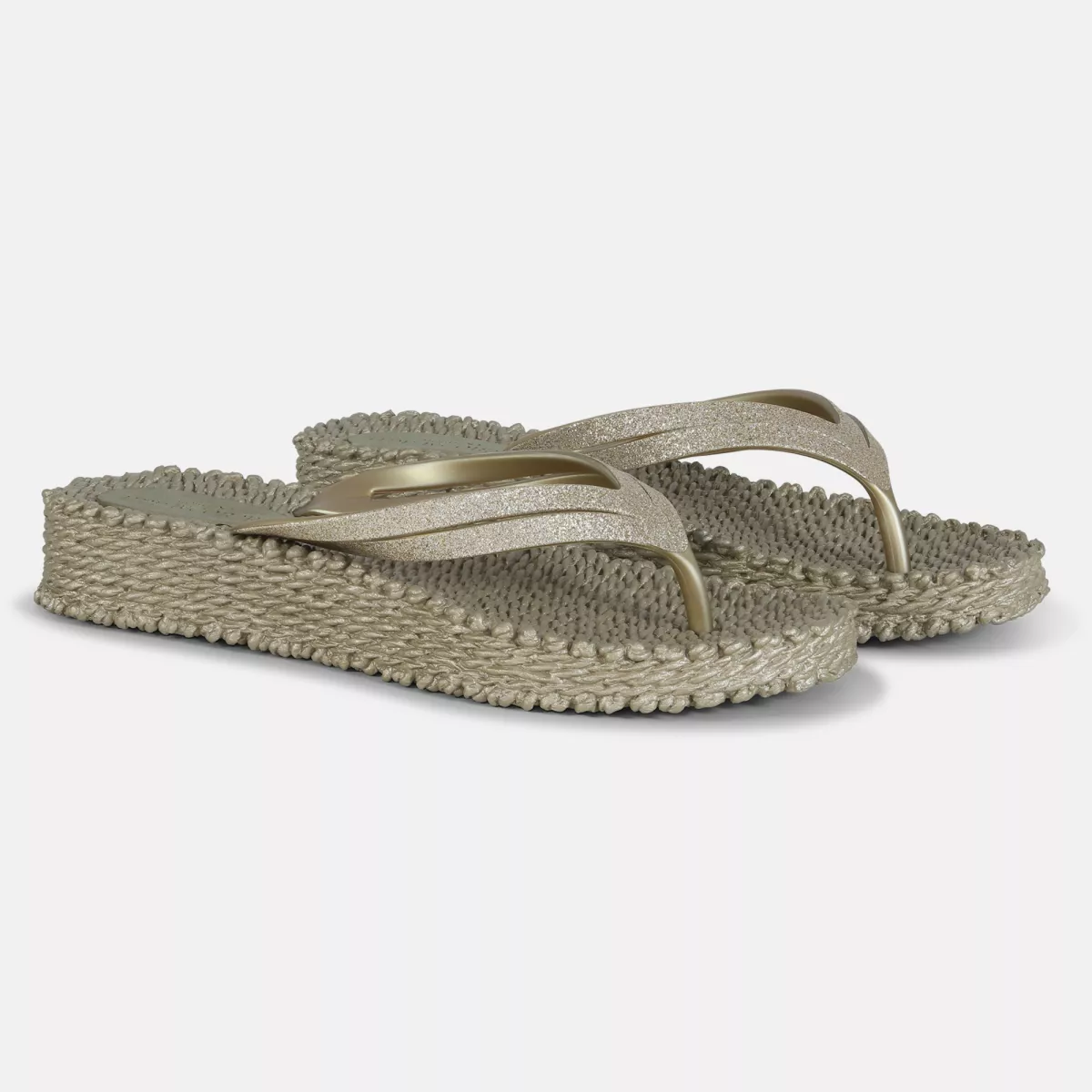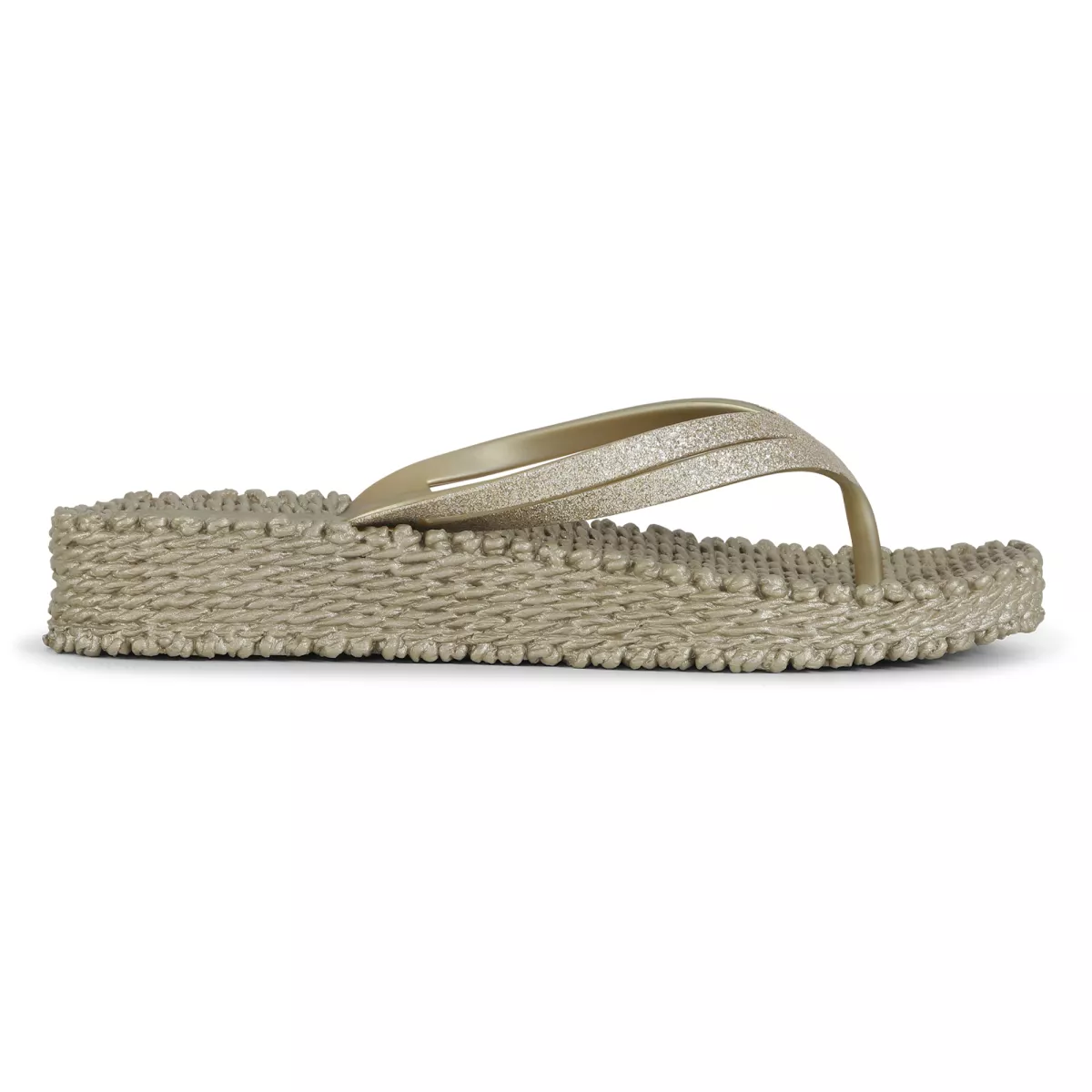 De slippers CHEERFUL13 van Ilse Jacobsen met lichte plateauzool maken je look compleet zonder concessies te doen aan comfort. De slippers zijn gemaakt van luchtrubber, wat ervoor zorgt dat ze licht en flexibel zijn. Met de gedessineerde zool zijn ze heel comfortabel en creëren ze een zacht massage- effect. De bandjes zijn subtiel versierd met glitter. Met deze slippers voeg je een vleugje glamour toe aan je look en straal je de hele zomer door!