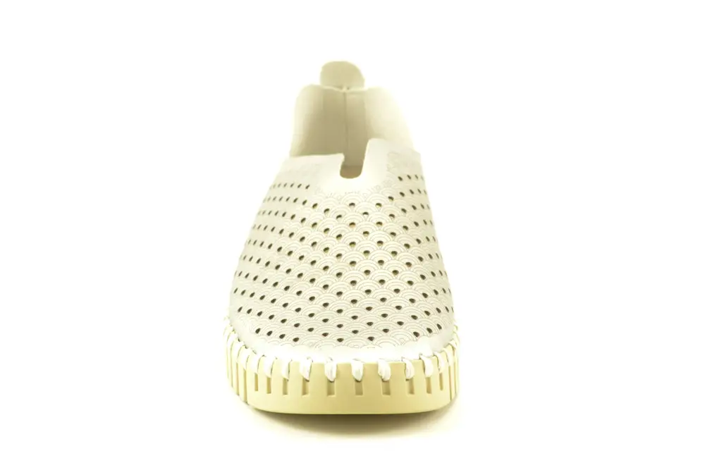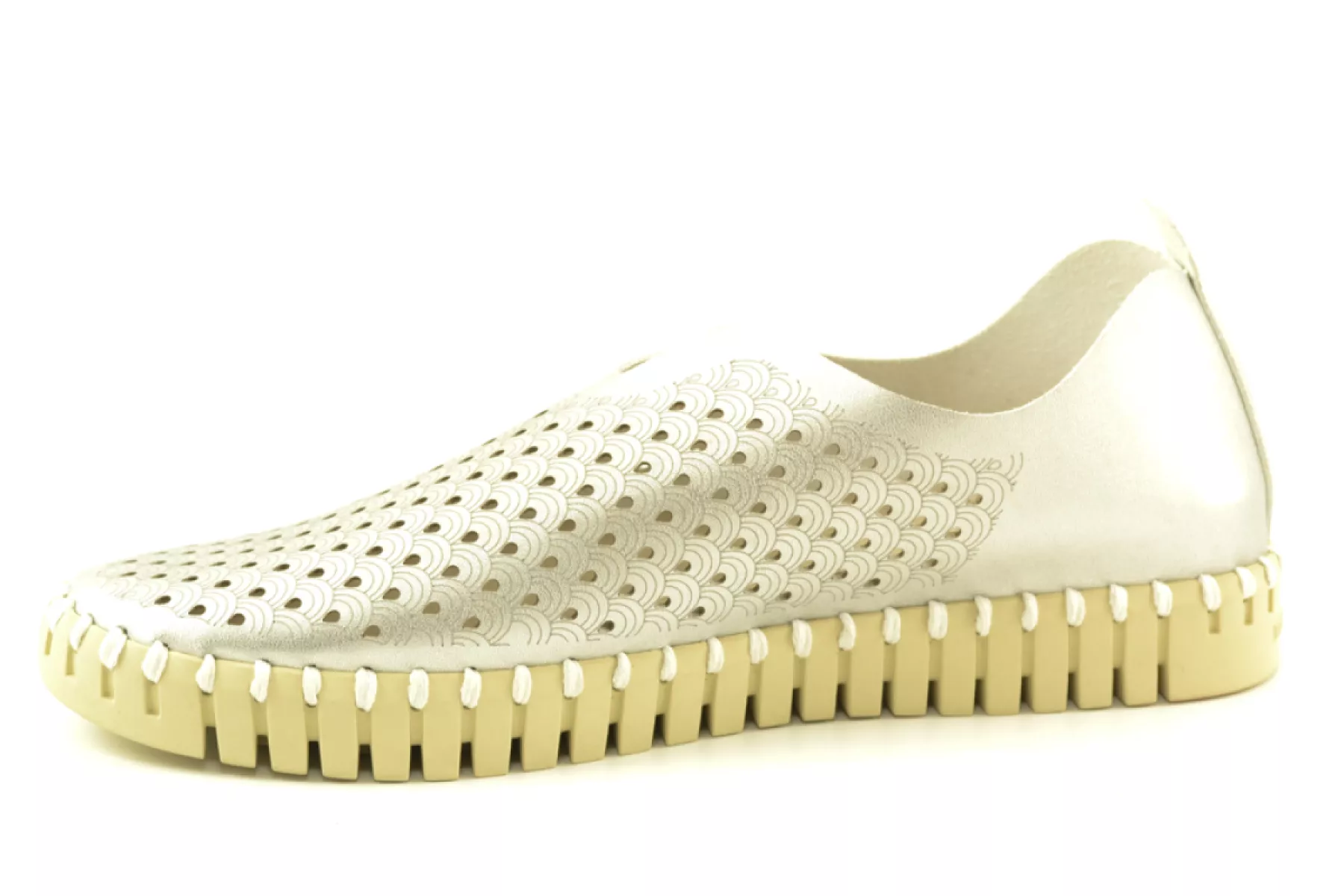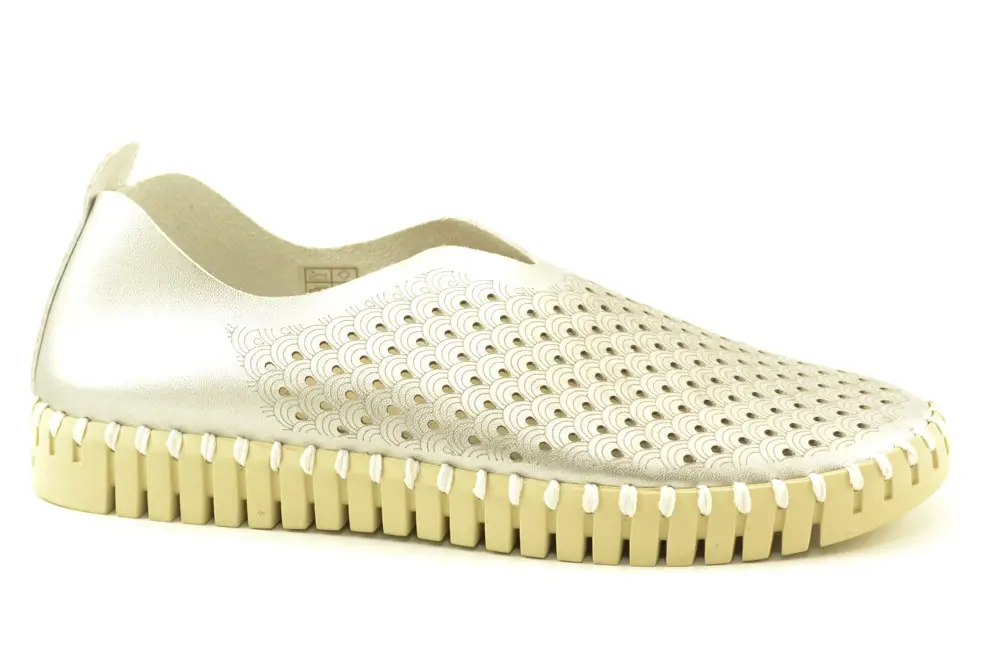 details: Ilse Jacobsen: het merk waar functionaliteit en stijl samenkomen. De vrouwelijke details en waterafstotende materialen zorgen ervoor dat je er onder alle omstandigheden geweldig uitziet. Neem deze mooie comfortabele instapper bijvoorbeeld. Daarbij is het zooltje uitneembaar.