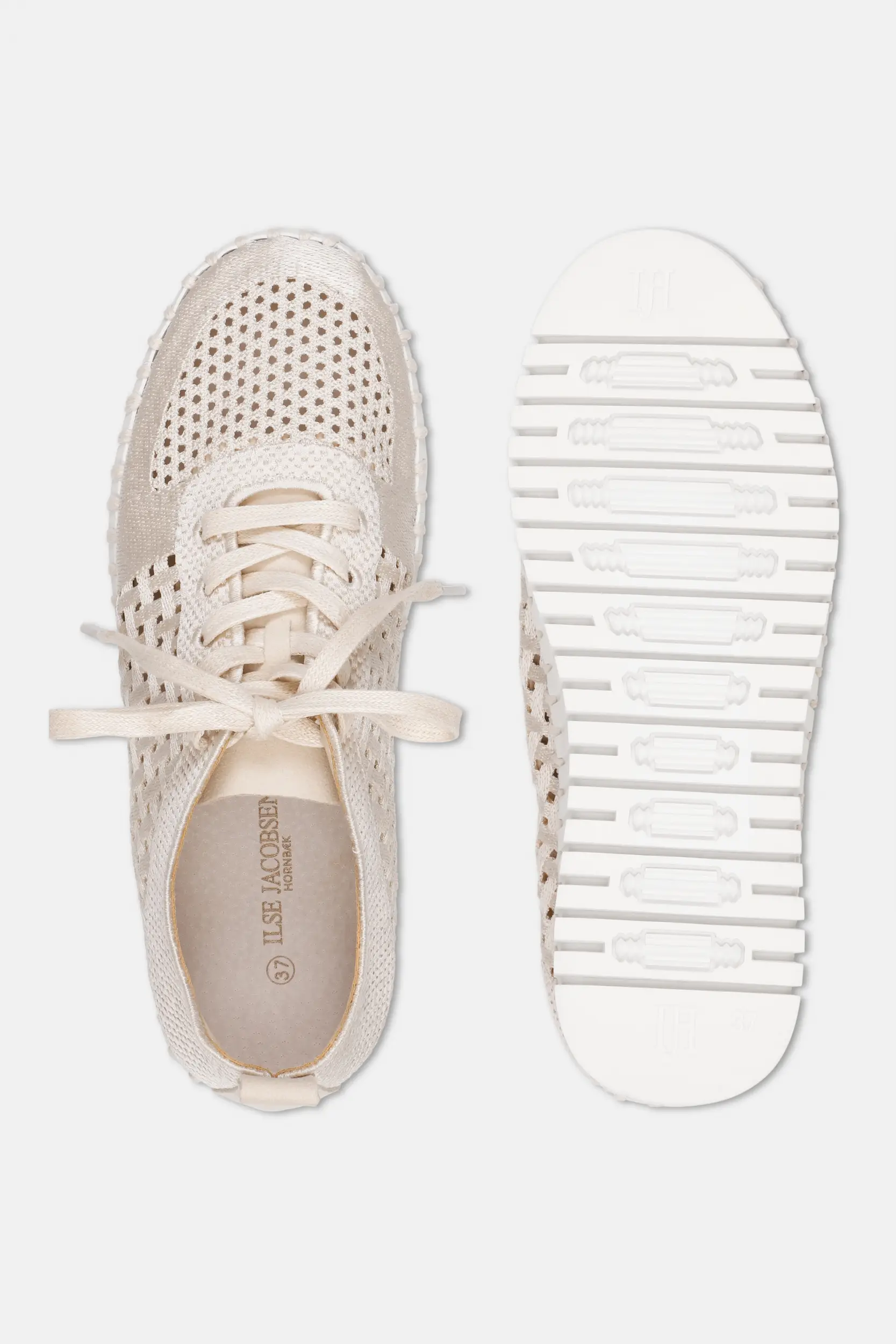 De sneakers TULIP4271 van Ilse Jacobsen is een trendy sneaker met een dikke zool. De sneaker biedt de perfecte mix van stijl en comfort. Het bovenwerk is gemaakt van ademend elektrisch borduurwerk, waardoor de schoen perfect aansluit zonder te knellen. De flexibele Tulip zool is volledig lijmvrij en gestikt met gerecycled garen. Binnenin zorgt de zachte, gewatteerde binnenzool voor heerlijk comfort. Met de veters maak je hem perfect passend. Ideaal voor een dagje uit of je dagelijkse look een trendy touch te geven.