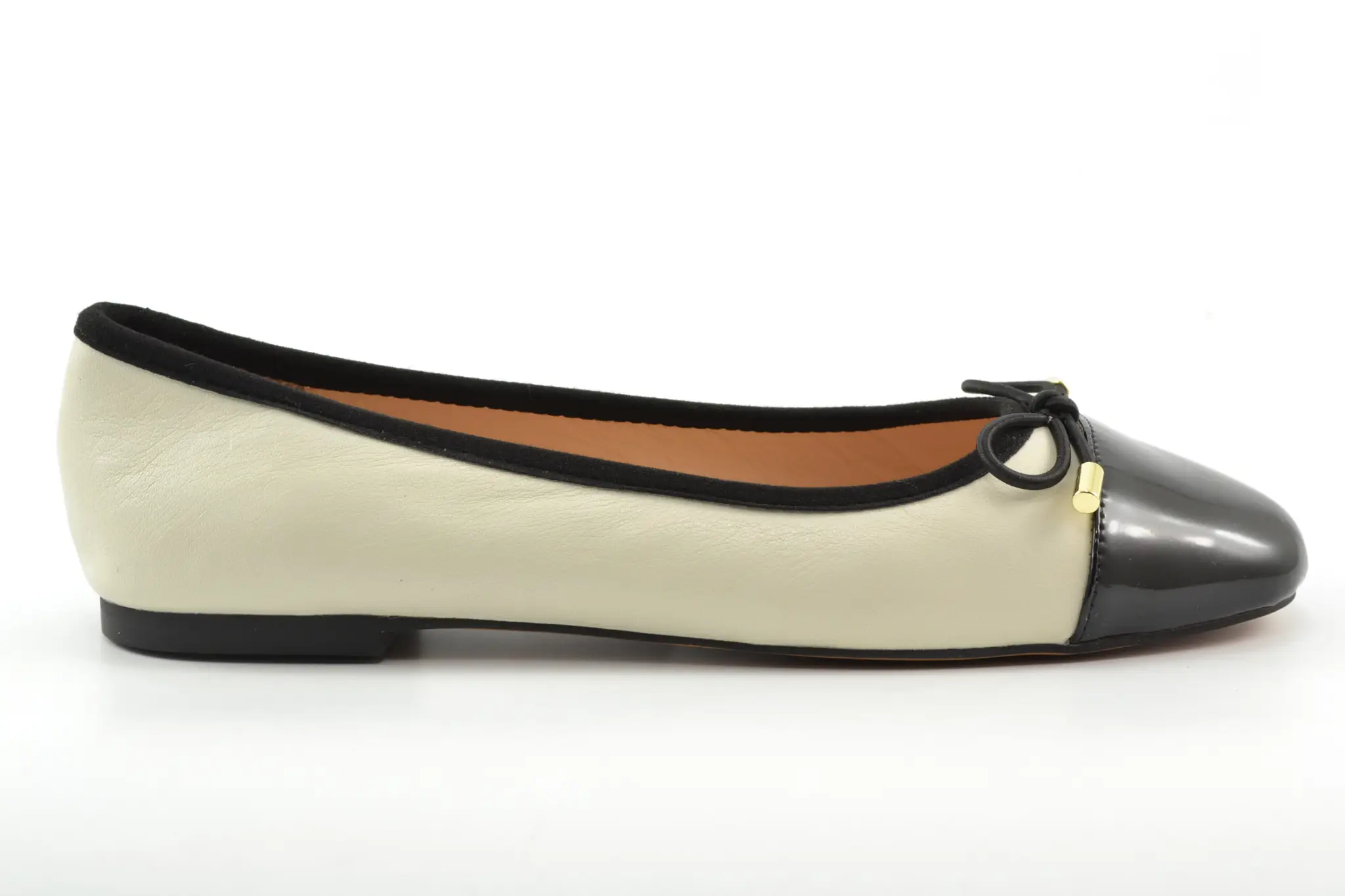 details: een mooie ballerina van Inuovo in creme leer met een zwarte lak neus. Het klassieke strikje op de voorvoet mag natuurlijk niet ontbreken…
