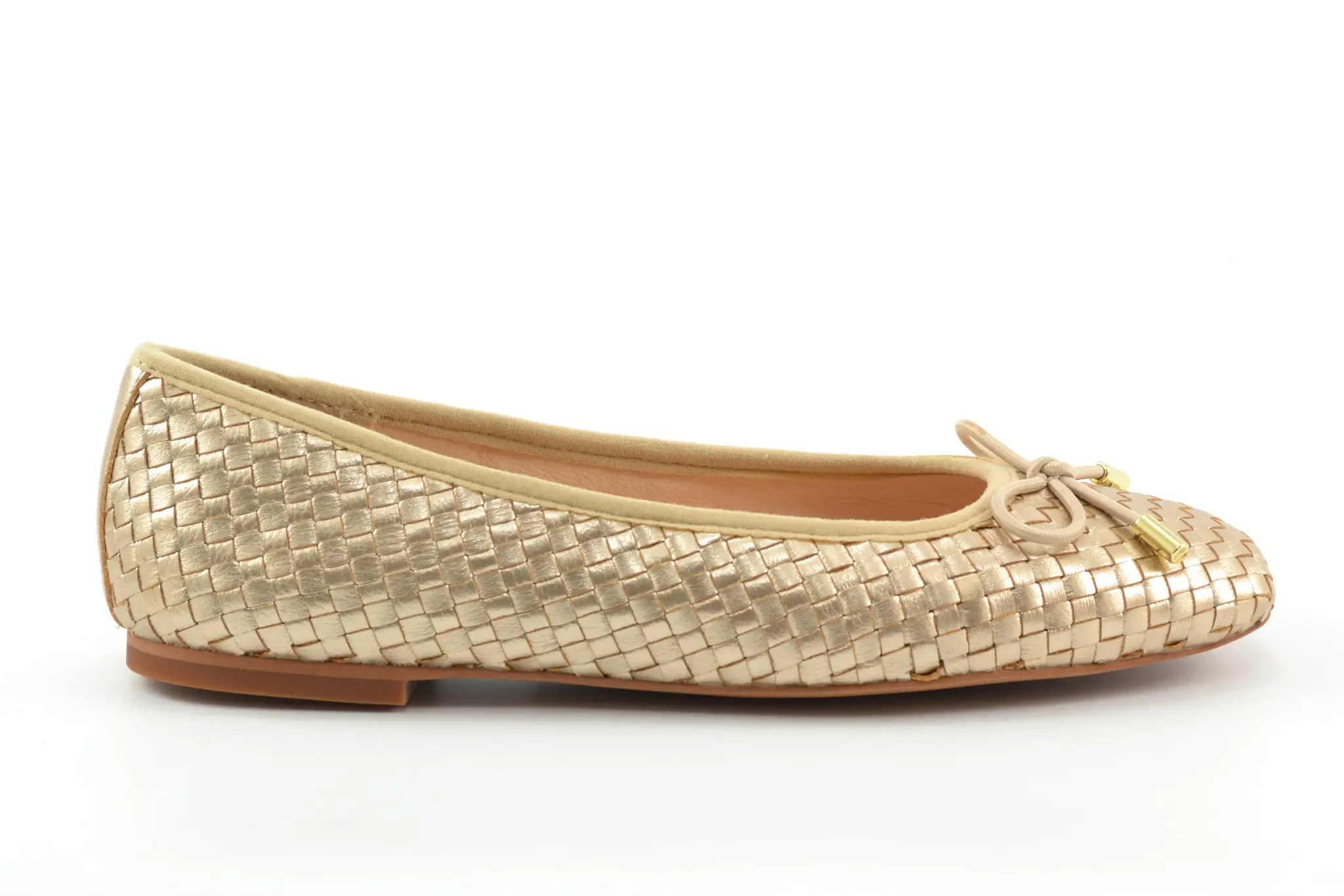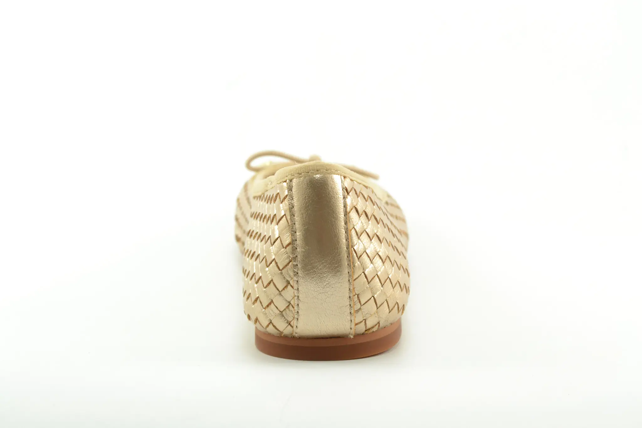 details: een mooie ballerina van Inuovo in goud vlecht leer. Het klassieke strikje op de voorvoet mag natuurlijk niet ontbreken…