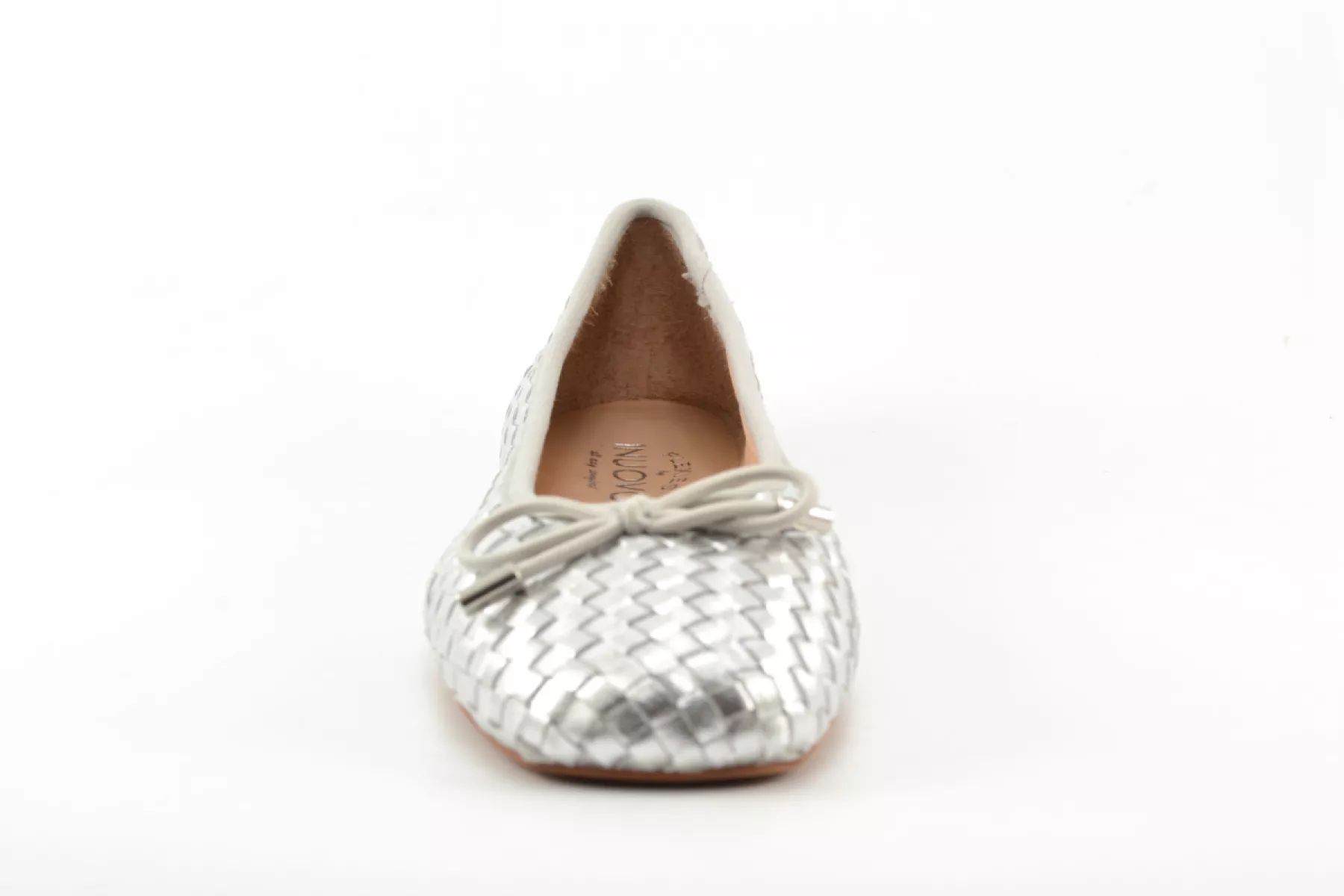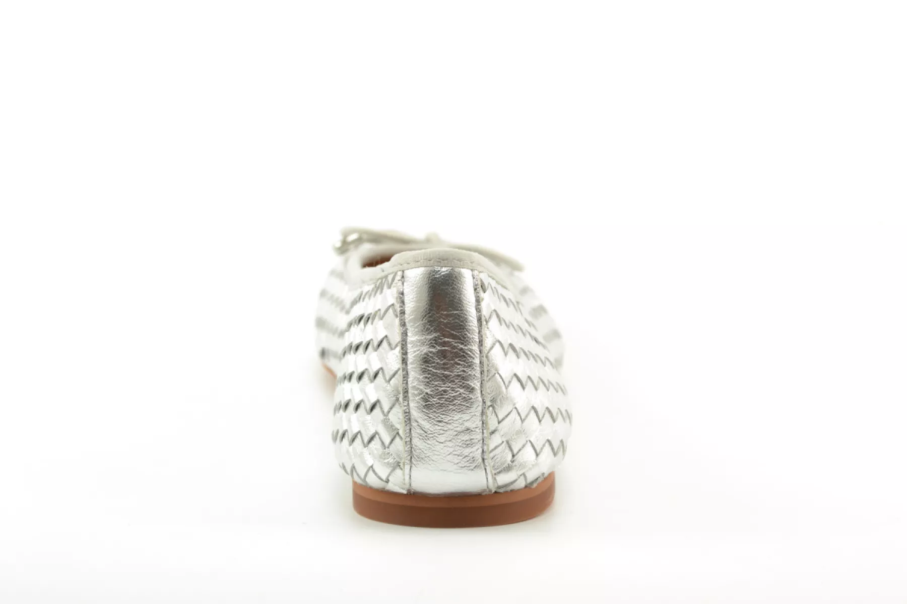 details: een mooie ballerina van Inuovo in zilver vlecht leer. Het klassieke strikje op de voorvoet mag natuurlijk niet ontbreken…