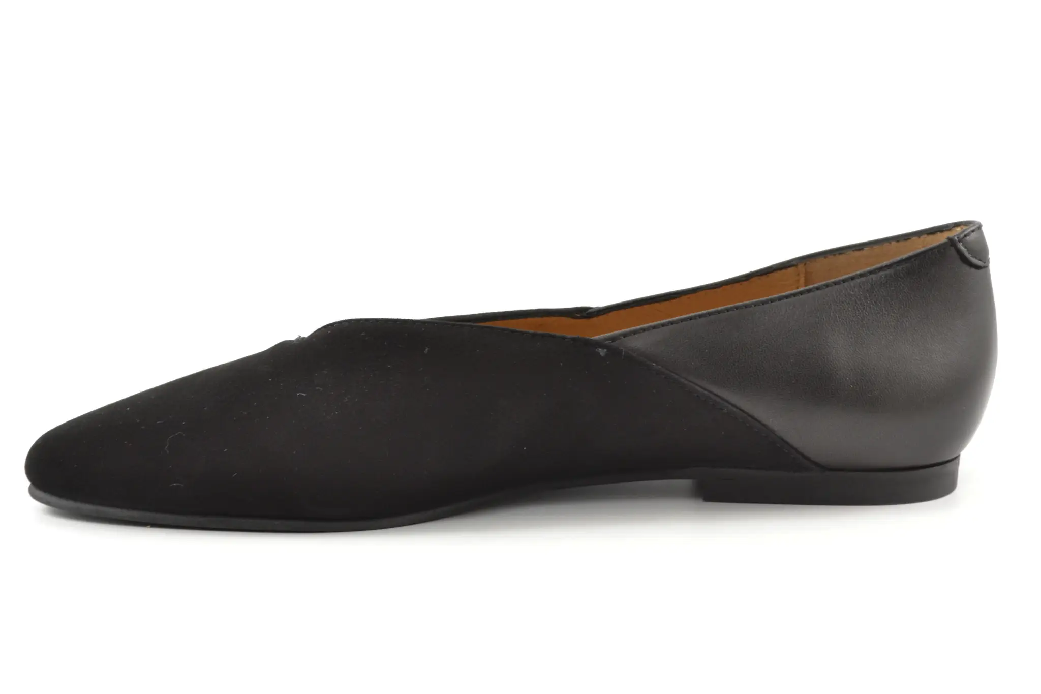 details: ballerina met suede voorblad en leren hiel, spitse leest