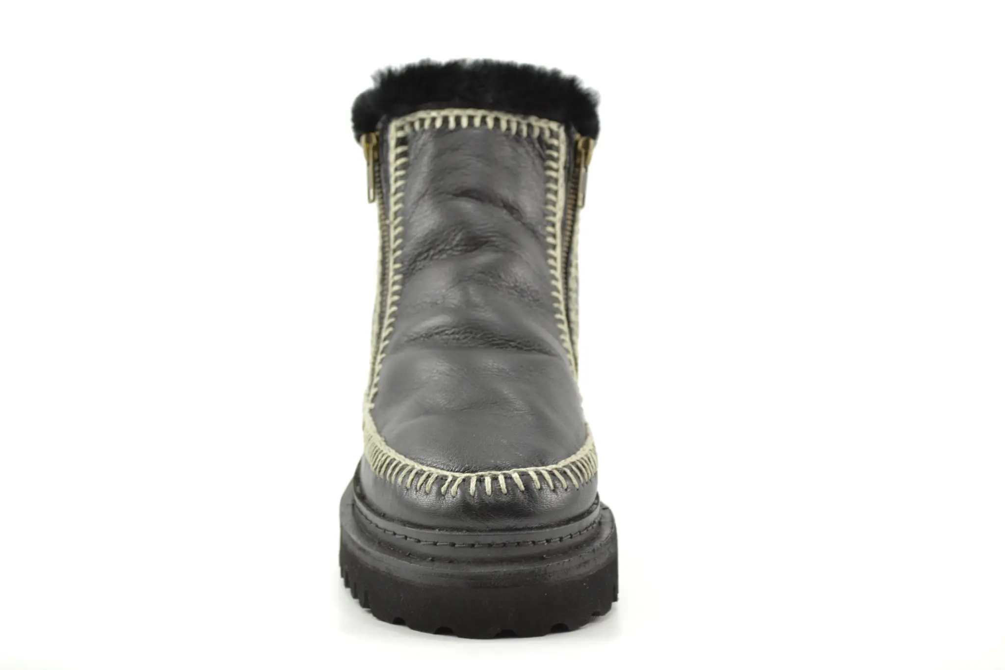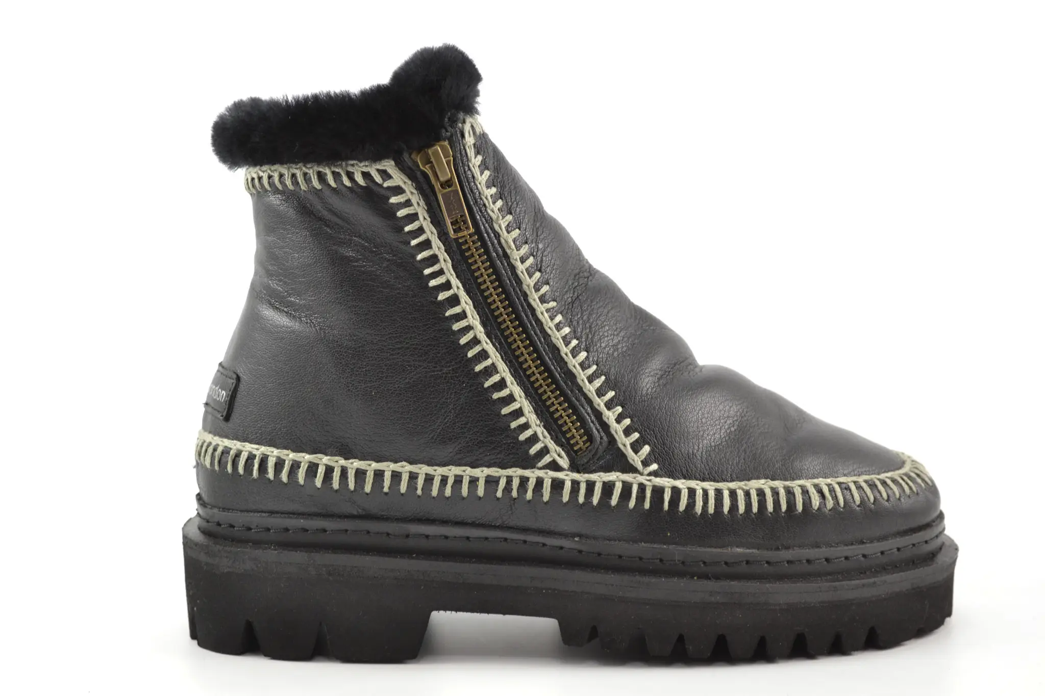 Klassieke handgemaakte leren enkellaars met rits aan de zijkant en off white haakdetails