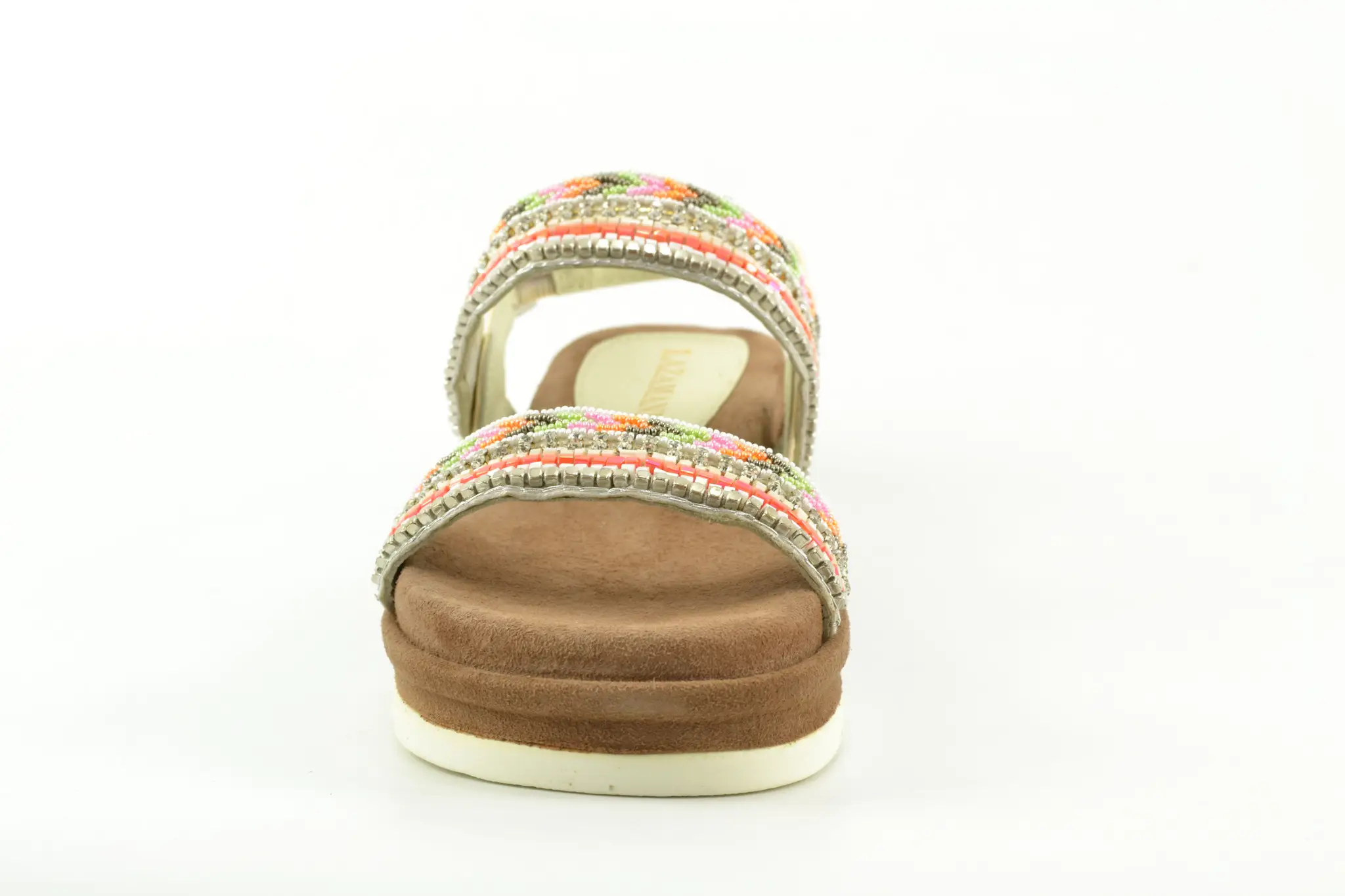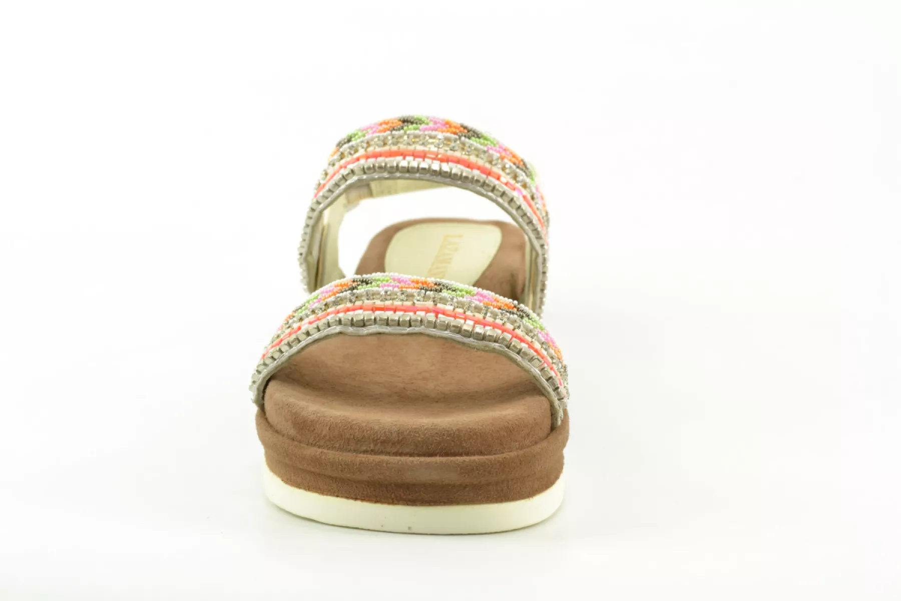 Time to paint your nails! Een vrolijke dames sandaal van het merk Lazamani met verschillende gekleurde tinten en materialan. Met deze sandalen breng je kleur aan je voeten. Laat de zomer maar komen!