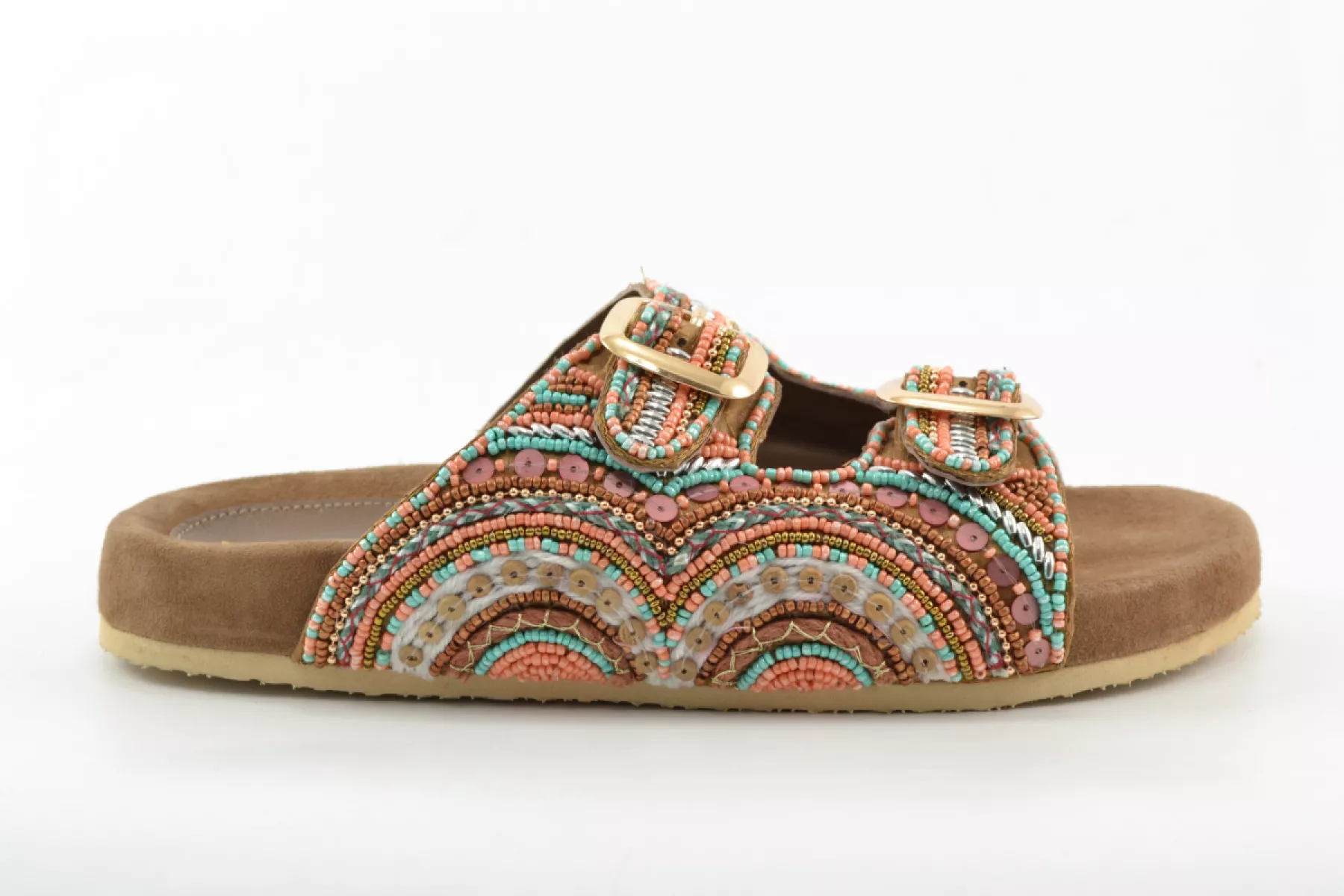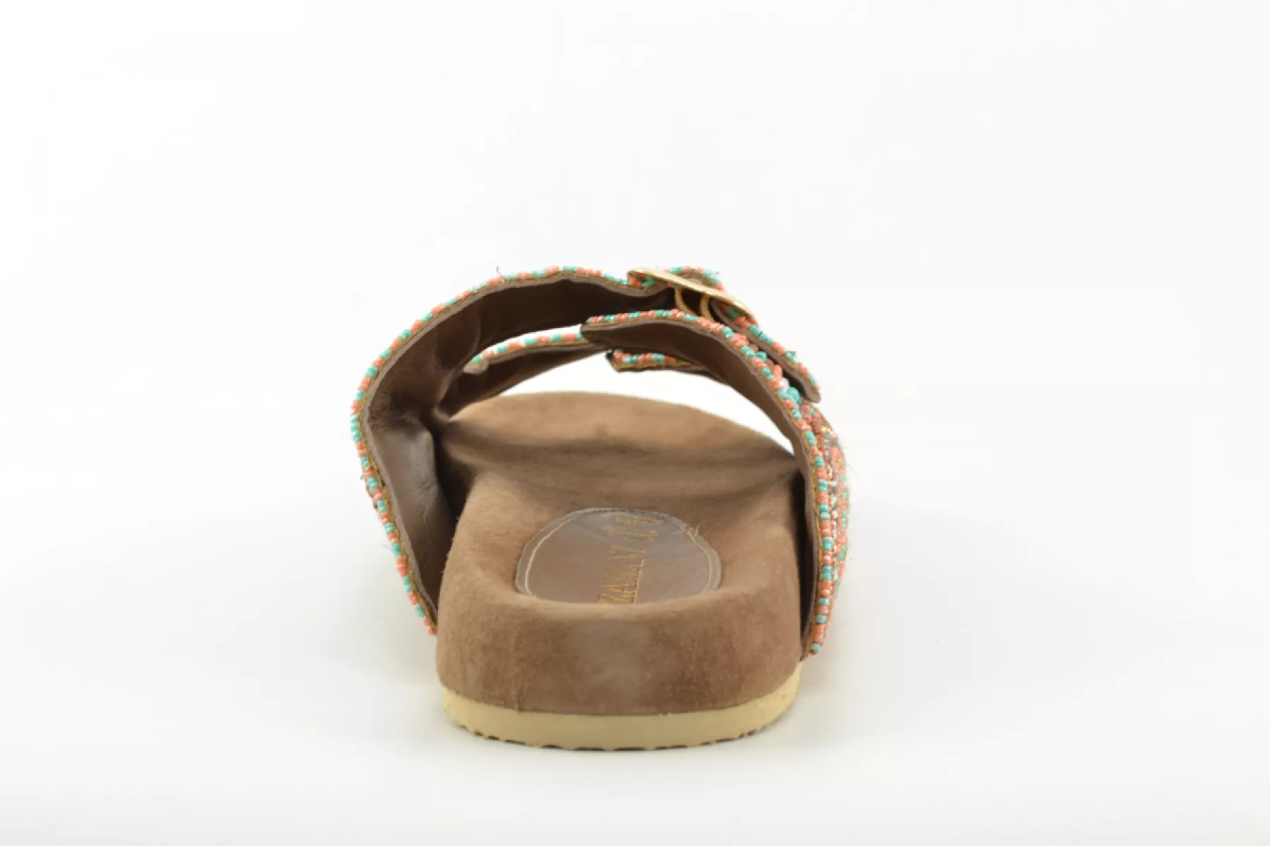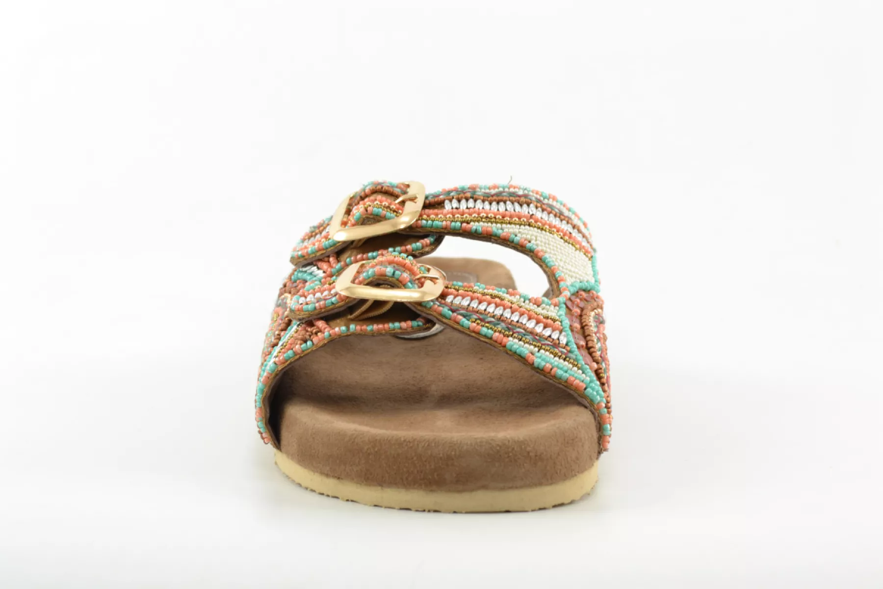 Time to paint your nails! Deze vrolijke dames slippers van het merk Lazamani zijn bezet met oranje en turqoise kraaltjes. Met deze sandalen breng je kleur aan je voeten. Laat de zomer maar komen!