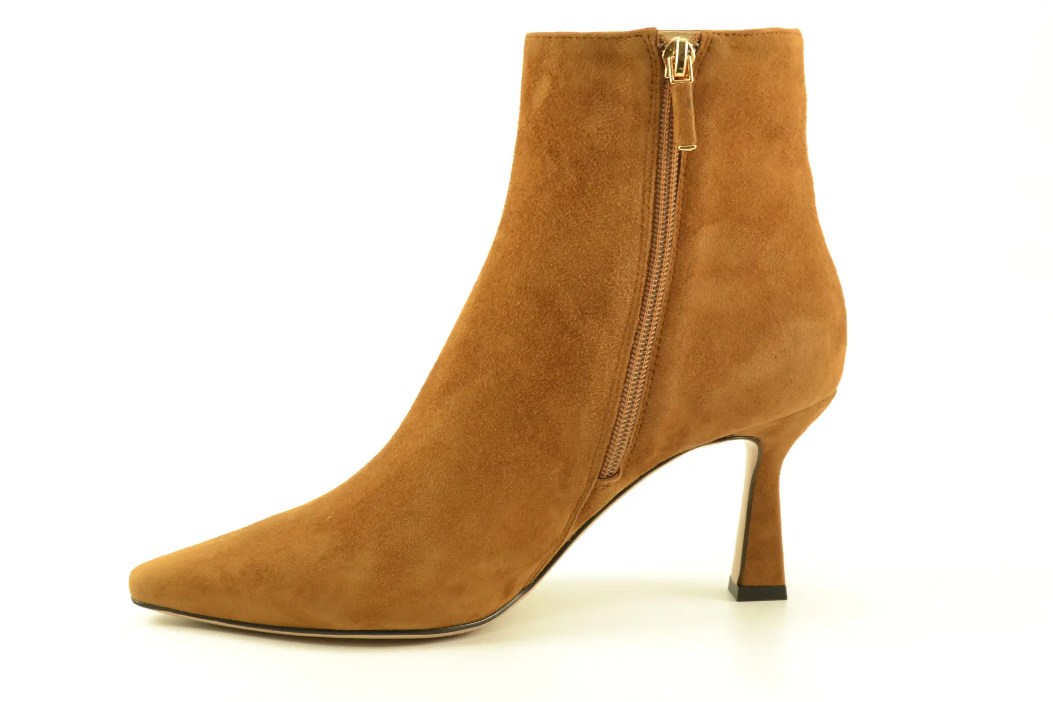 details: Lola Cruz is een luxe Spaanse schoenen- en accessoires label ontworpen door Maria Jesus Gozalvo. Zij heeft haar droom waargemaakt door het creéeren van een merk. Dit mooie bruin suede laarsje van Lola Cruz heeft een spitse leest. Het dunne hakje geeft dit laarsje een extra vrouwelijke touch.