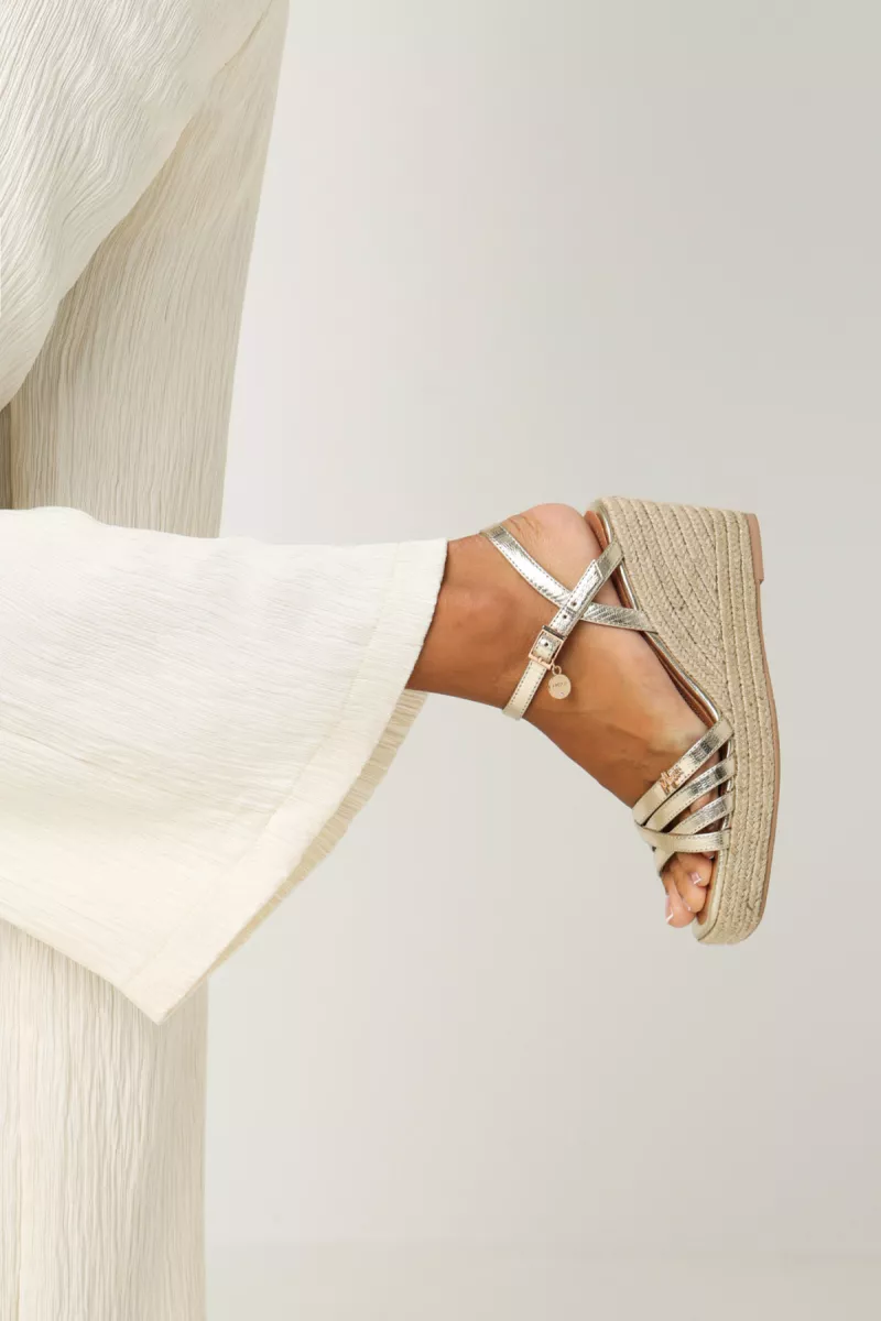 Mexx espadrilles sleehak goud snake