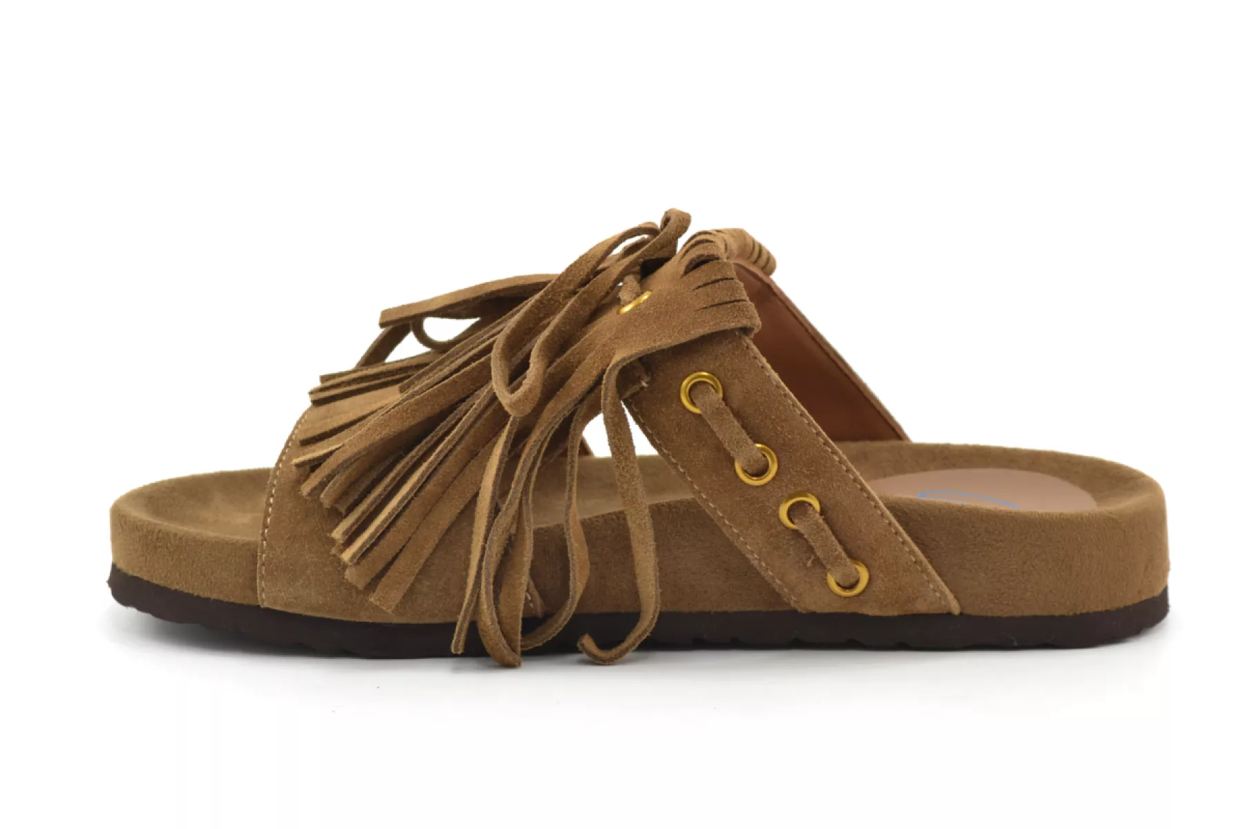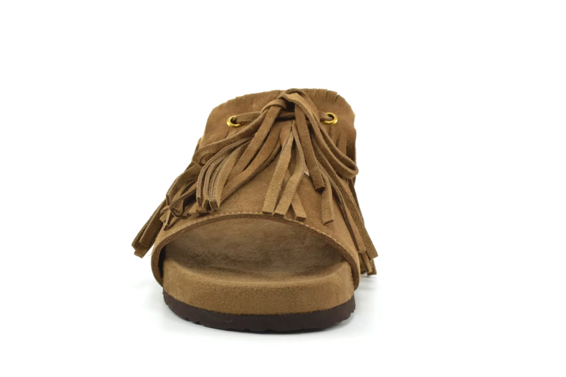 Miss Olivia bruine suede slippers franje
