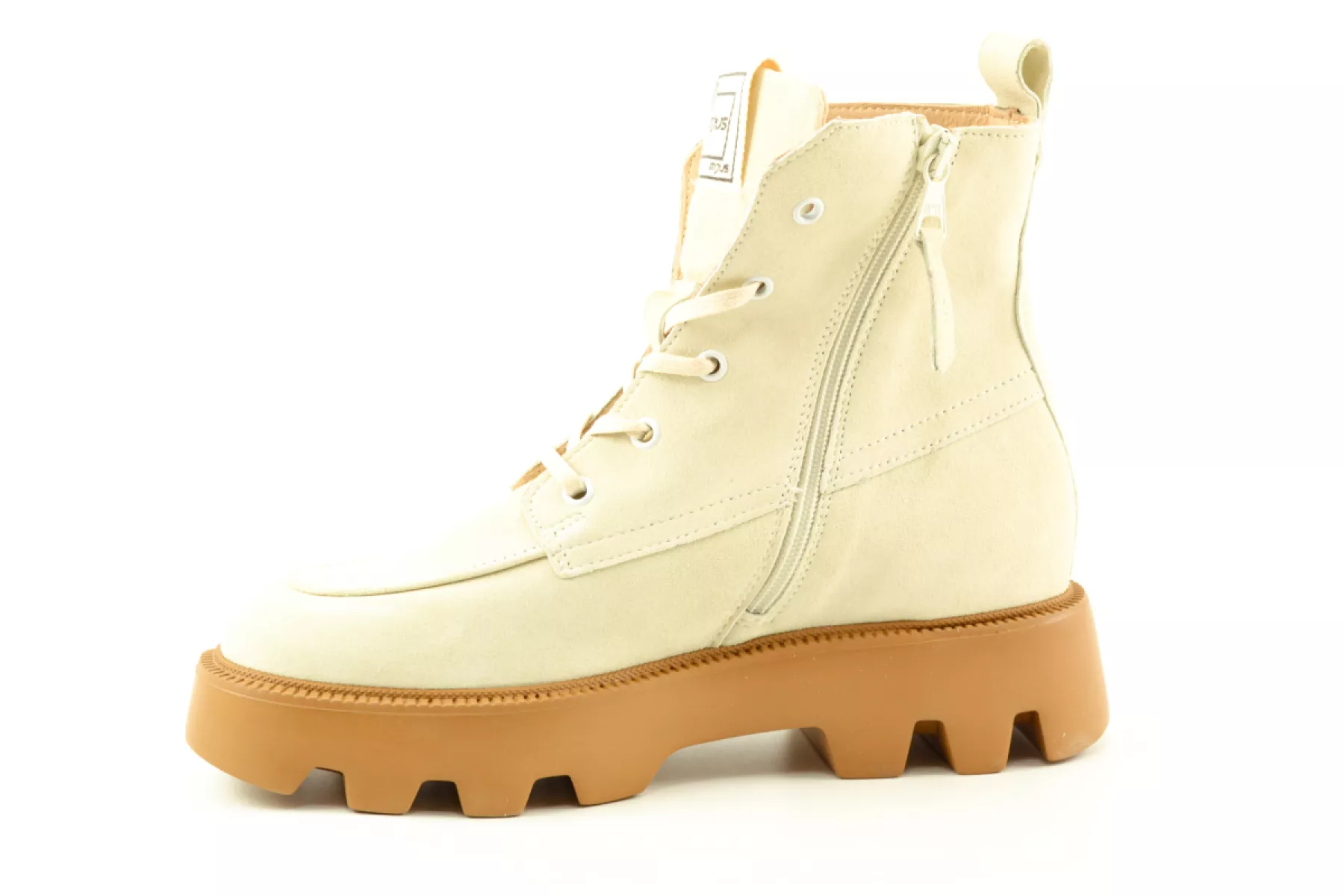 details: een stoere veterboot in een mooie zomerse kleur mag niet ontbreken in je kledingkast deze zomer. De bruine dikke rubberen zool zorgt voor een stoere twist.