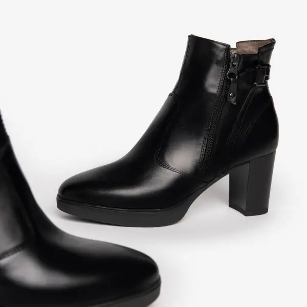 details: “made in Italy”en deze tekst mag een fabrikant alleen gebruiken als alle onderdelen van de schoen ook echt uit Italië komen. En dat zie je aan de luxe uitstraling van dit zwarte enkellaarsje met een sierrits aan de buitenkant en een hakhoogte van 6.5 cm! Perfect te combineren bij je winterse outfit!