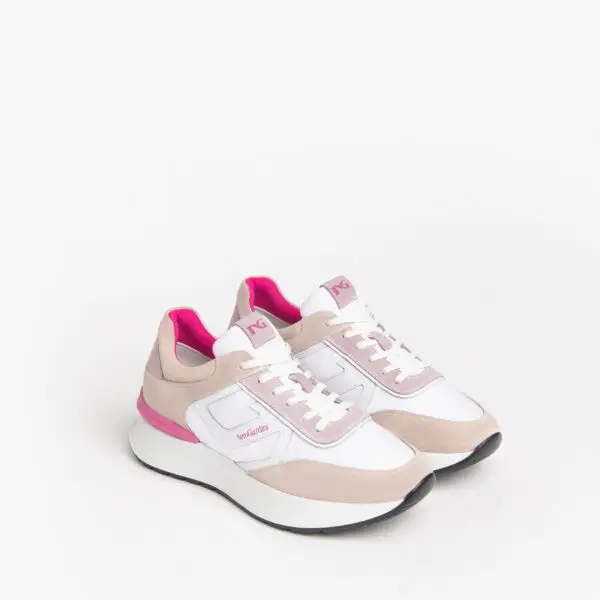 details: “made in Italy”en deze tekst mag een fabrikant alleen gebruiken als alle onderdelen van de schoen ook echt uit Italié komen. En dat zie je aan de luxe uitstraling van deze wit-lila sneaker met fuxia details! Perfect te combineren bij je zomerse outfit! deze sneakers vallen groot uit…