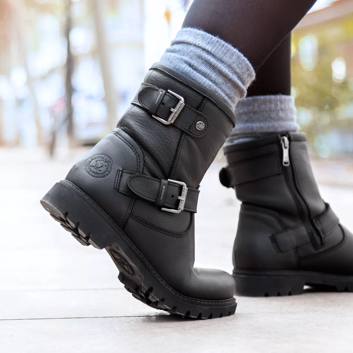 details: deze zwart leren casual enkellaars heeft 2 zilverkleurige gespen aan de buitenkant. Dit laarsje draag je lekker comfortabel ook dankzij de zwarte profielzool en warme binnenvoering. Het gevette leer zorgt er voor dat dit laarsje waterafstotend is.Het zooltje is uitneembaar.