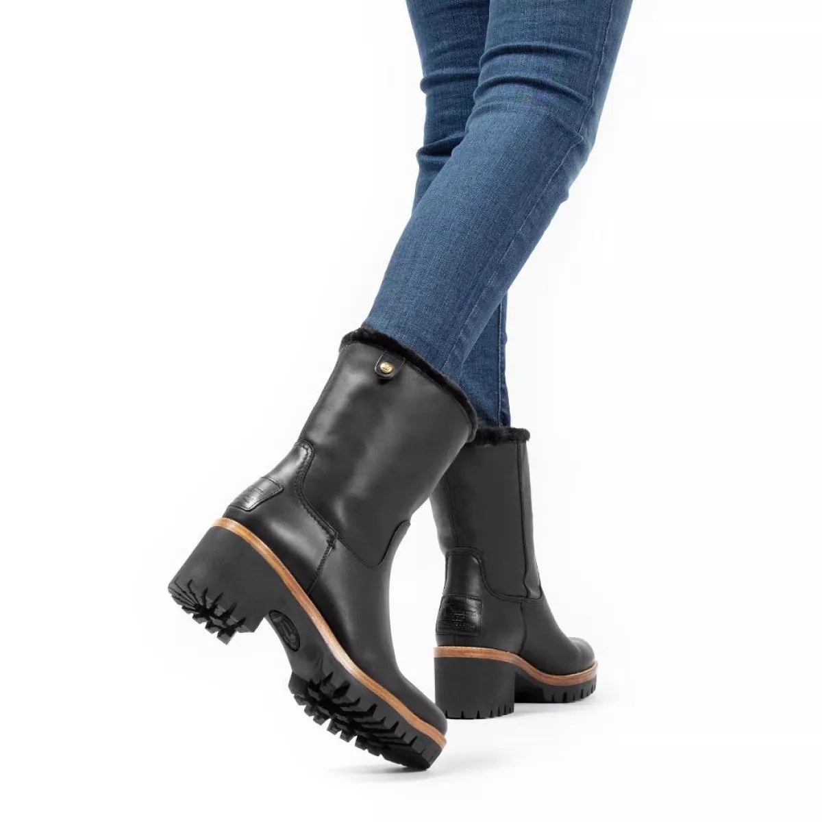 Deze mooie zwarte leren dameslaarzen van Panama Jack zijn gevoerd met Gore-tex en daardoor waterdicht. De blokhak geeft deze laarzen een vrouwelijke touch. Met deze zwarte enkellaarzen zie je er zelfs bij slecht weer goed uit!