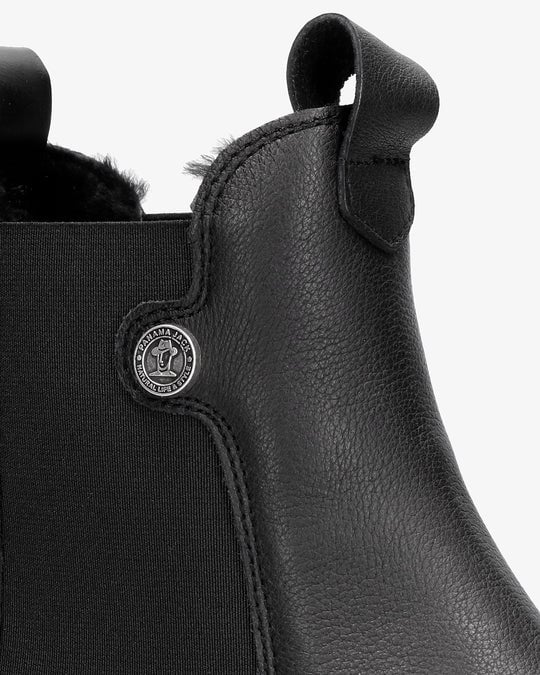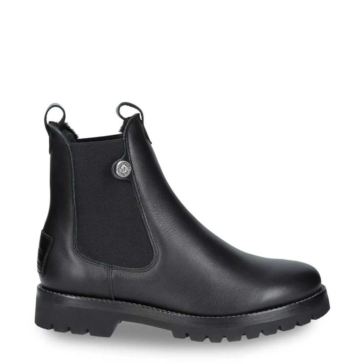 Platte dameslaars. WATERDICHT zwart nappa leer. instap met elastische inzetten. Voering van schapenvacht. Uitneembare anatomische binnenzool. Natuurlijke, flexibele en duurzame rubberen zool. schachthoogte: 14.5 cm. Hakhoogte: 4 cm.
