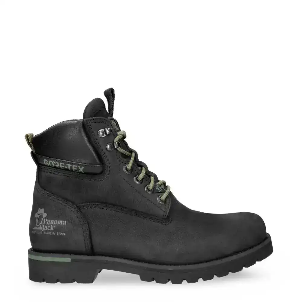 Laarzen voor heren effen Vetersluiting. Nubuckleer zwart WATERPROOF. Voering van Gore-Tex®. Anatomische en uitneembare binnenzool. Flexibele en duurzame rubberen zool. Schachthoogte: 16 cm.