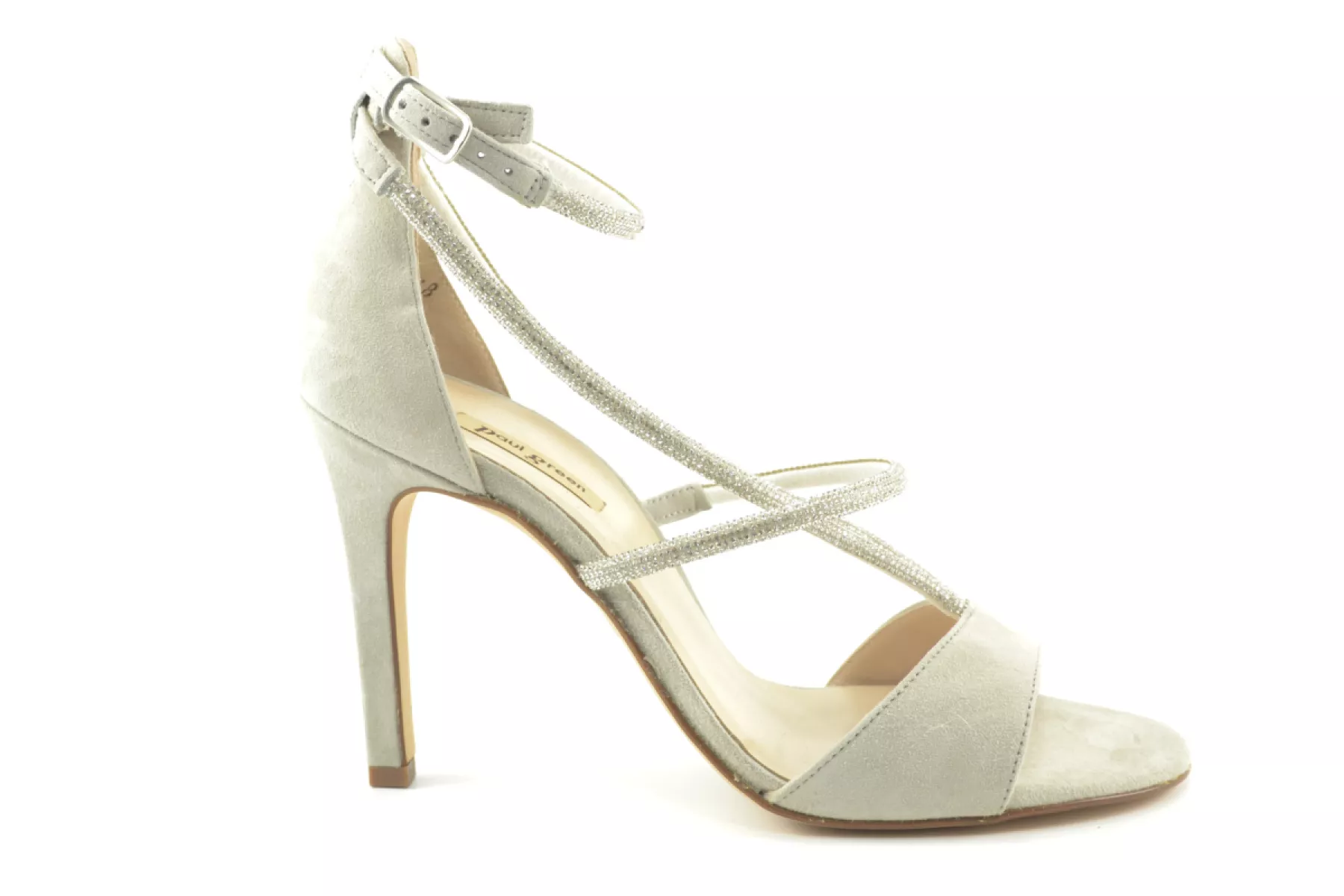 details: deze mooie feestelijke pump op dunne hak heeft een open teen en is afgewerkt met zilverkleurige strass. Deze pump heeft een dichte hielen enkelbandje.
