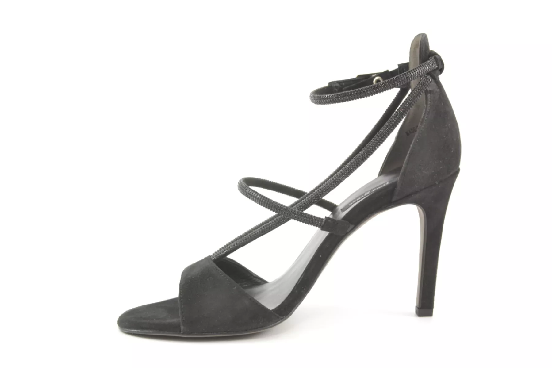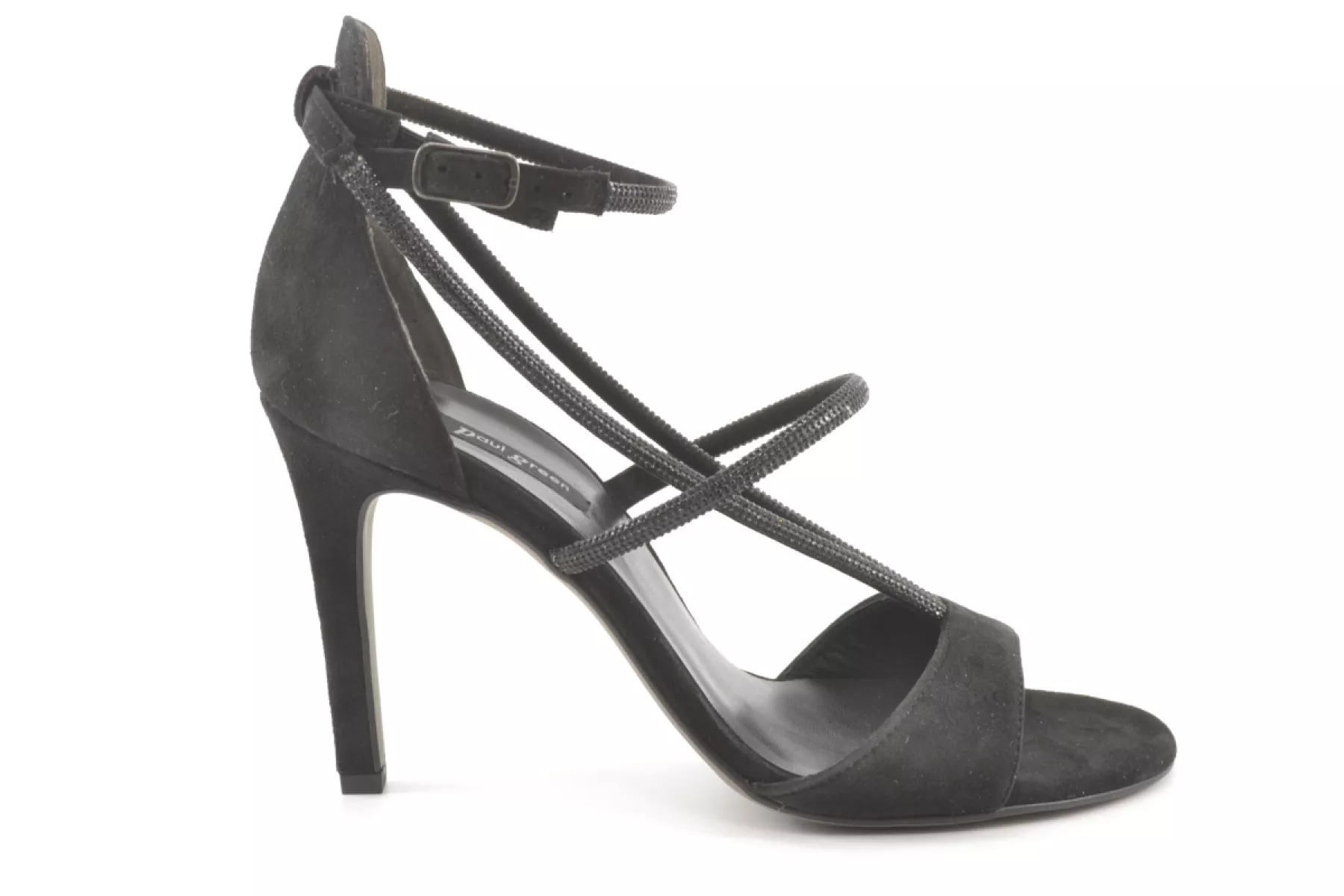 details: deze mooie feestelijke sandaal op dunne hak is afgewerkt met zwarte strass. Deze pump heeft een dichte hiel en open teen