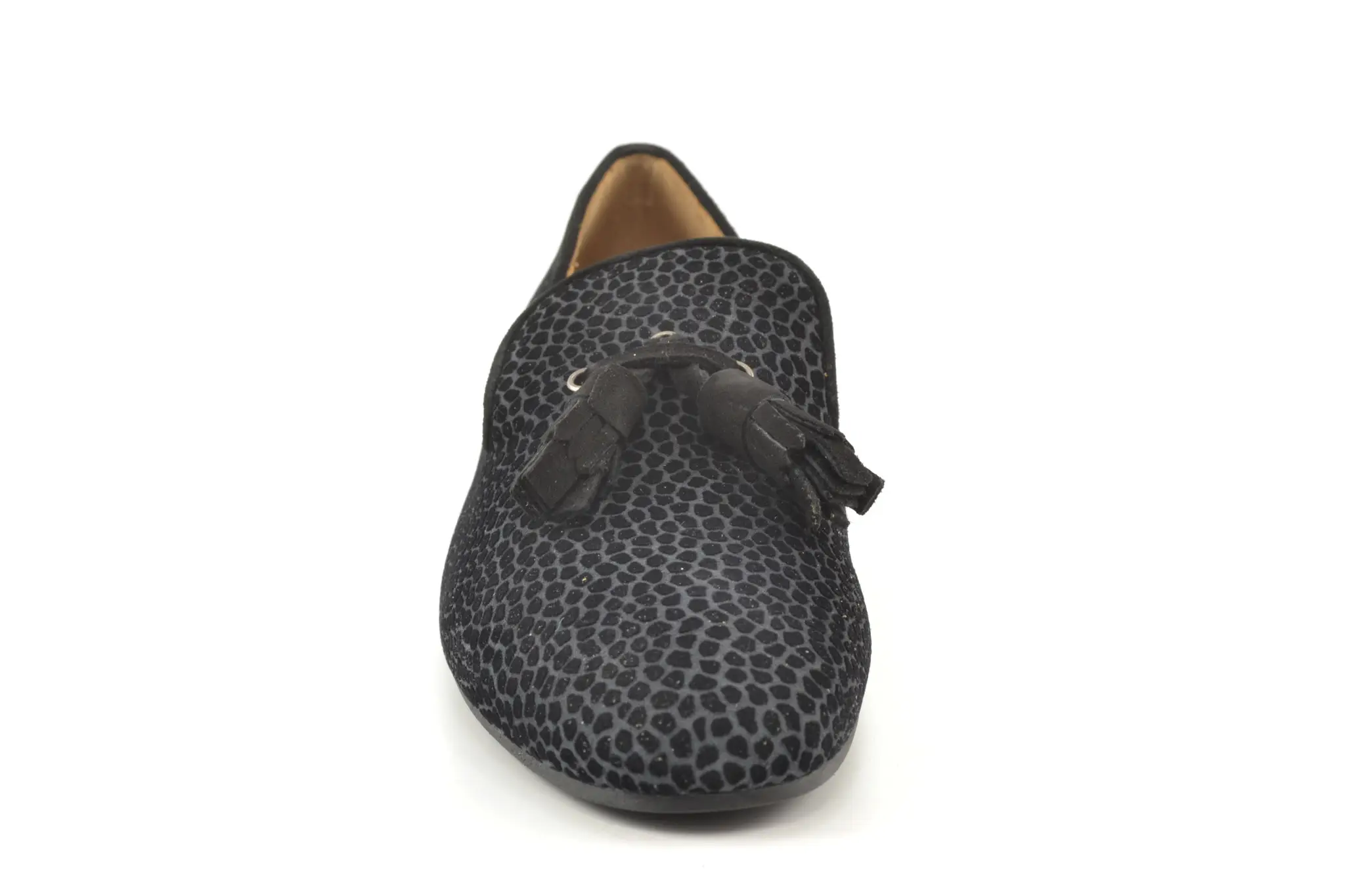 details: deze mooie instapper van Pedro Miralles heeft een flosje op de voorvoet en een grijs-zwarte giraffen-print