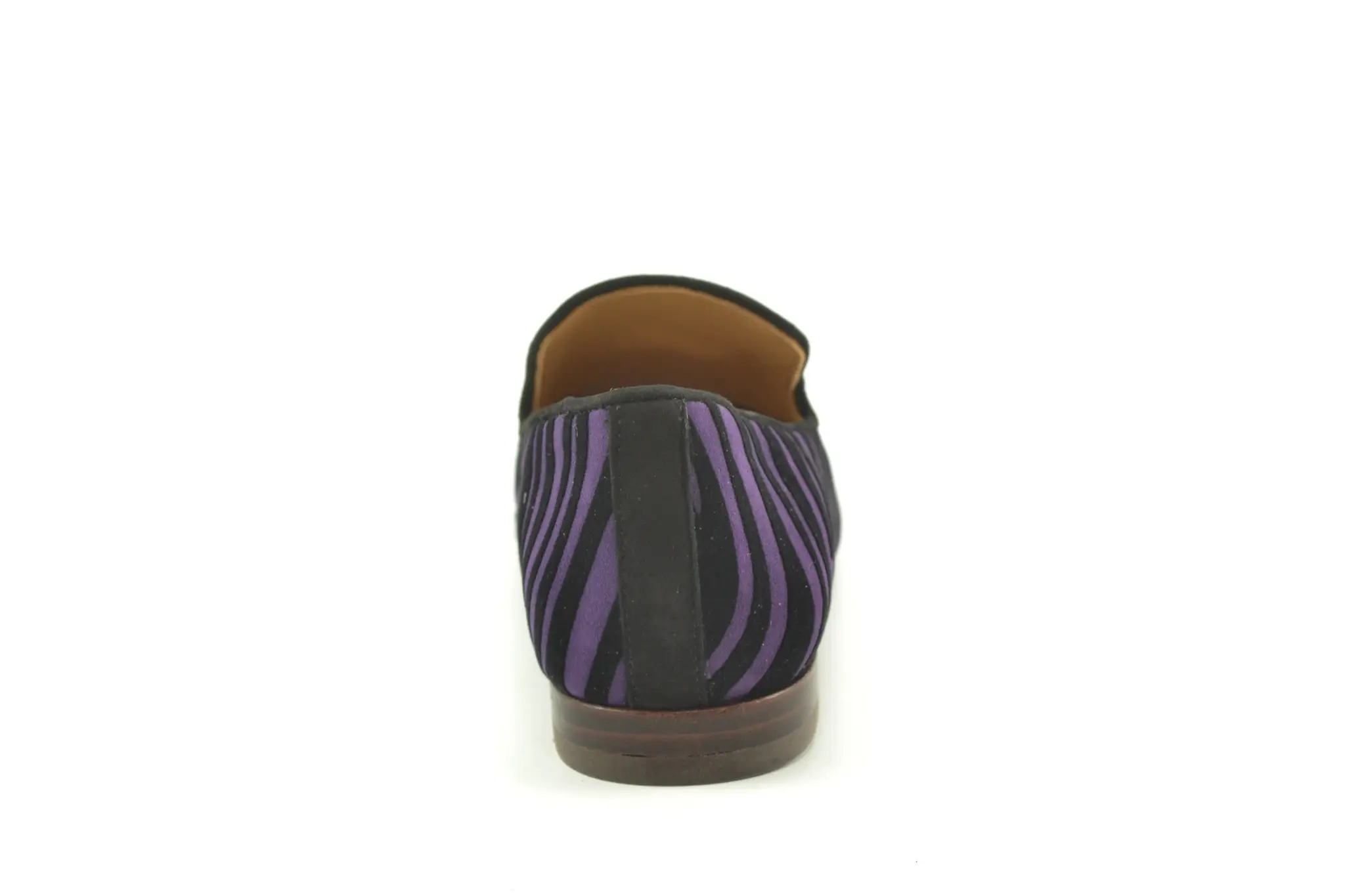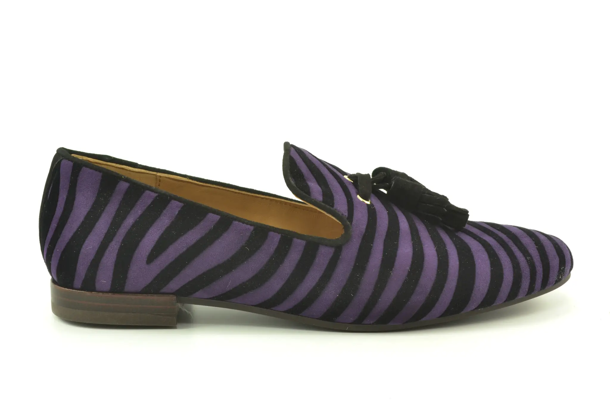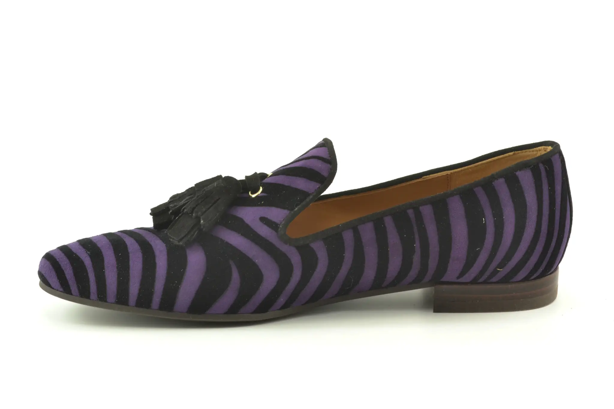 details: deze mooie instapper van Pedro Miralles heeft een flosje op de voorvoet en een paars-zwarte zebra-print