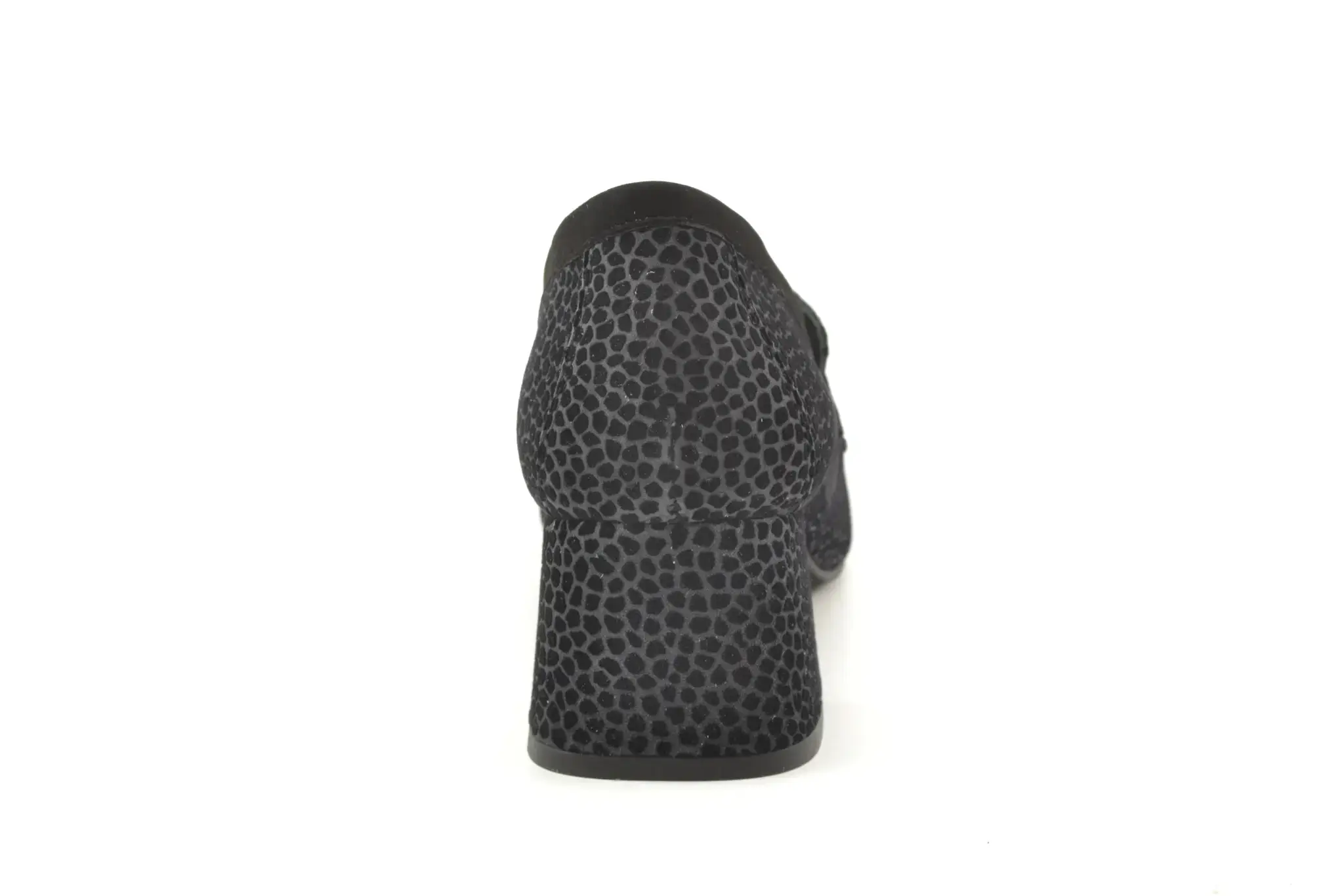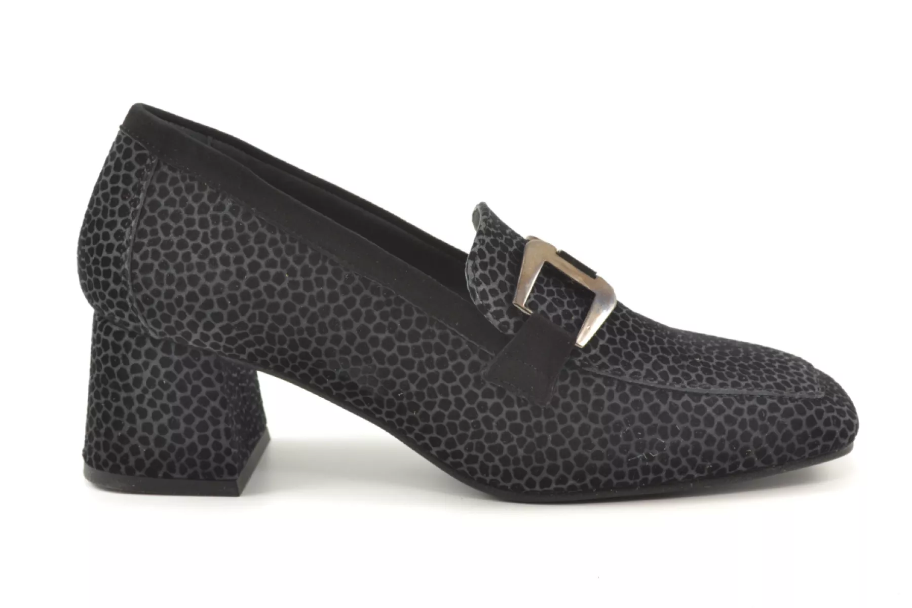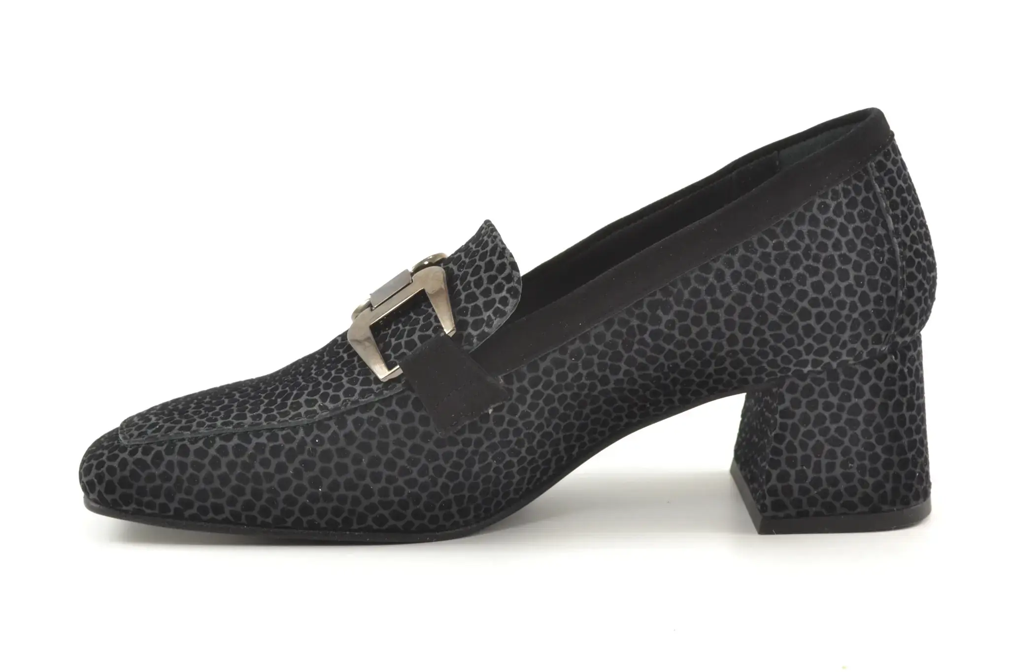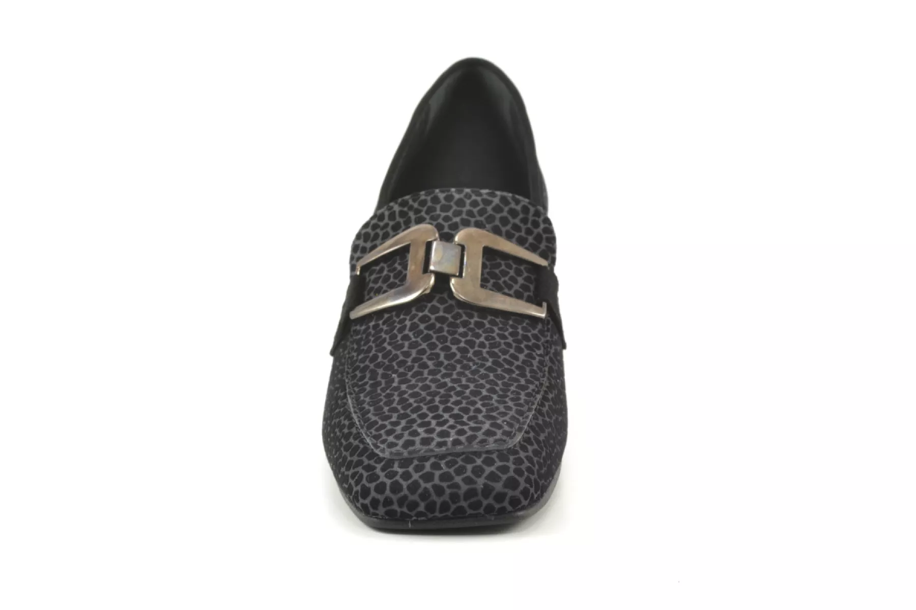 details: deze mooie pump van Pedro Miralles heeft een mooi detail op de voorvoet en een grijs-zwarte giraffenprint