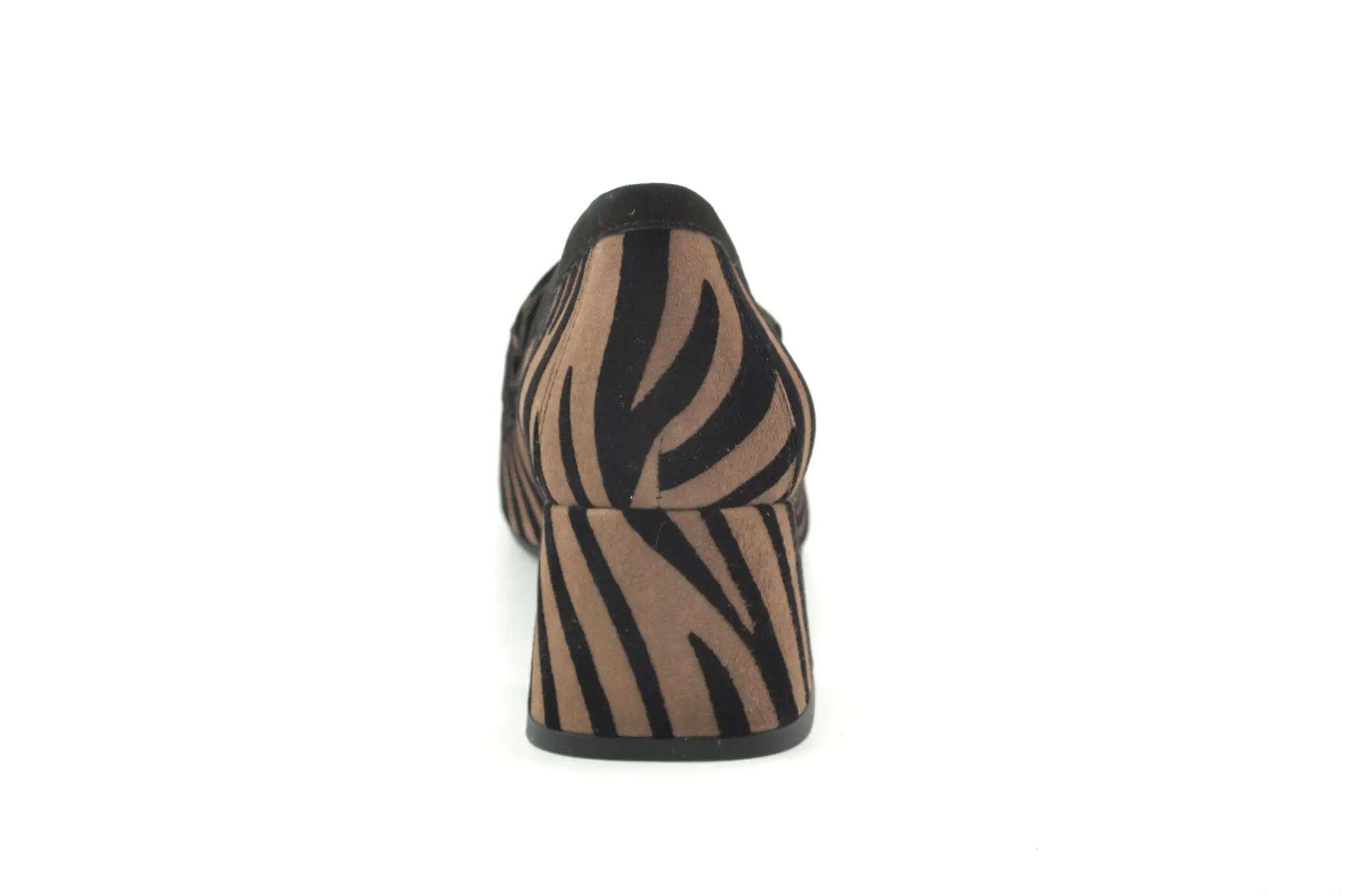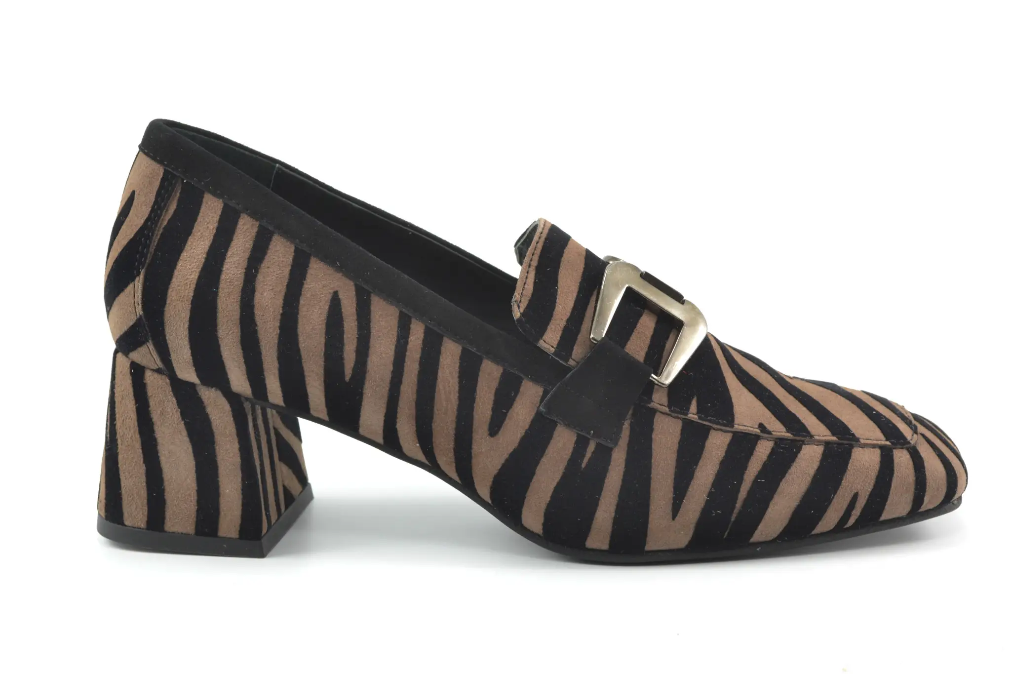 details: deze mooie pump van Pedro Miralles heeft een mooi detail op de voorvoet en een bruin-zwarte zebra-print