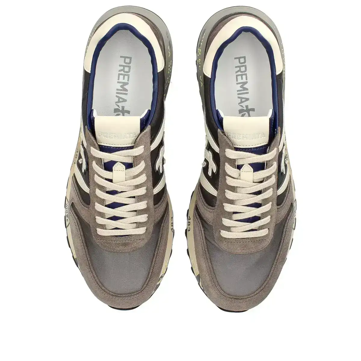 De Lander sneaker van het Italiaanse merk Premiata is gemaakt van zacht suede en nylon. De look wordt versterkt door het onmiskenbare Premiata-logo en de branding op de ergonomische en super lichte zool.