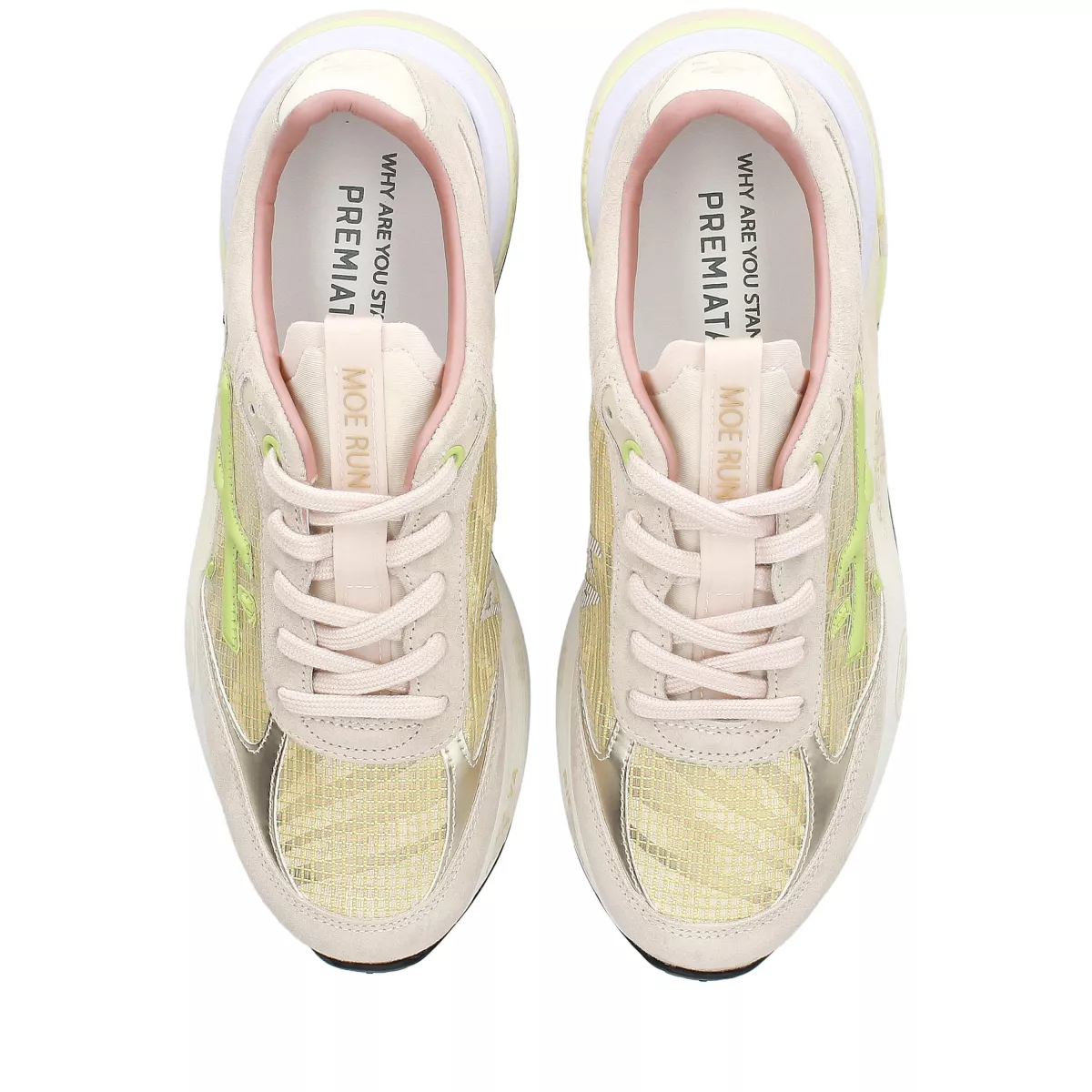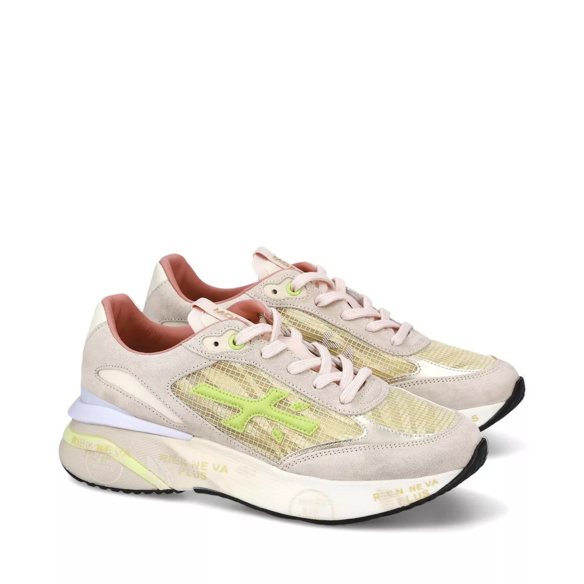De exclusieve sneakers van het Italiaanse merk Premiata kenmerken zich door hun unieke uitstraling en door anders te zijn dan andere sneaker-merken. De unieke branding aan de zijkant van deze sneakers en de bedrukte zool zijn specifieke kenmerken van het merk Premiata. De Premiata Moerund met toffe accenten is afgewerkt met hoogwaardig mesh, suede en leer.