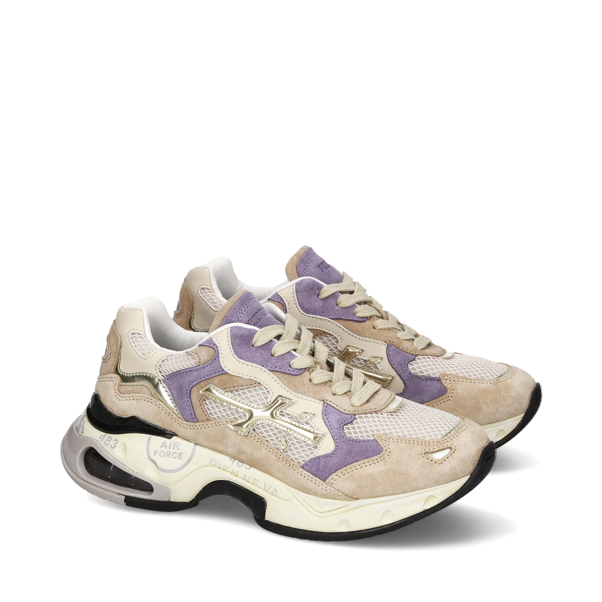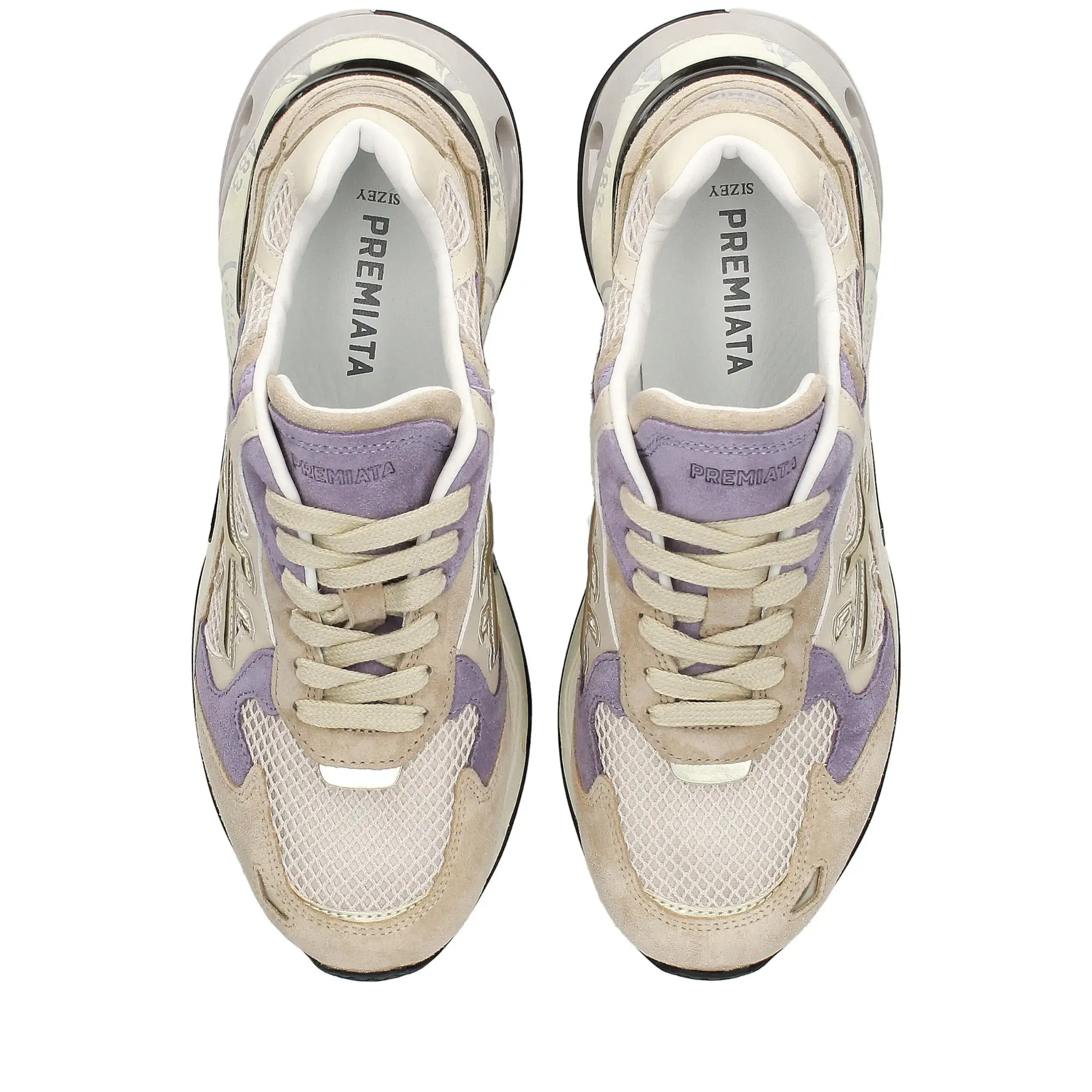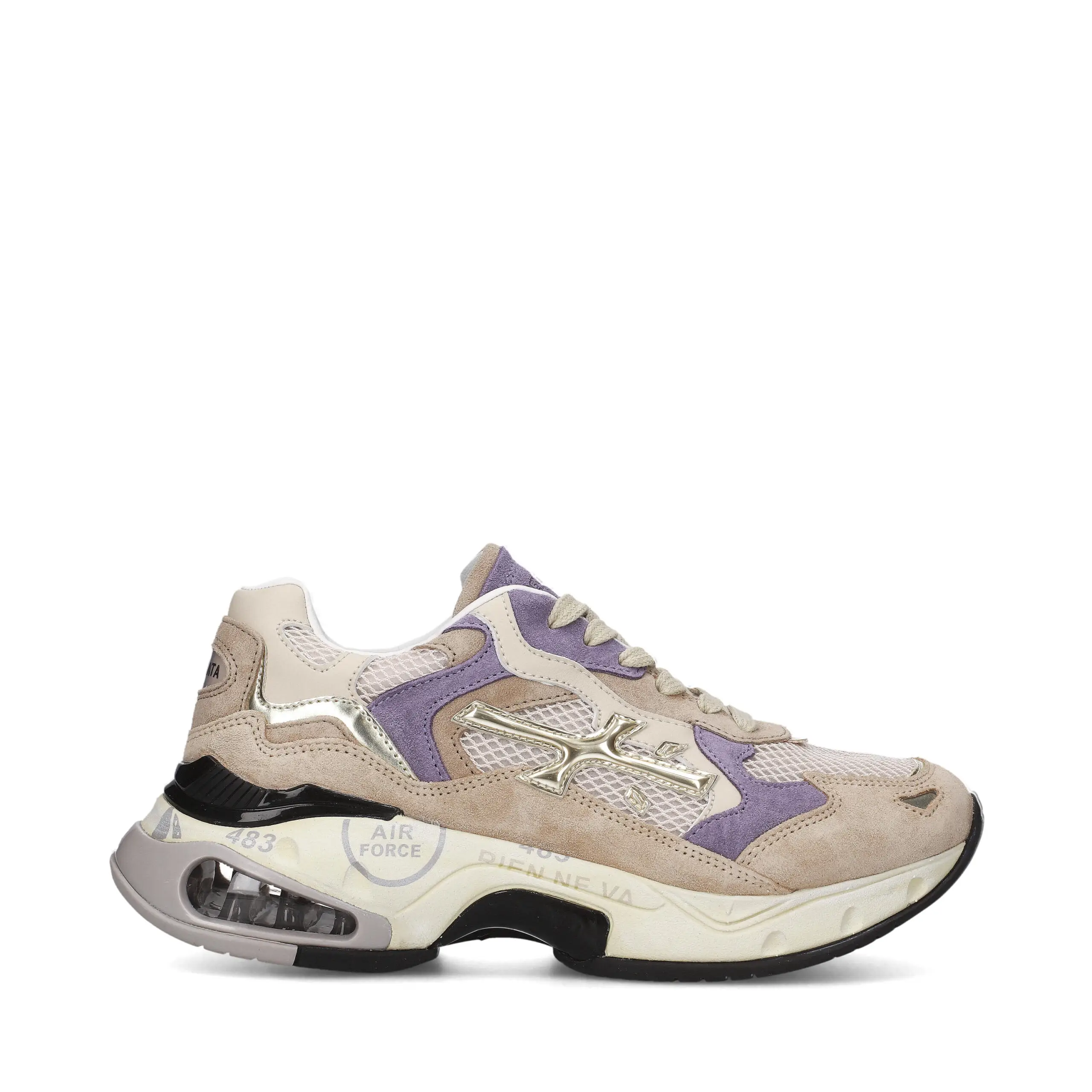 De exclusieve sneakers van het Italiaanse merk Premiata kenmerken zich door hun unieke uitstraling en door anders te zijn dan andere sneaker-merken. De unieke branding aan de zijkant van deze sneakers en de bedrukte zool zijn specifieke kenmerken van het merk Premiata. De Premiata Scharky-D met toffe accenten is afgewerkt met hoogwaardig mesh, suede en leer.