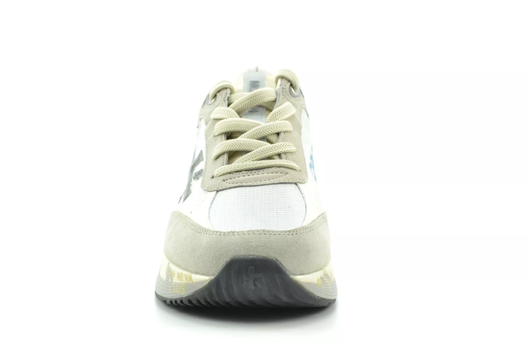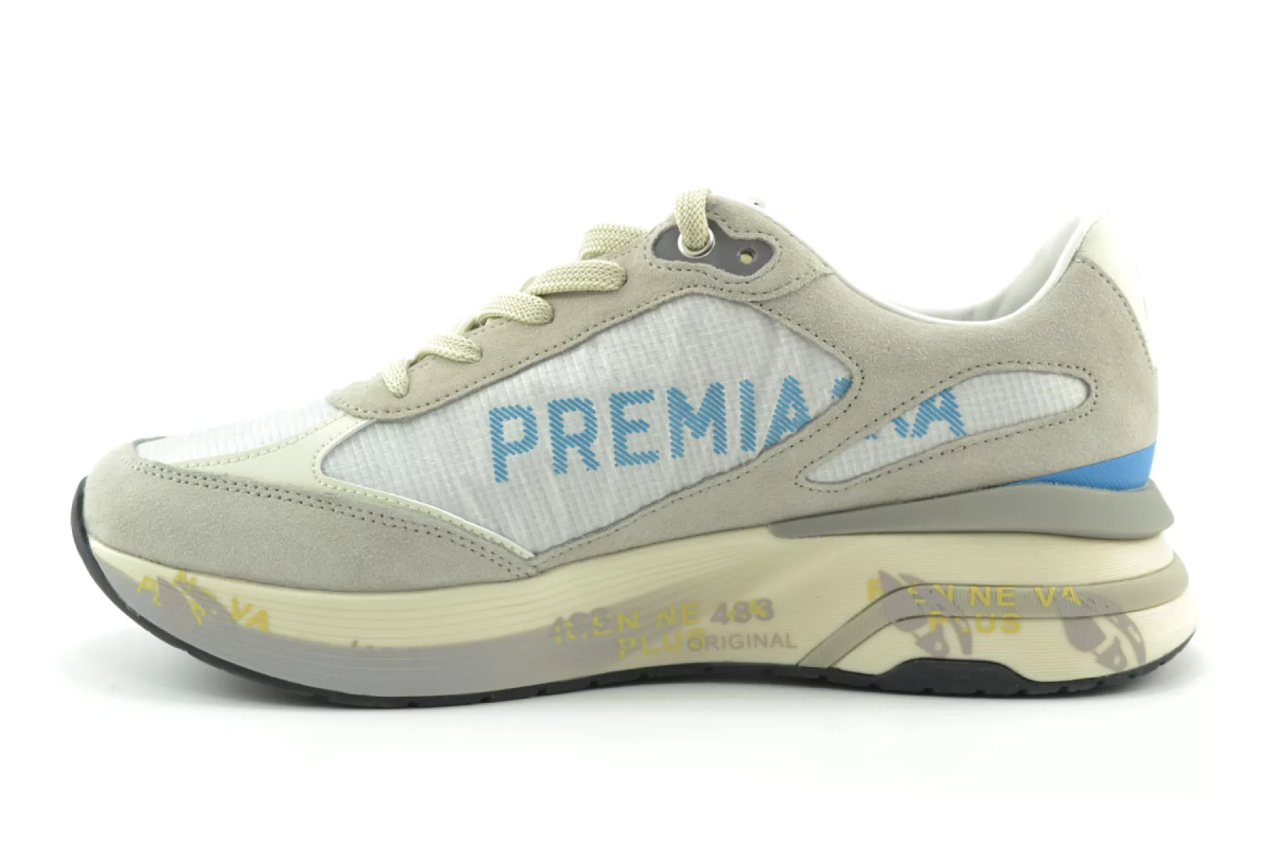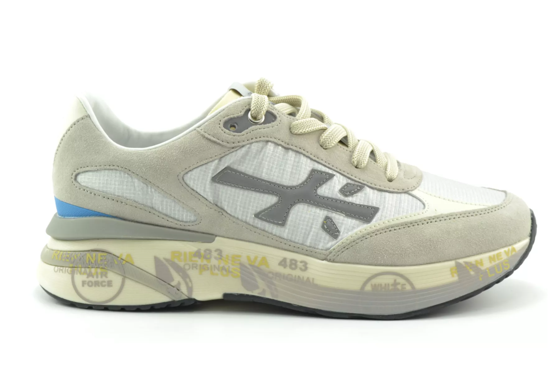 De Moerun sneakers van het Italiaanse merk Premiata zijn gemaakt van een mix van hoogwaardige materialen en leer. De sneakers zijn uitgevoerd in de kleur grijs en beige voor een casual stijl. Het iconische silhouet is verrijkt met het bekende Premiata-logo.