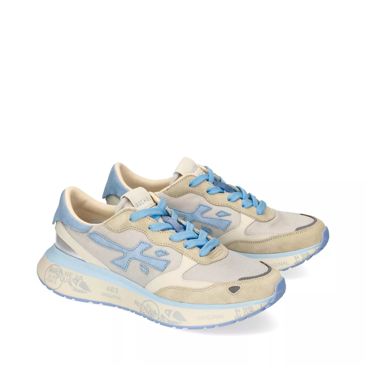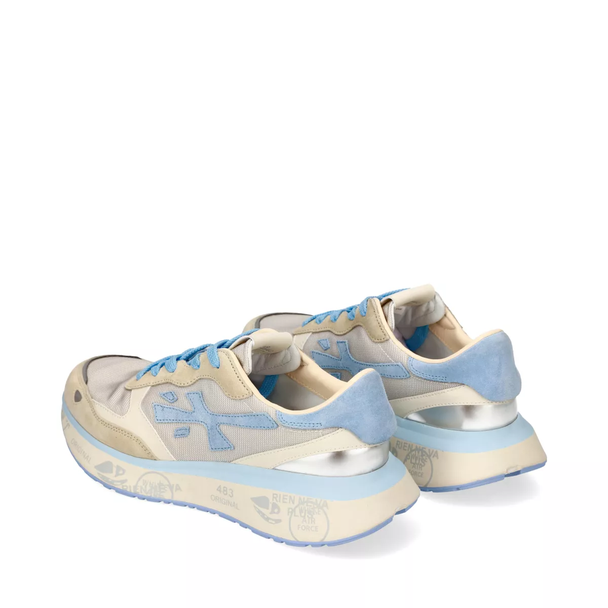 De exclusieve sneakers van het Italiaanse merk Premiata kenmerken zich door hun unieke uitstraling en door anders te zijn dan andere sneaker-merken. De unieke branding aan de zijkant van deze sneakers en de bedrukte zool zijn specifieke kenmerken van het merk Premiata. De Premiata Laurijn met toffe accenten is afgewerkt met hoogwaardig mesh, suede en leer.