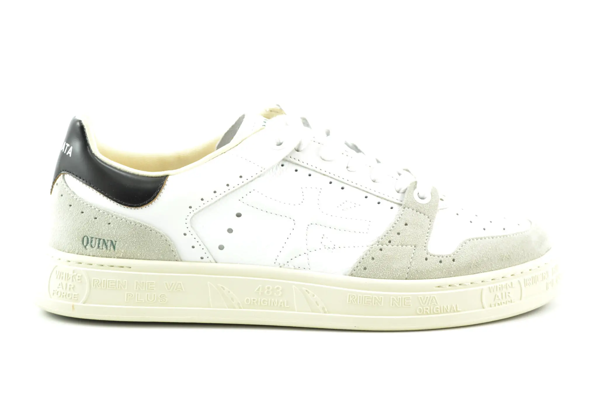 De exclusieve sneakers van het Italiaanse merk Premiata kenmerken zich door hun unieke uitstraling en door anders te zijn dan andere sneaker-merken. De unieke branding aan de zijkant van deze sneakers en de bedrukte zool zijn specifieke kenmerken van het merk Premiata. De Premiata Quinn met toffe accenten is afgewerkt met hoogwaardig leer en suede
