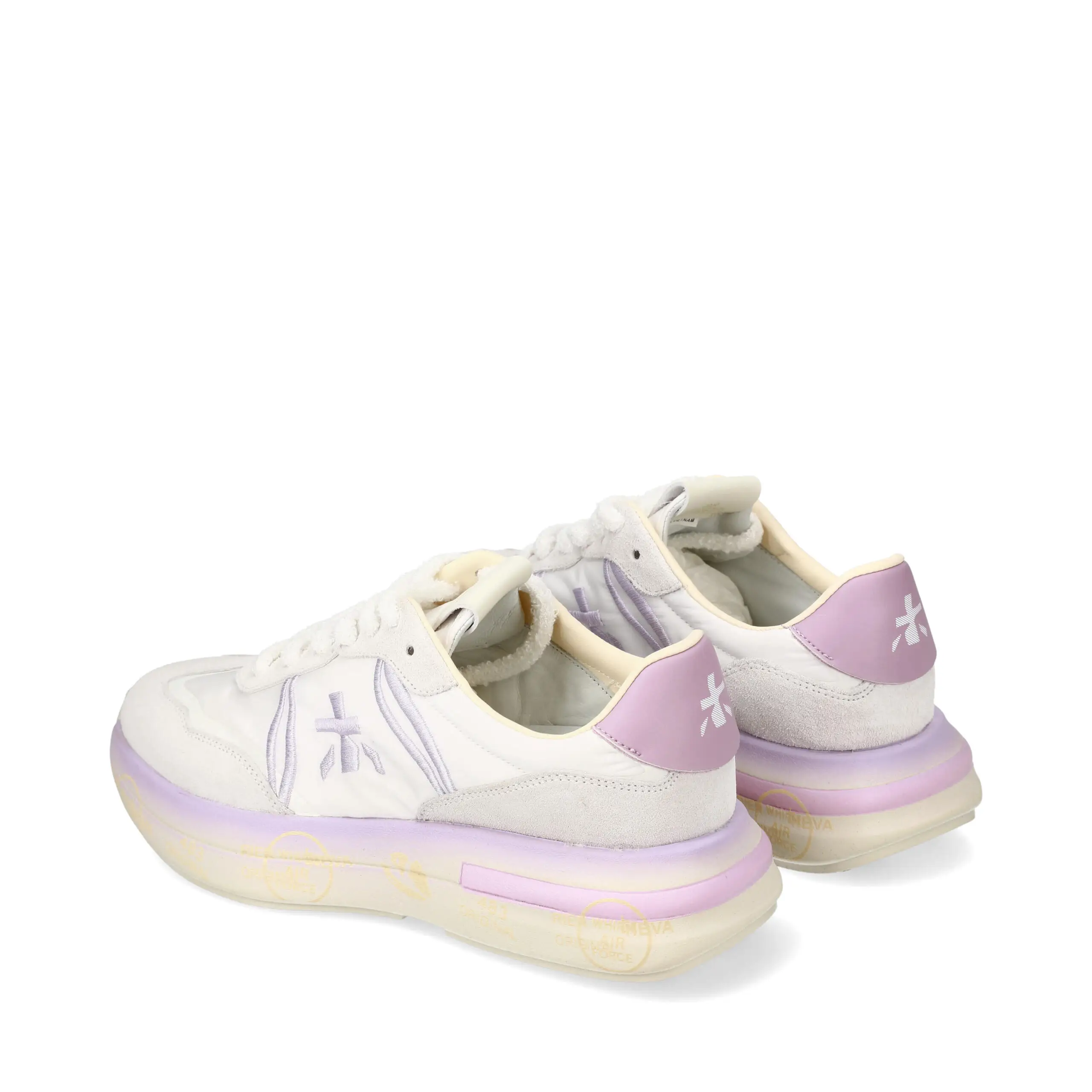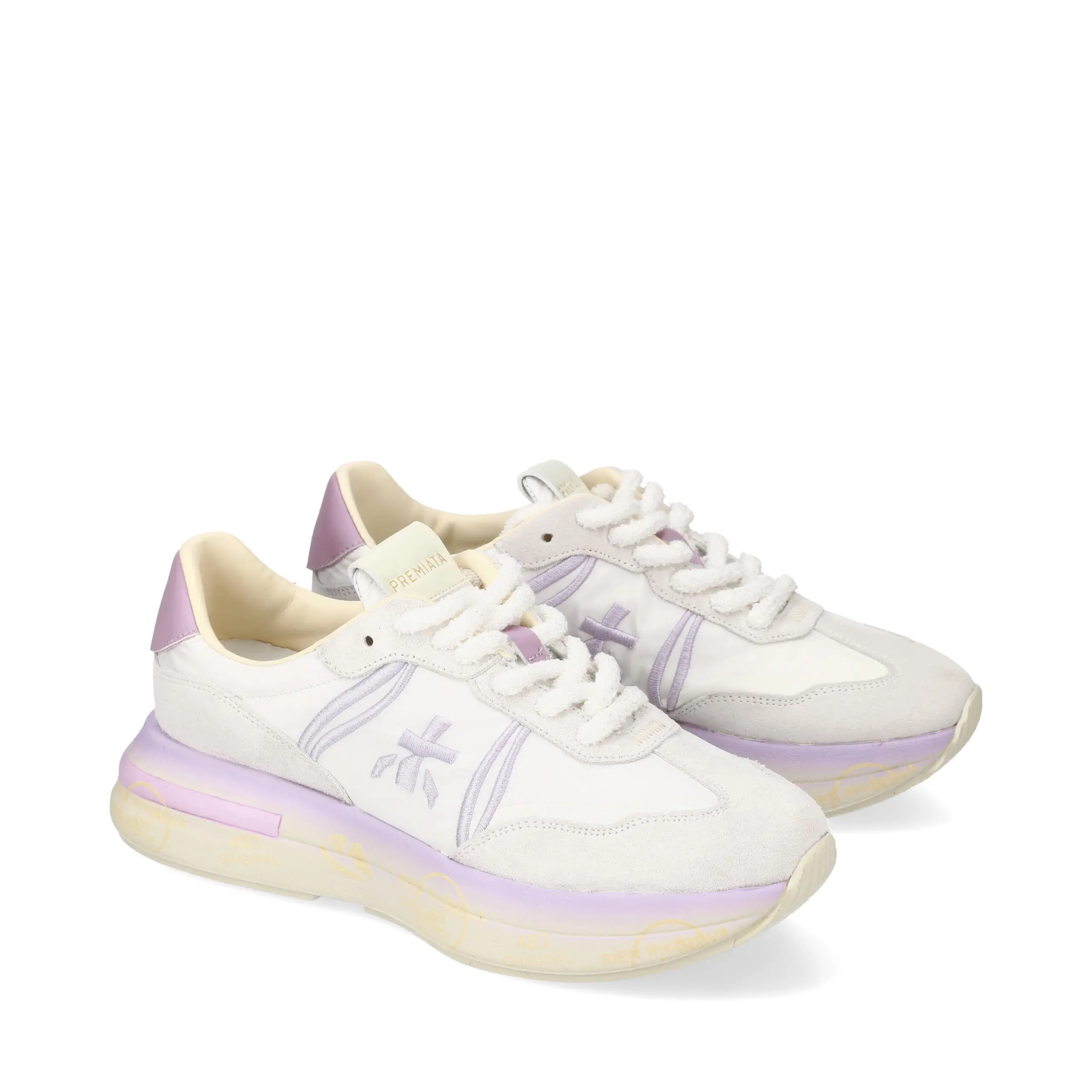 De exclusieve sneakers van het Italiaanse merk Premiata kenmerken zich door hun unieke uitstraling en door anders te zijn dan andere sneaker-merken. De unieke branding aan de zijkant van deze sneakers en de bedrukte zool zijn specifieke kenmerken van het merk Premiata. De Premiata Cassie met toffe accenten is afgewerkt met hoogwaardig mesh, suede en leer.