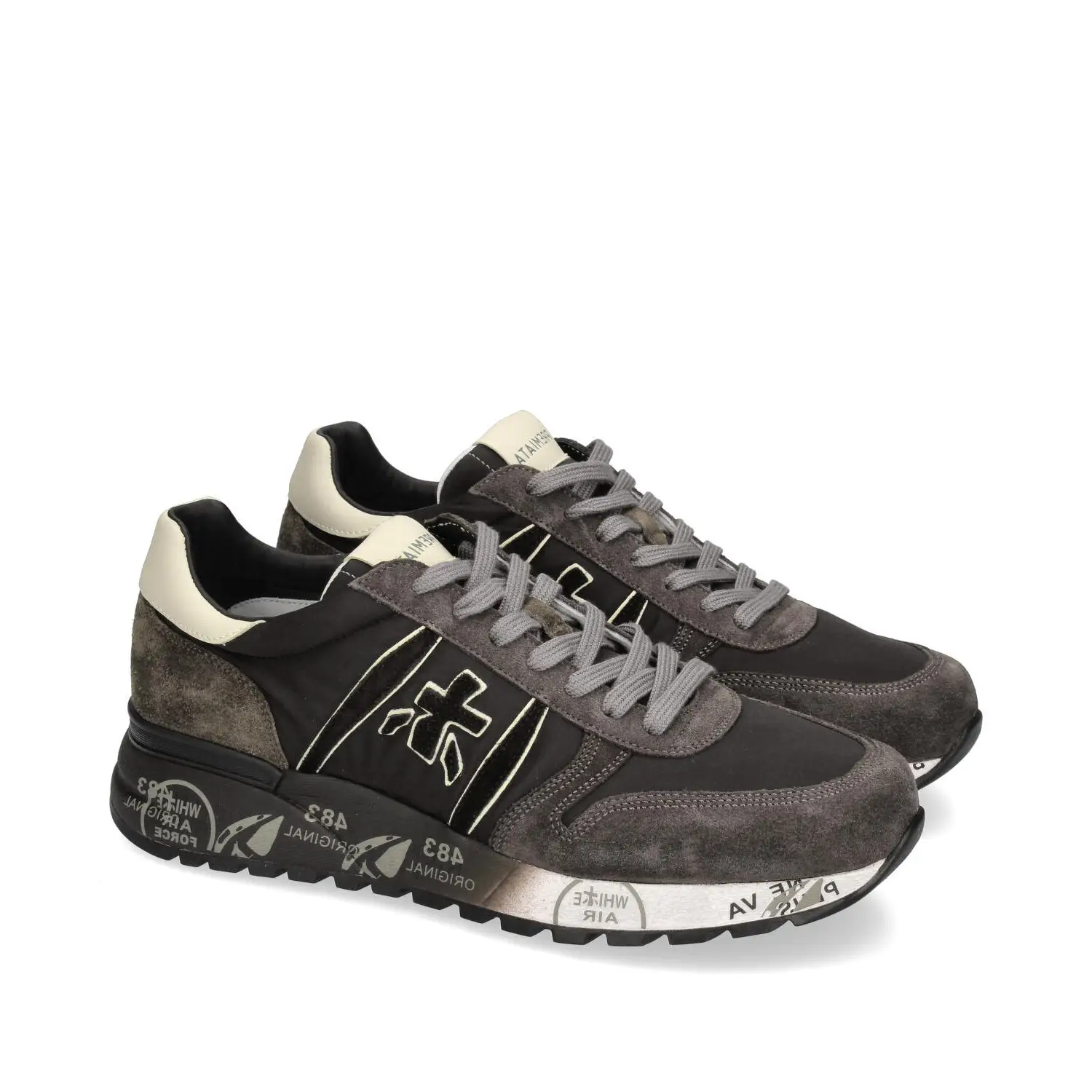 De Lander sneaker van het Italiaanse merk Premiata is gemaakt van zacht suede en nylon. De look wordt versterkt door het onmiskenbare Premiata-logon en de branding op de ergonomische en super lichte zool.