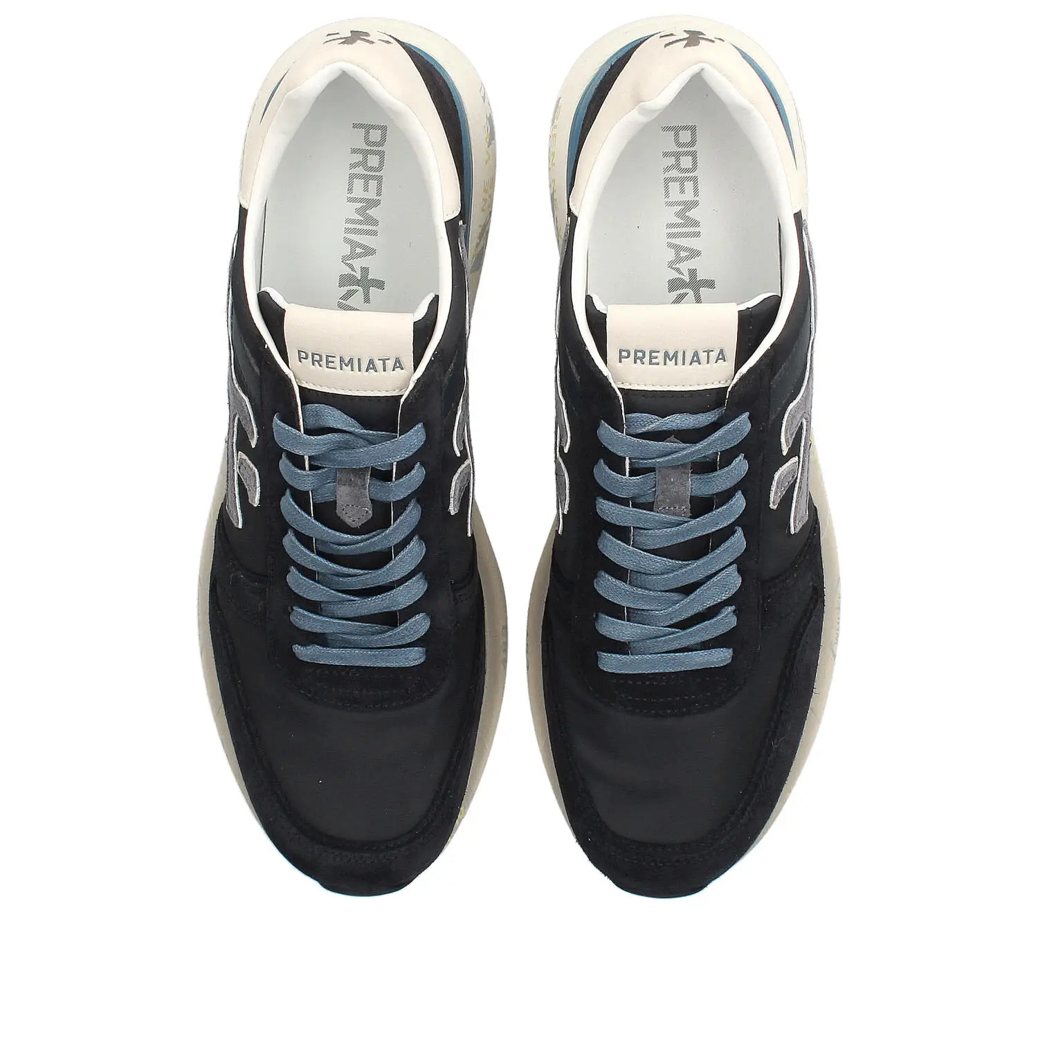 De Mick sneakers van het Italiaanse merk Premiata zijn gemaakt van een mix van hoogwaardige materialen en leer. De sneakers zijn uitgevoerd in de kleur zwart voor een casual stijl. Het iconische silhouet is verrijkt met het bekende Premiata-logo.