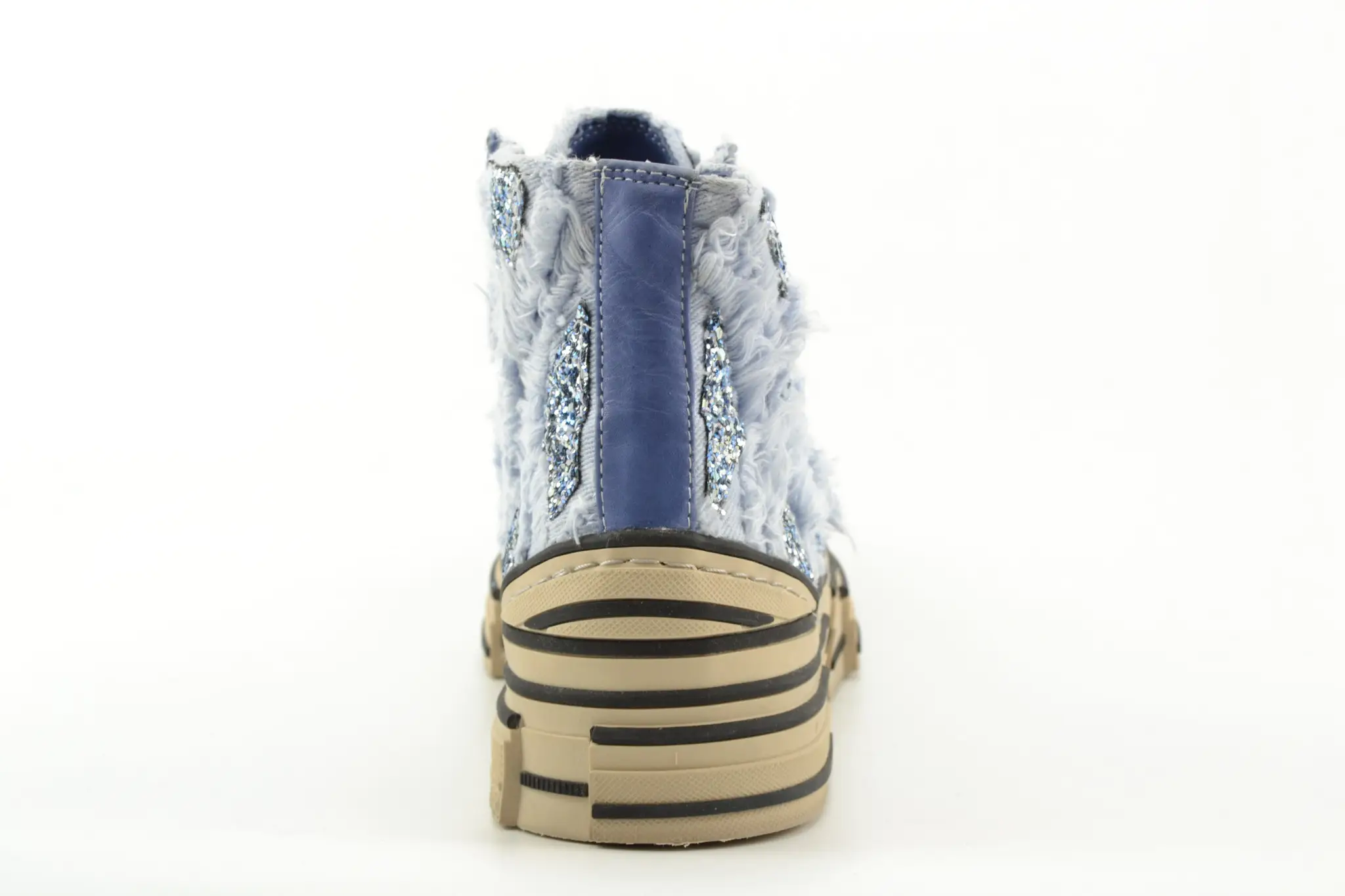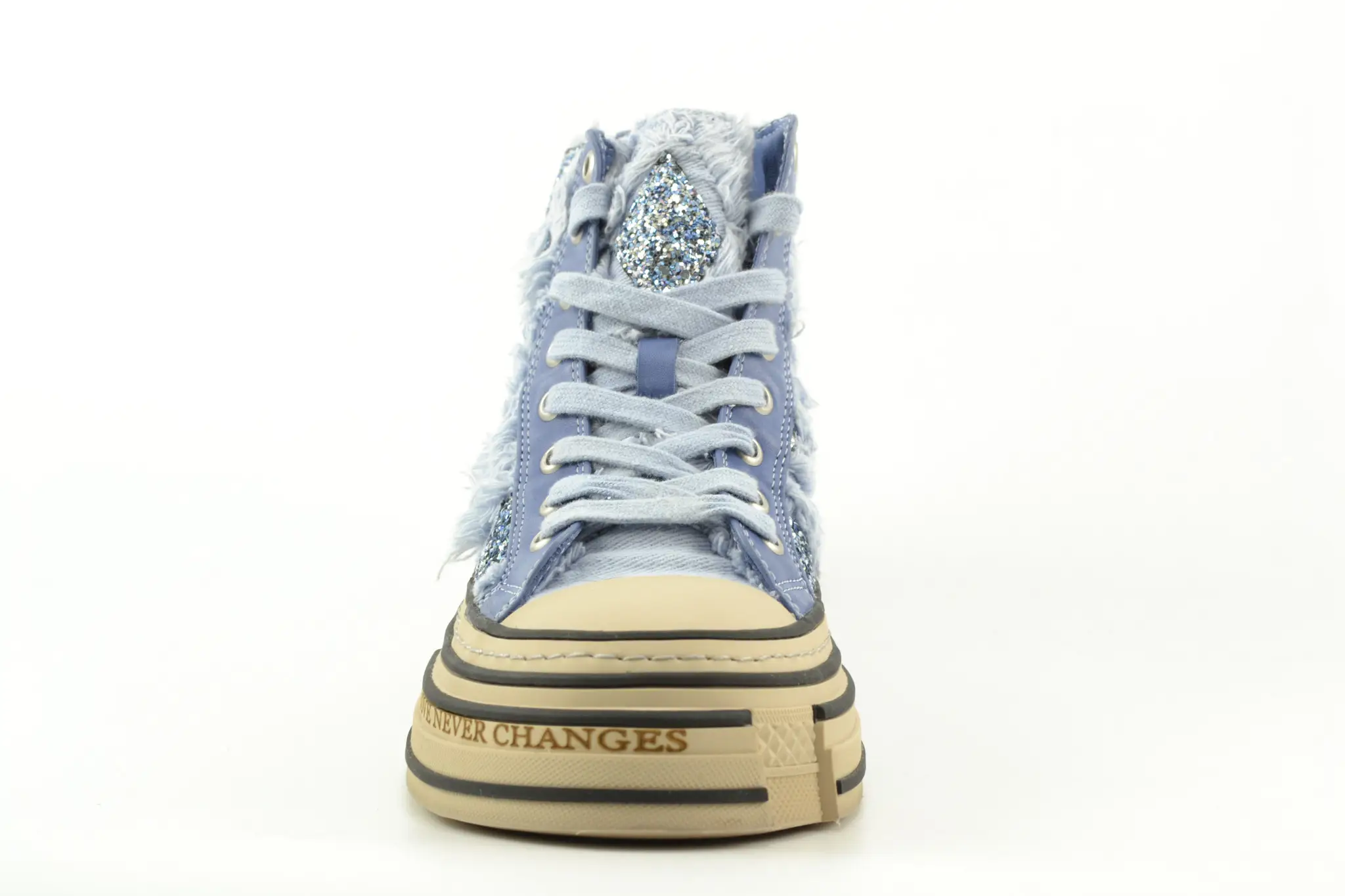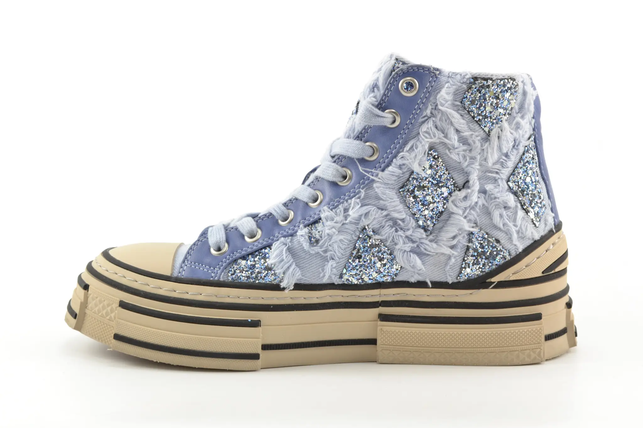 buitenkant: jeansstof afgewekt met blauwe glitters
