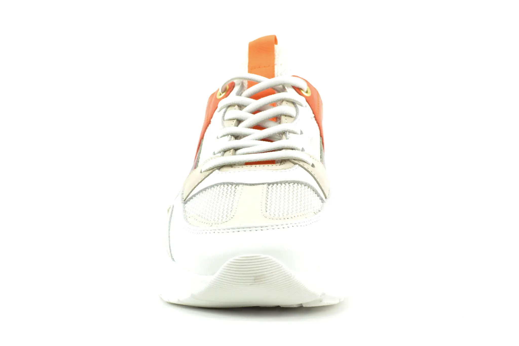 details: deze mooie beige leren sneaker van het merk Red Rag heeft oranje en fuchsia metallic leren details. Het zooltje is uitneembaar.