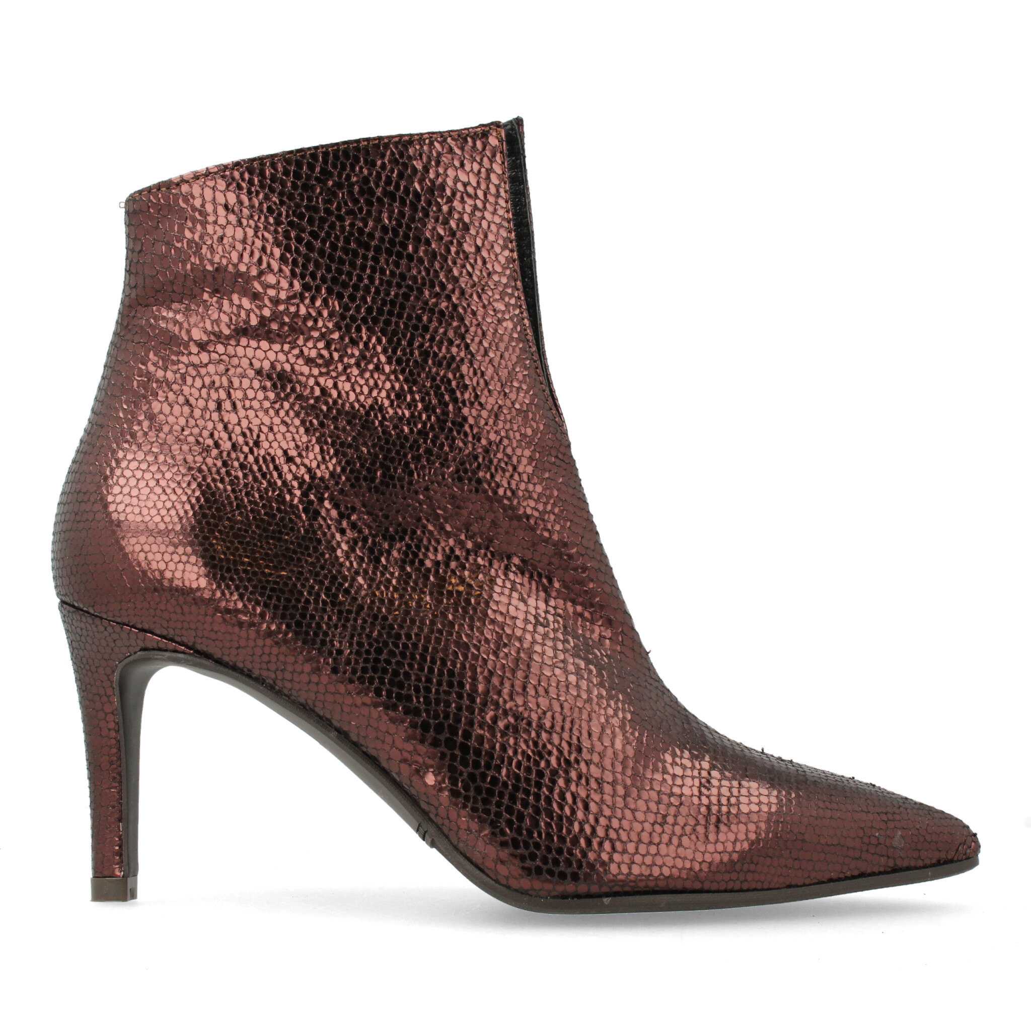 Enkellaarsjes zijn elk seizoen onmisbaar, ook dit najaar! Deze leren enkellaarsjes met snake-detail en metallic maken elke outfit compleet, of je de laarsjes nu draagt onder een jeans of rok. De binnen- en buitenzijde zijn gemaakt van leer. De hakhoogte is 7,5 cm.
