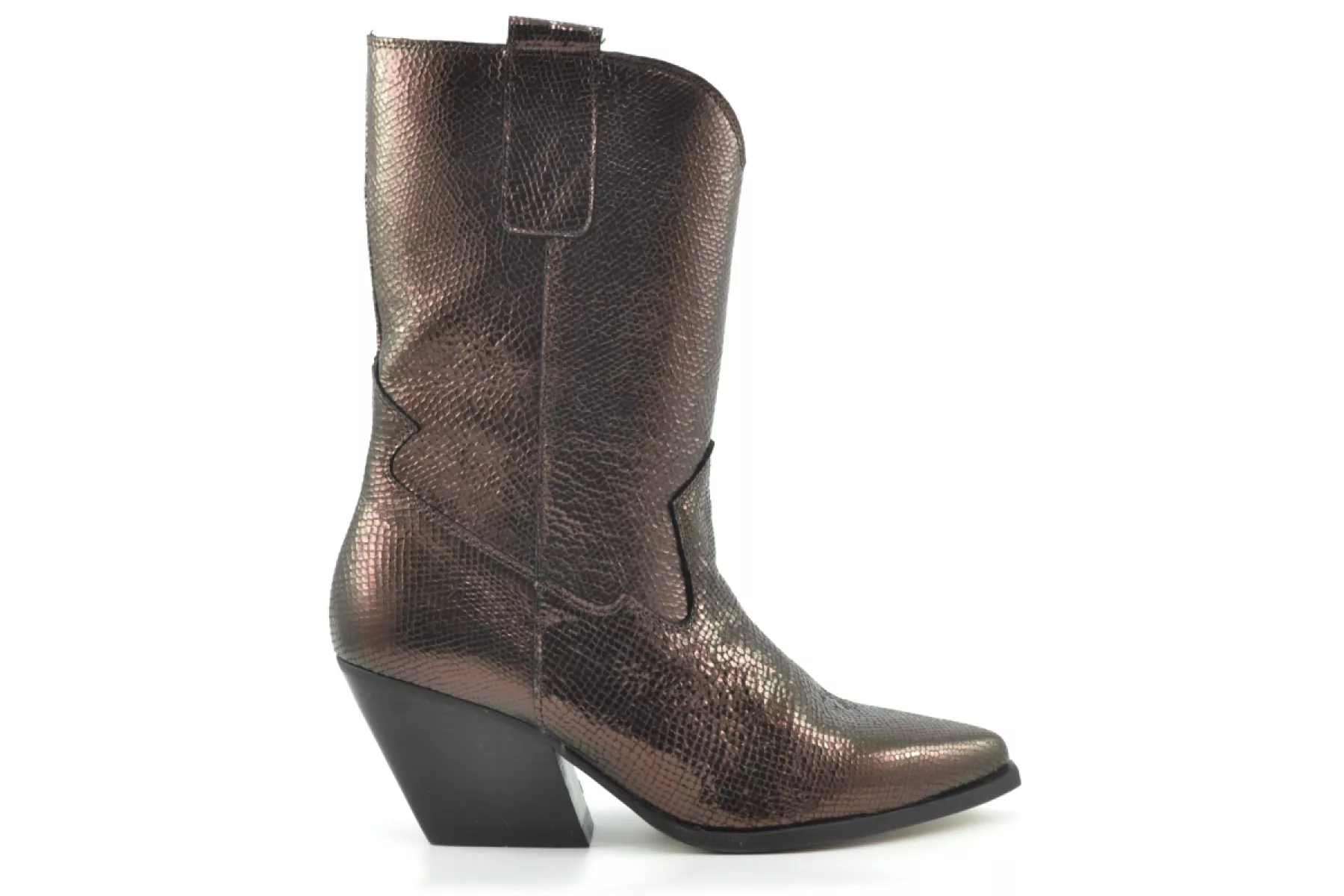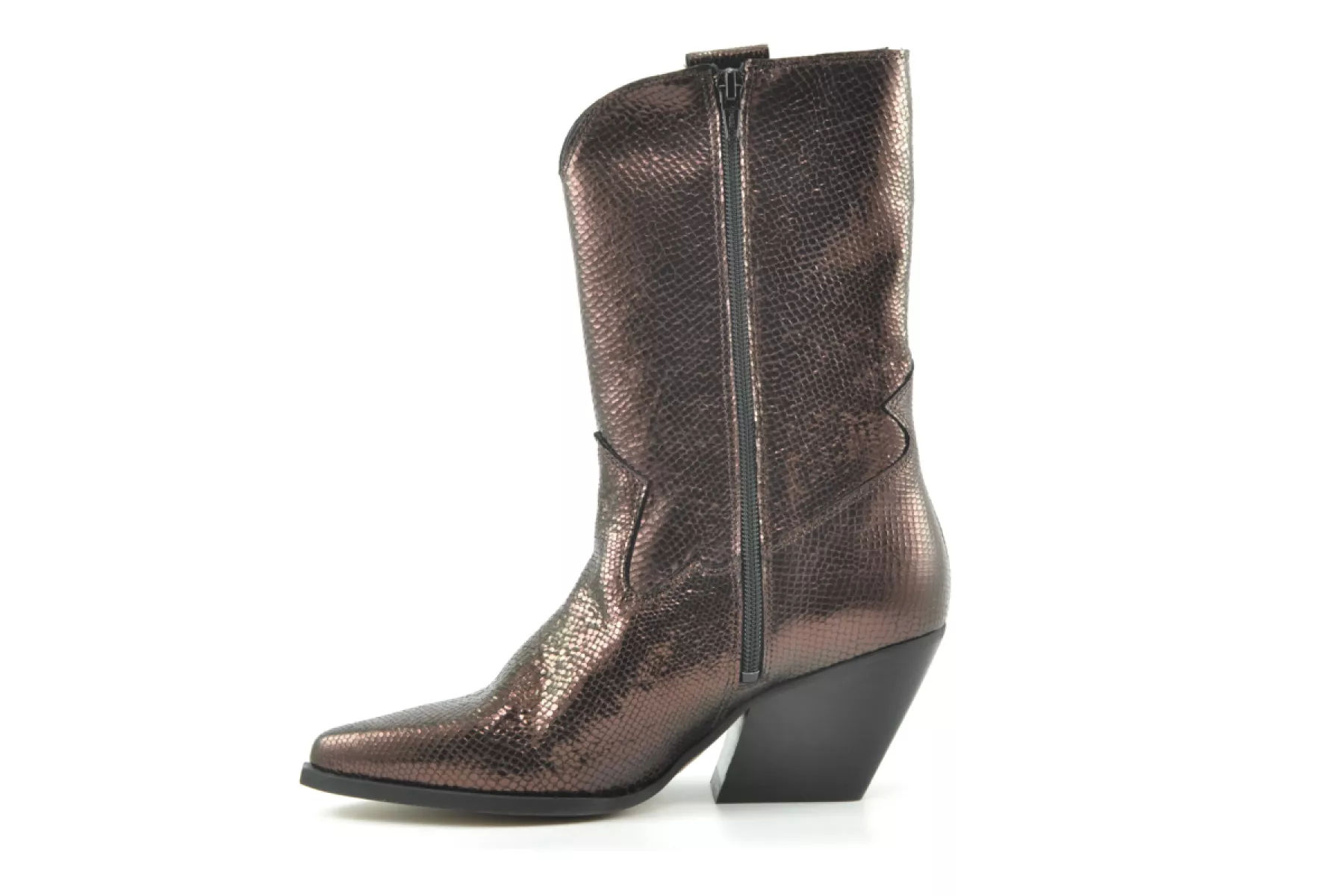 Sluiting Ritssluiting Voering Leer Categorie Cowboy, Laarzen Collectie Women Kleur donkerbruin Materiaal Leer met metallic print Productgroep High Boot