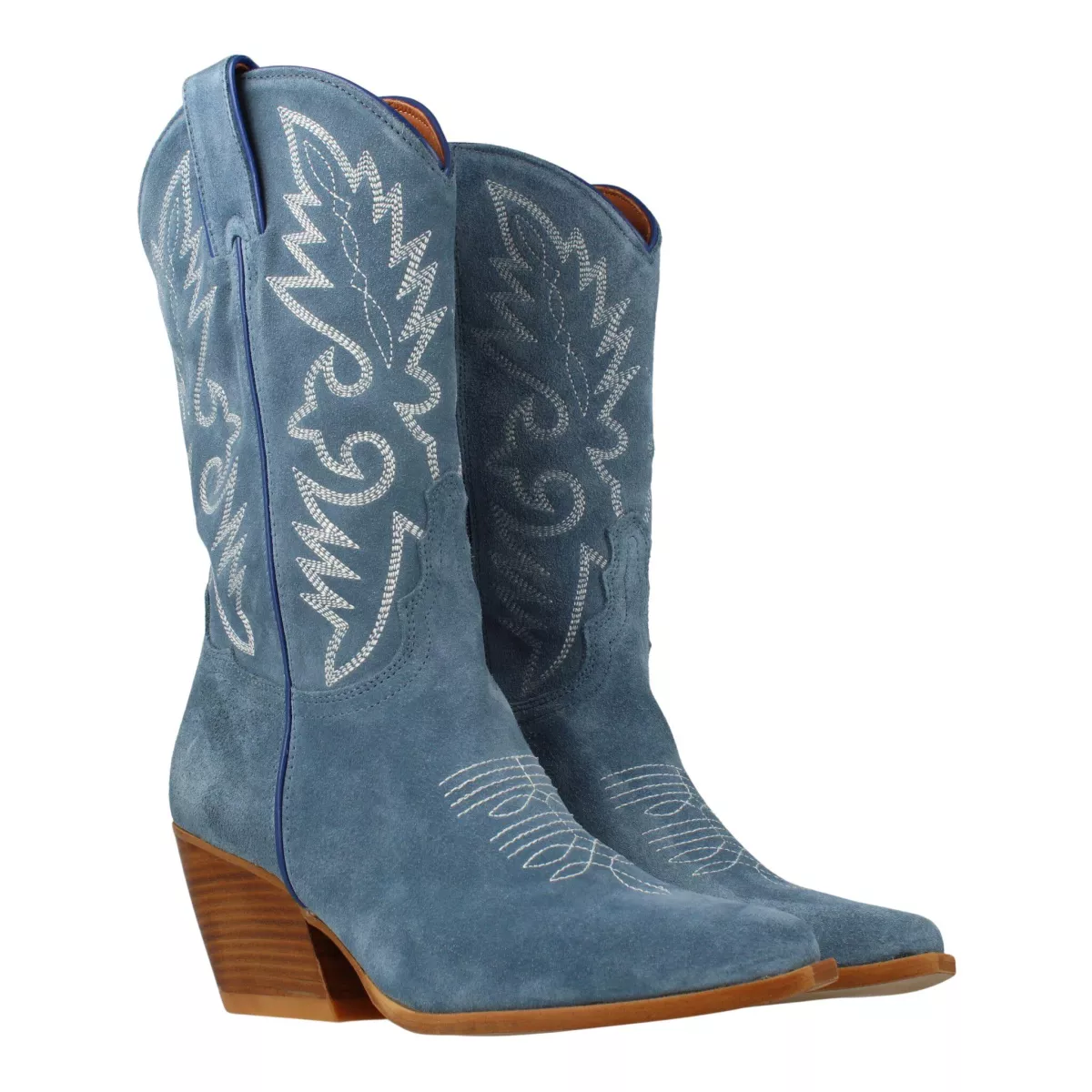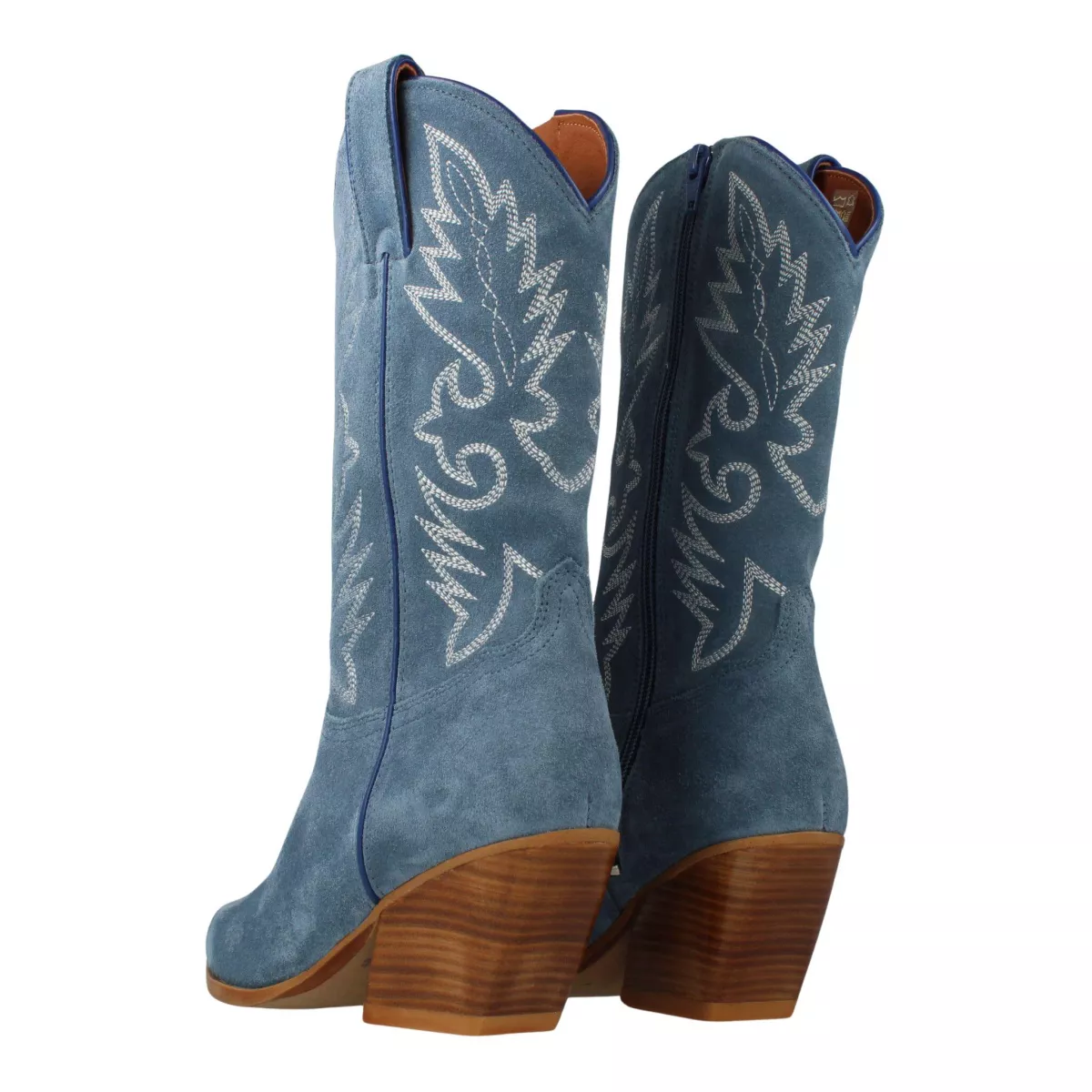 Westernlaarzen zijn ook dit seizoen weer onmisbaar in jouw garderobe. Deze suède hebben een mooie lichtblauwe kleur die goed te combineren is met denim. De binnenzijde is gemaakt van leer en de laarzen zijn voorzien van een rits. De hakhoogte is 7 cm.