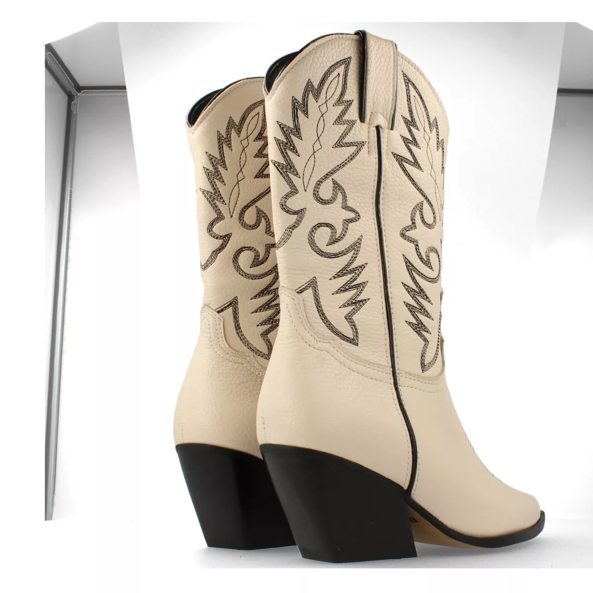 Western boots zijn niet meer weg te denken uit onze garderobe. Met een cowboylaars maak je elke outfit compleet. De beige boots met gave details zijn voorzien van een rits aan de binnenzijde. De western boots zijn gemaakt van hoogwaardig leer en hebben een leren binnenvoering. De hakhoogte is 7 cm.