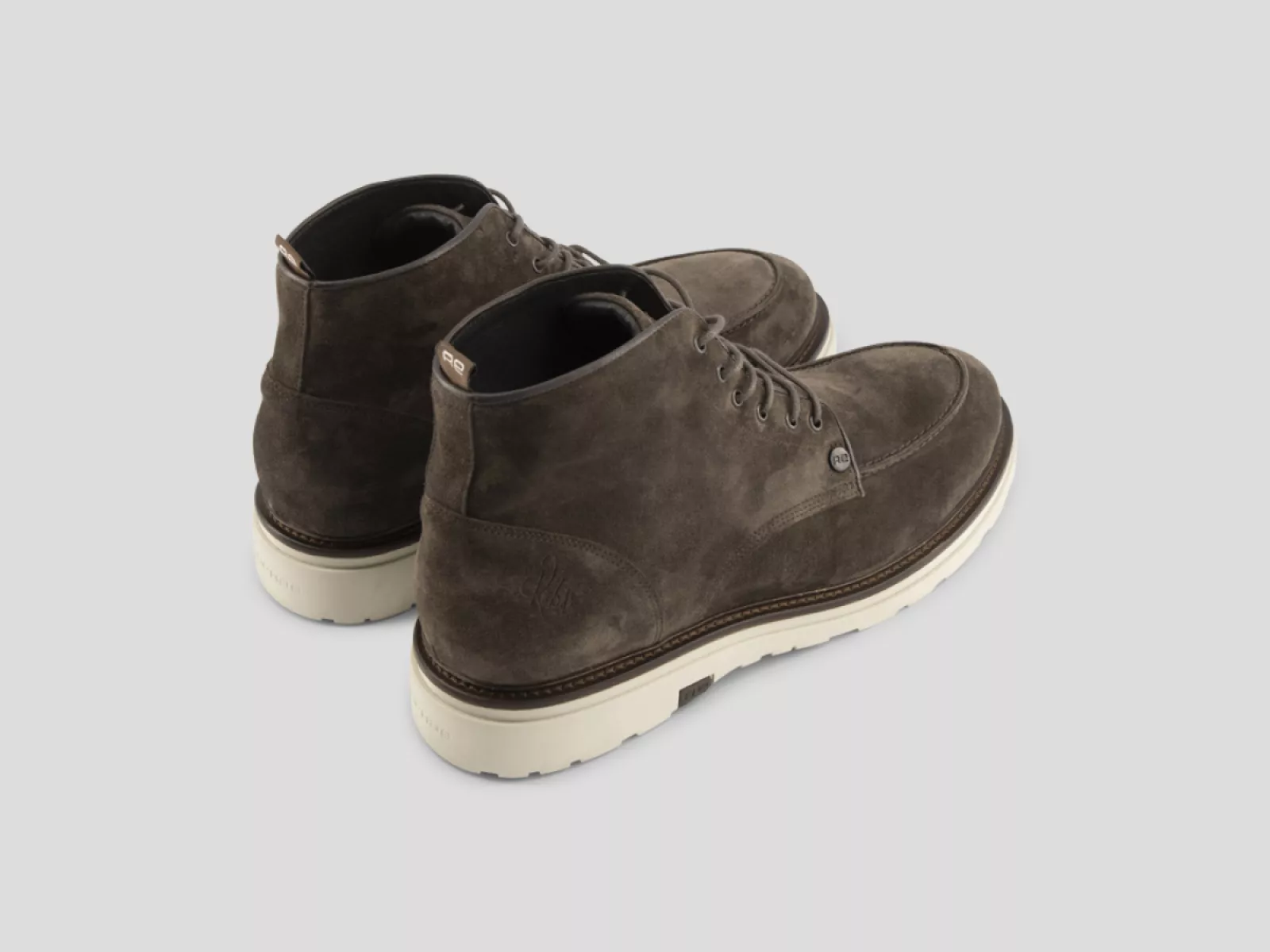 Stoere grijsbruine boots met vetersluiting met een stijlvol bovenwerk van een mooie kwaliteit suede en een stoere, comfortabele zool voorzien van stevig profiel. De Wallace staan perfect onder een mooie kwaliteit jeans.